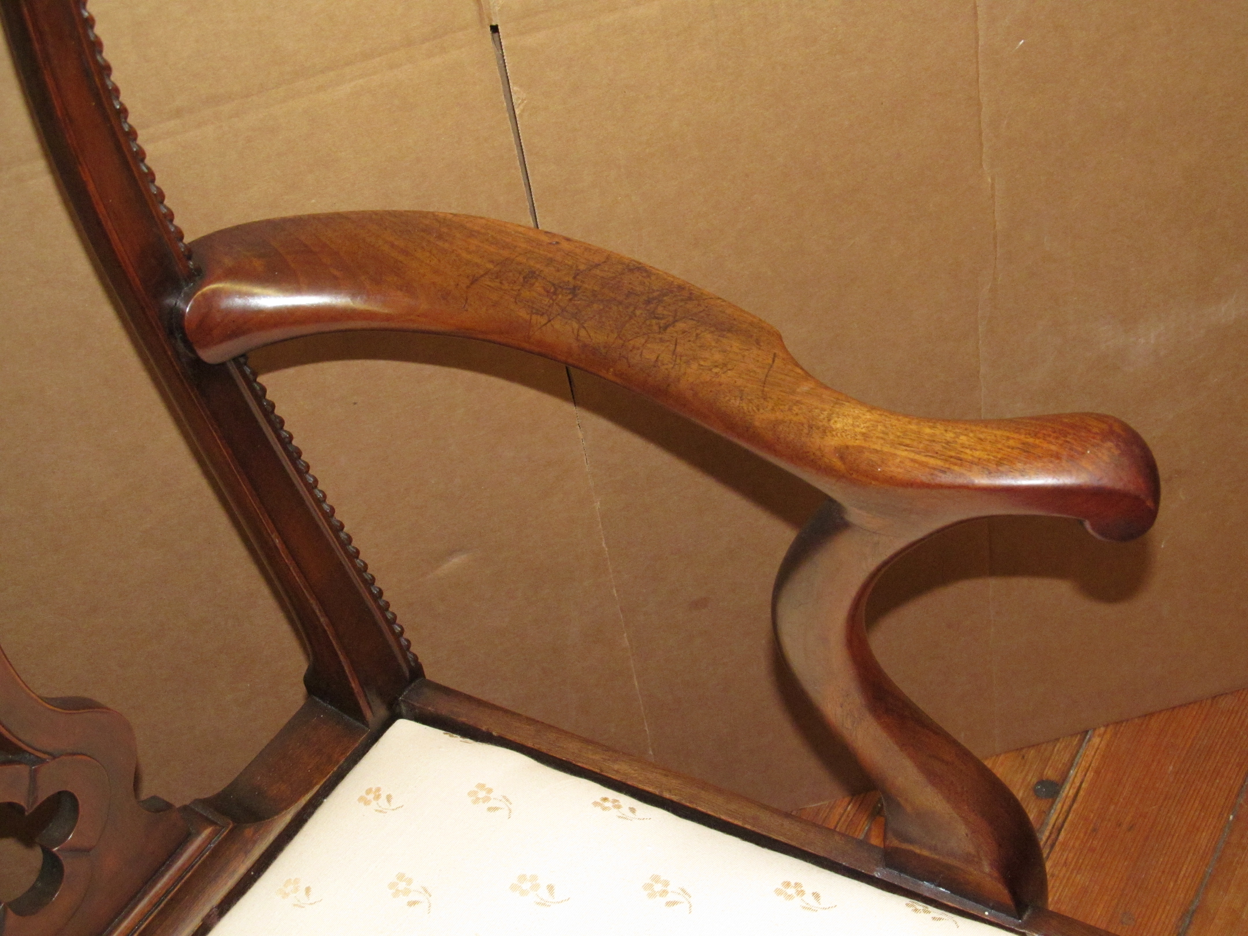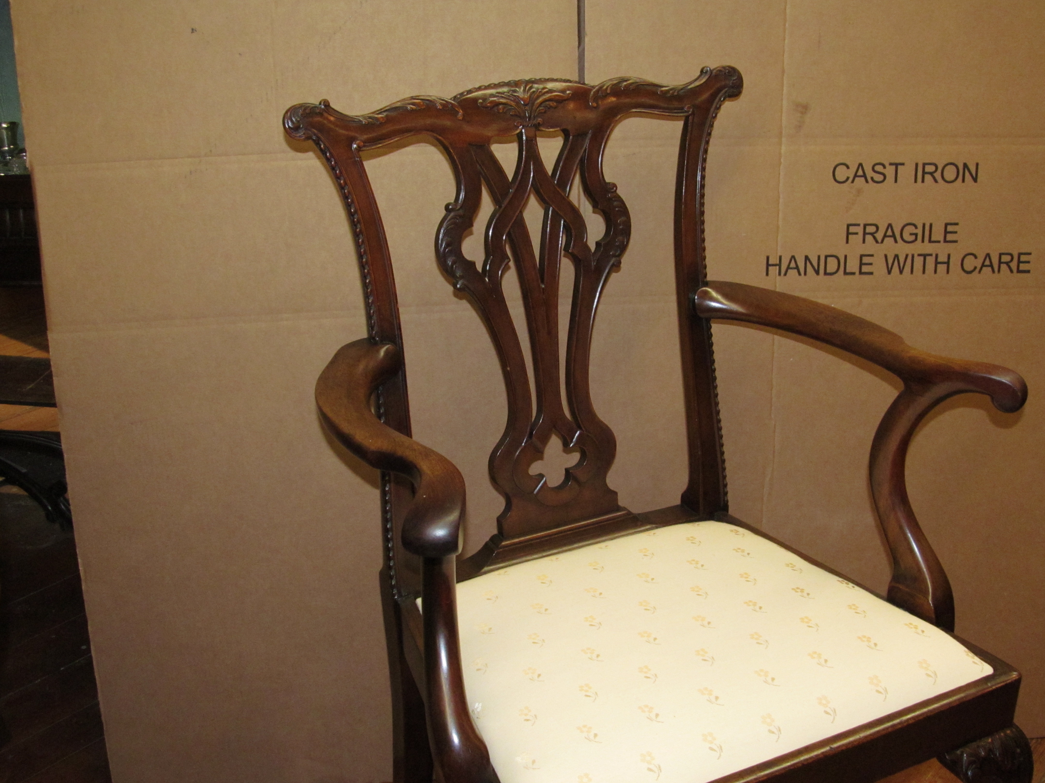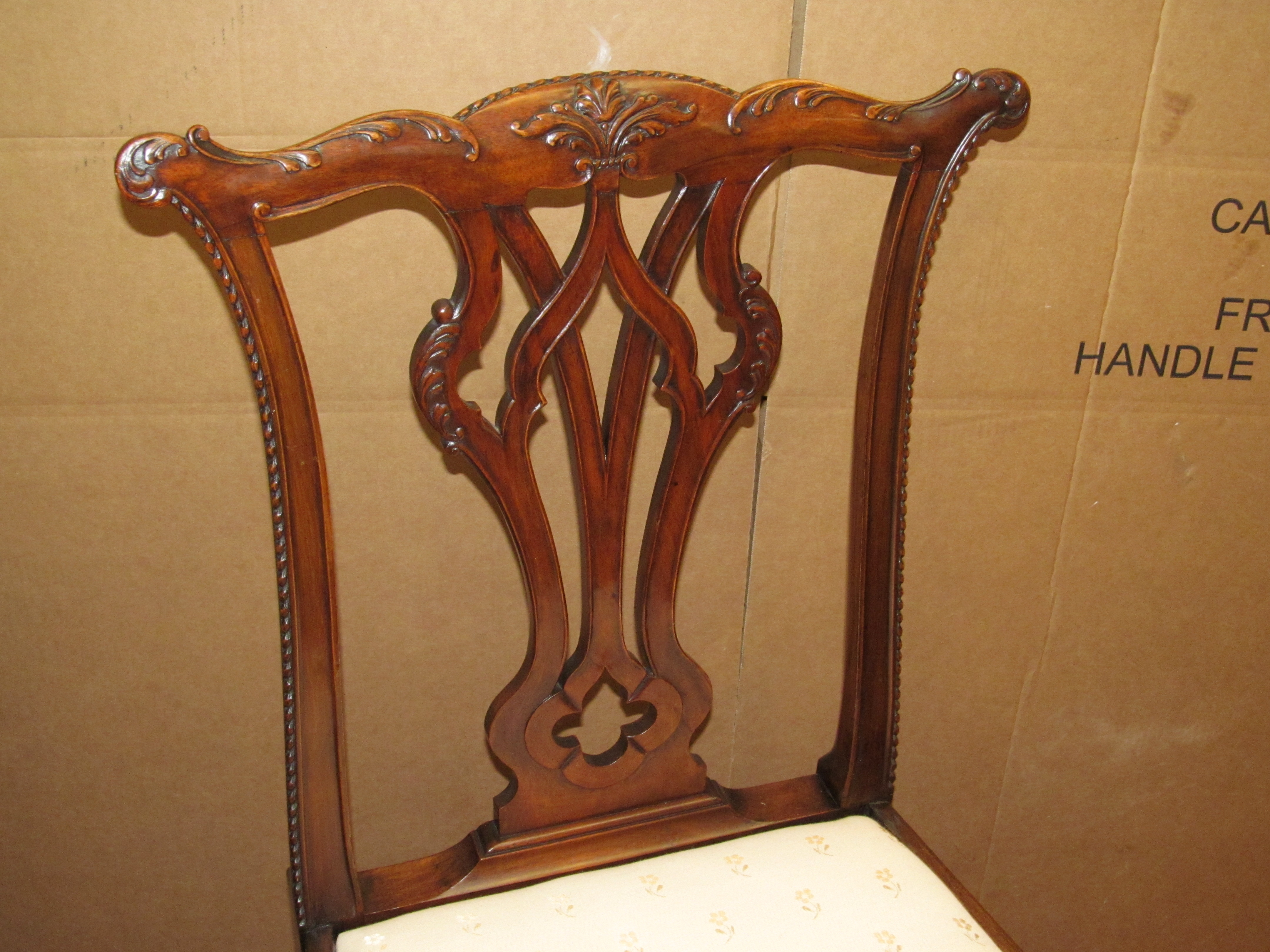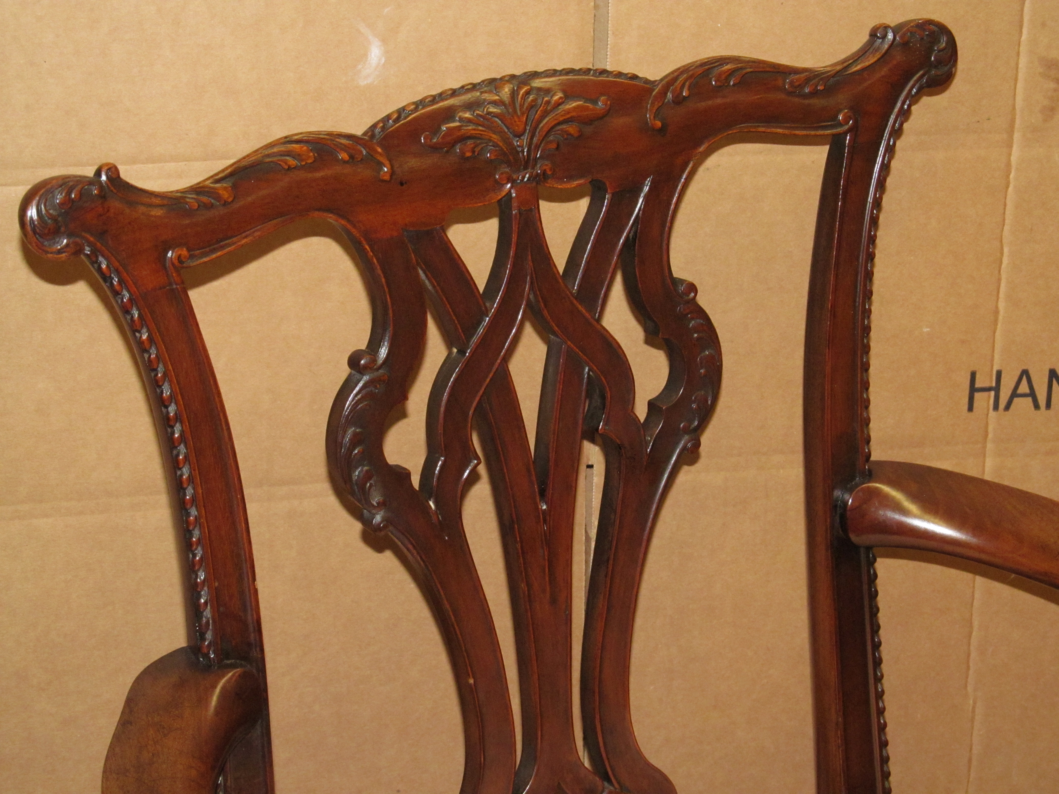 Please note fabulous detailed pierced and carved back splat with acanthus leaf on crestrail.