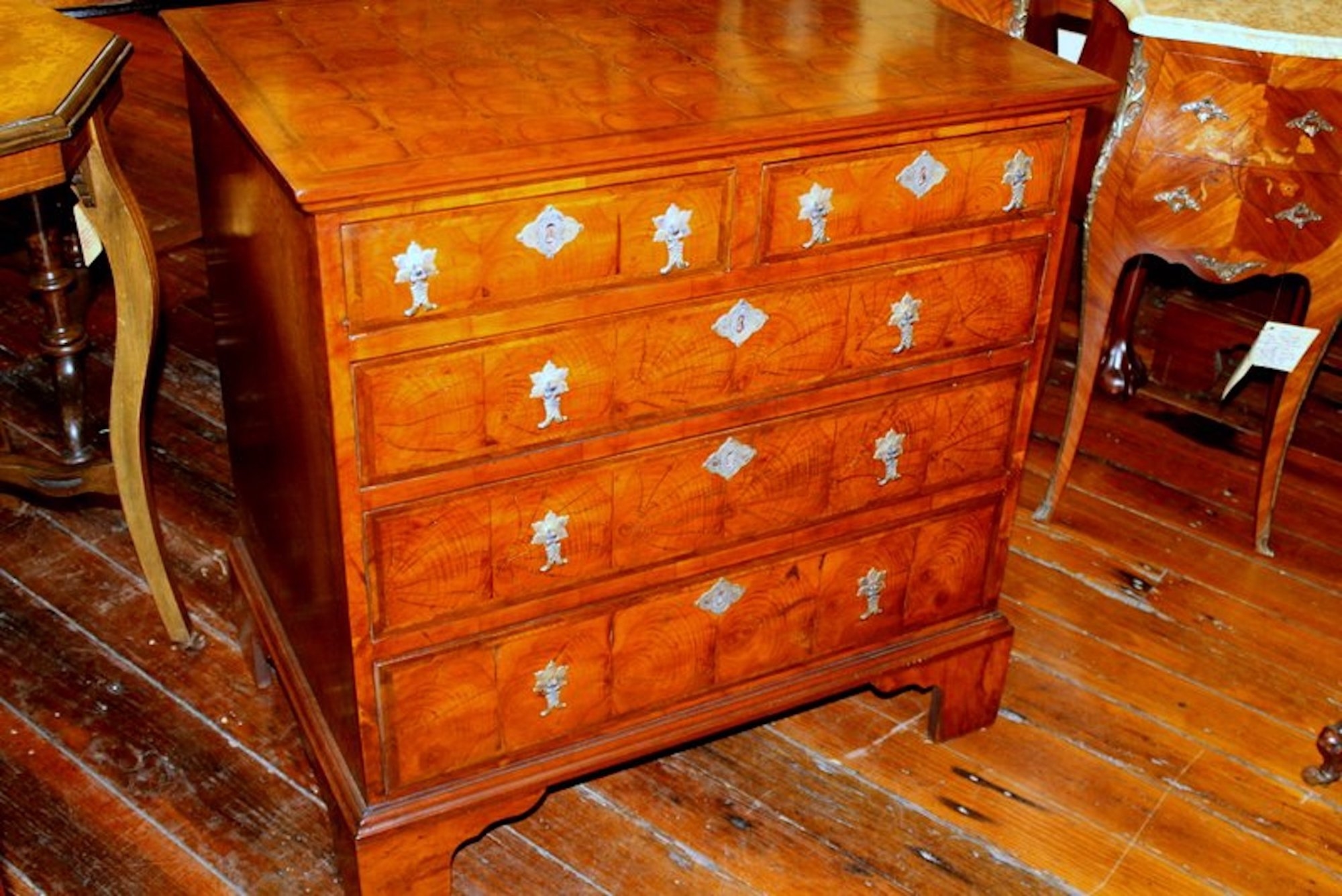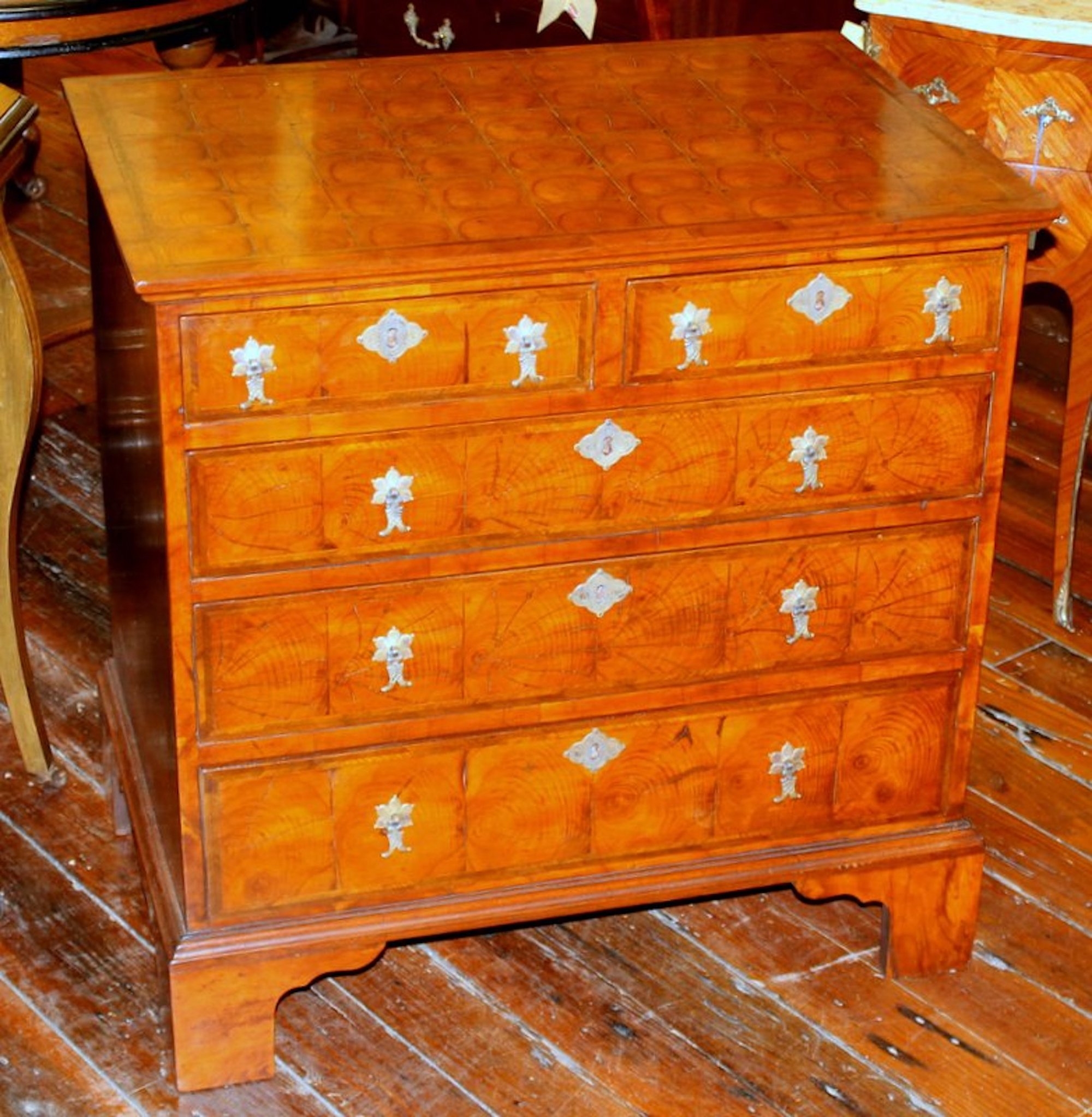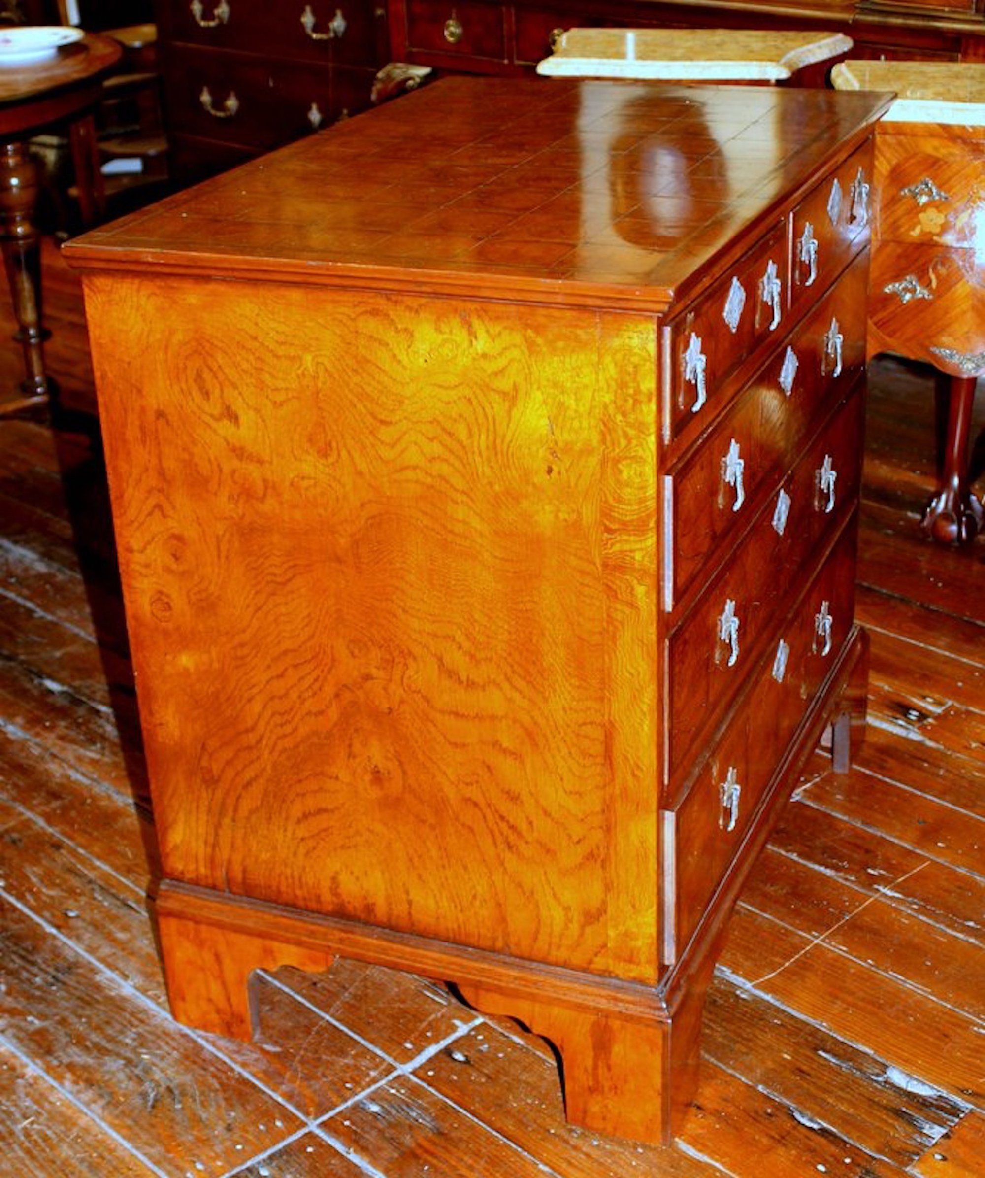 SKU: 7325-110 Categories: All Inventory, Chests, Furniture Tags: anne, Bachelor, burr, Chest, elm, english, Oyster, Veneer
