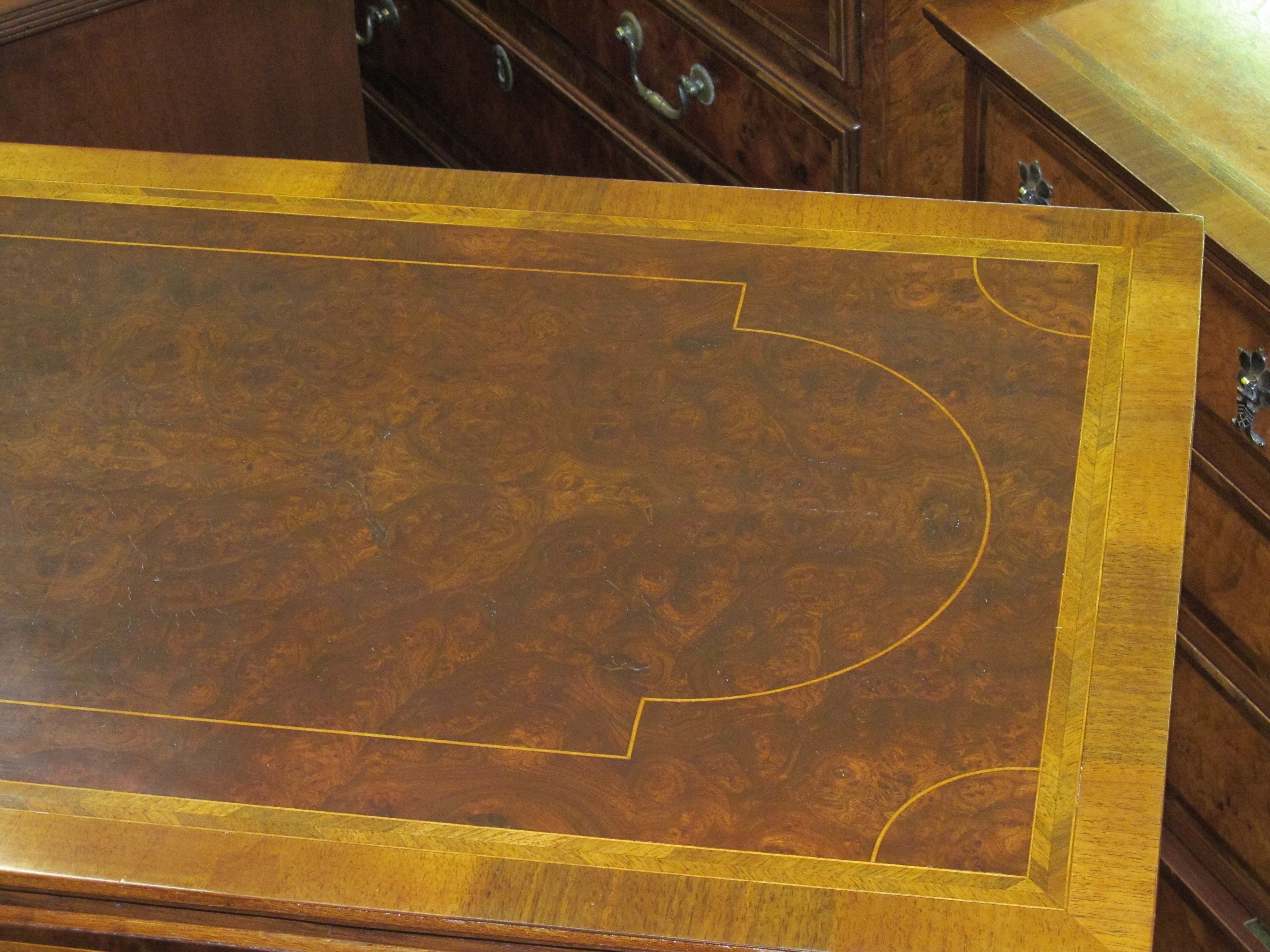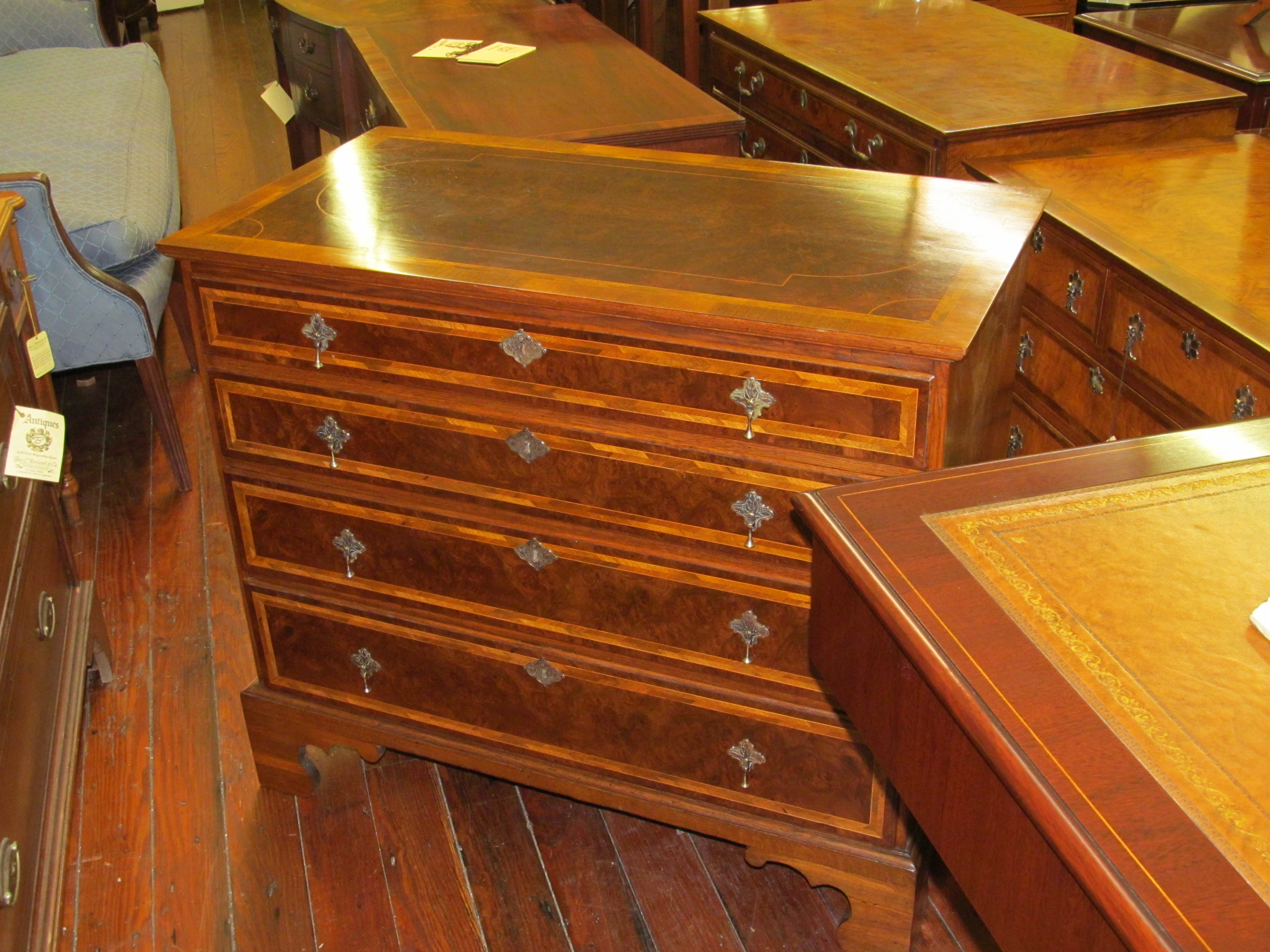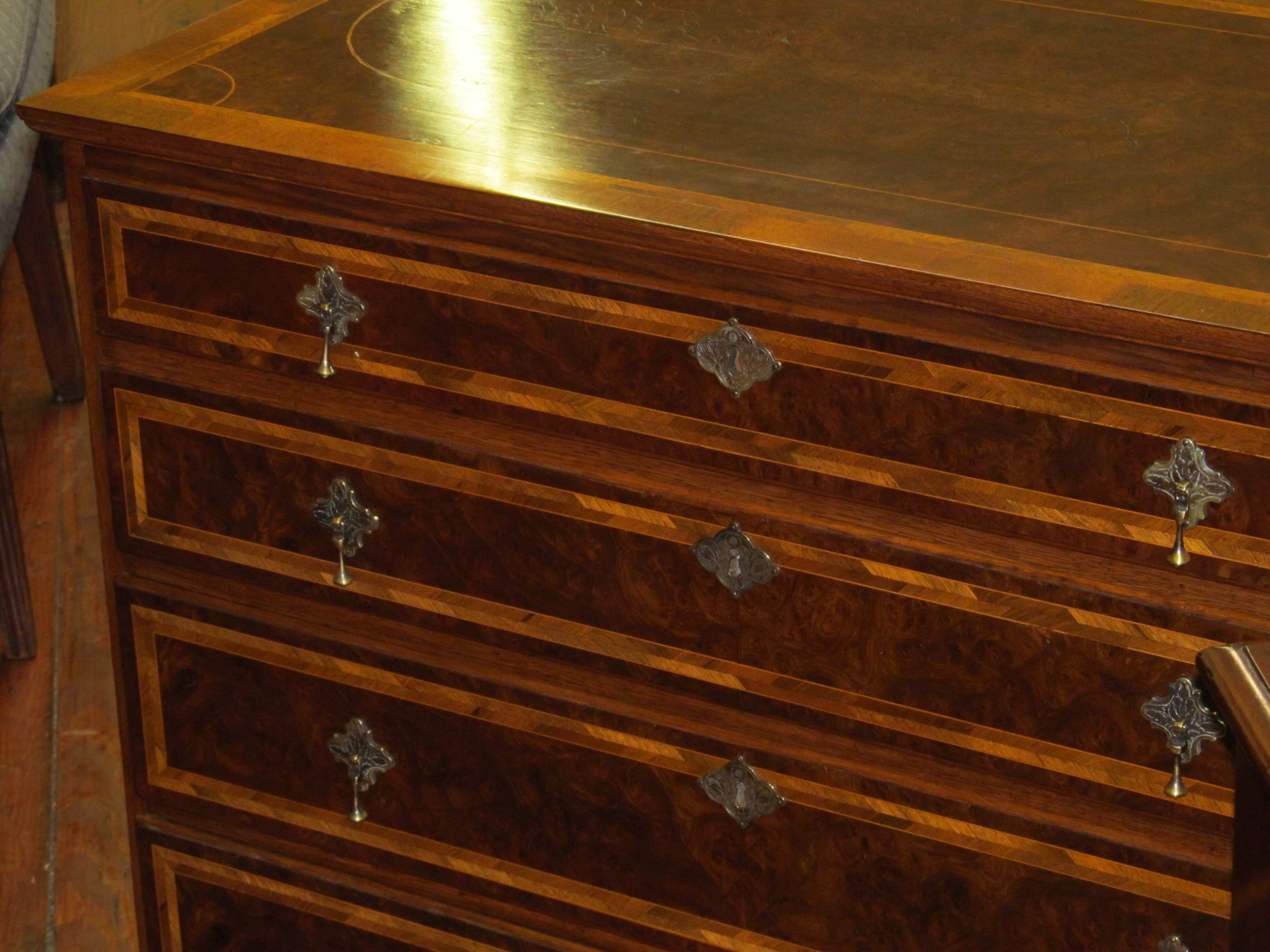 Fabulous Quality Antique English Inlaid Burl Walnut Queen Anne Revival Four Drawer Chest.