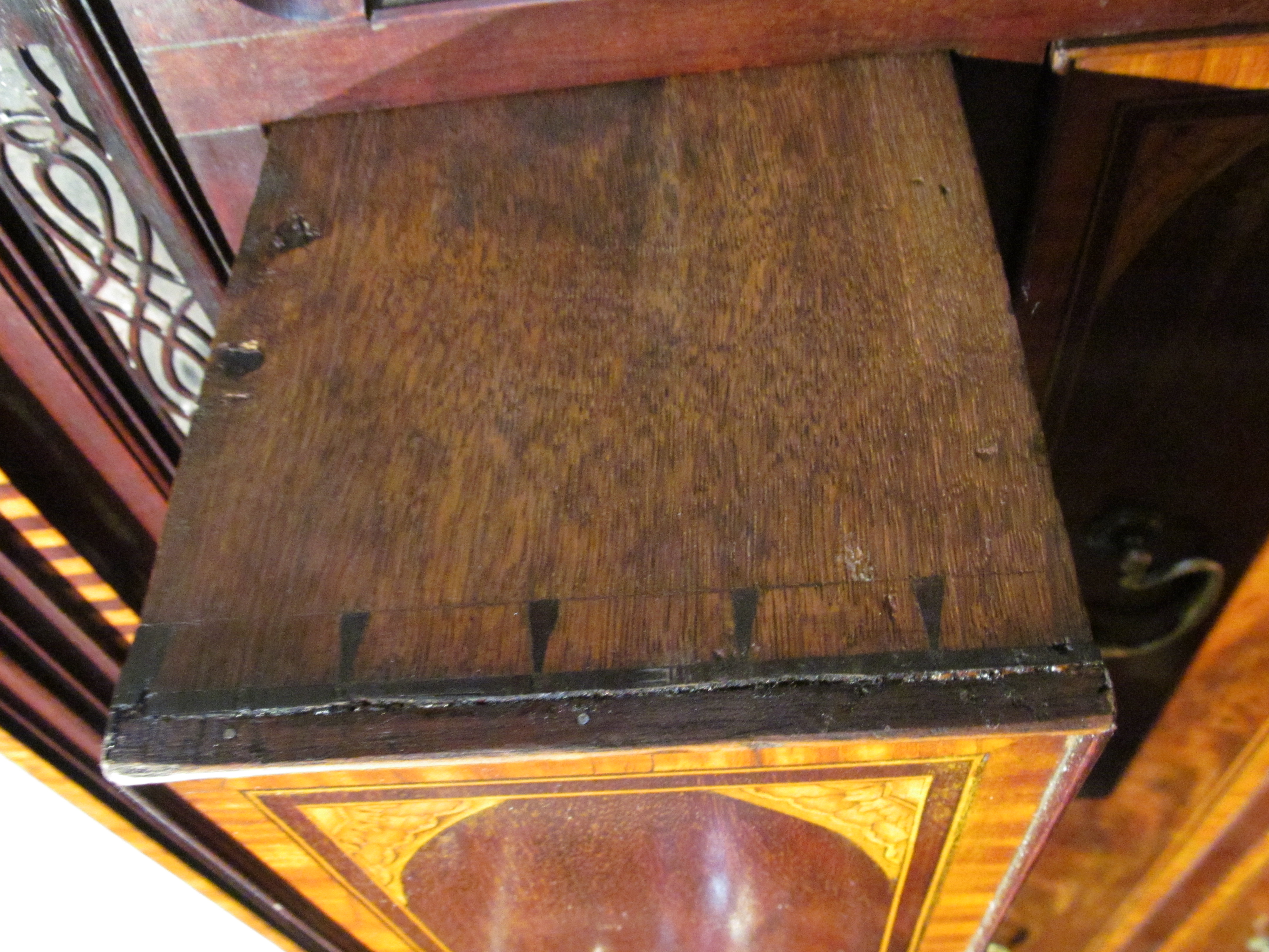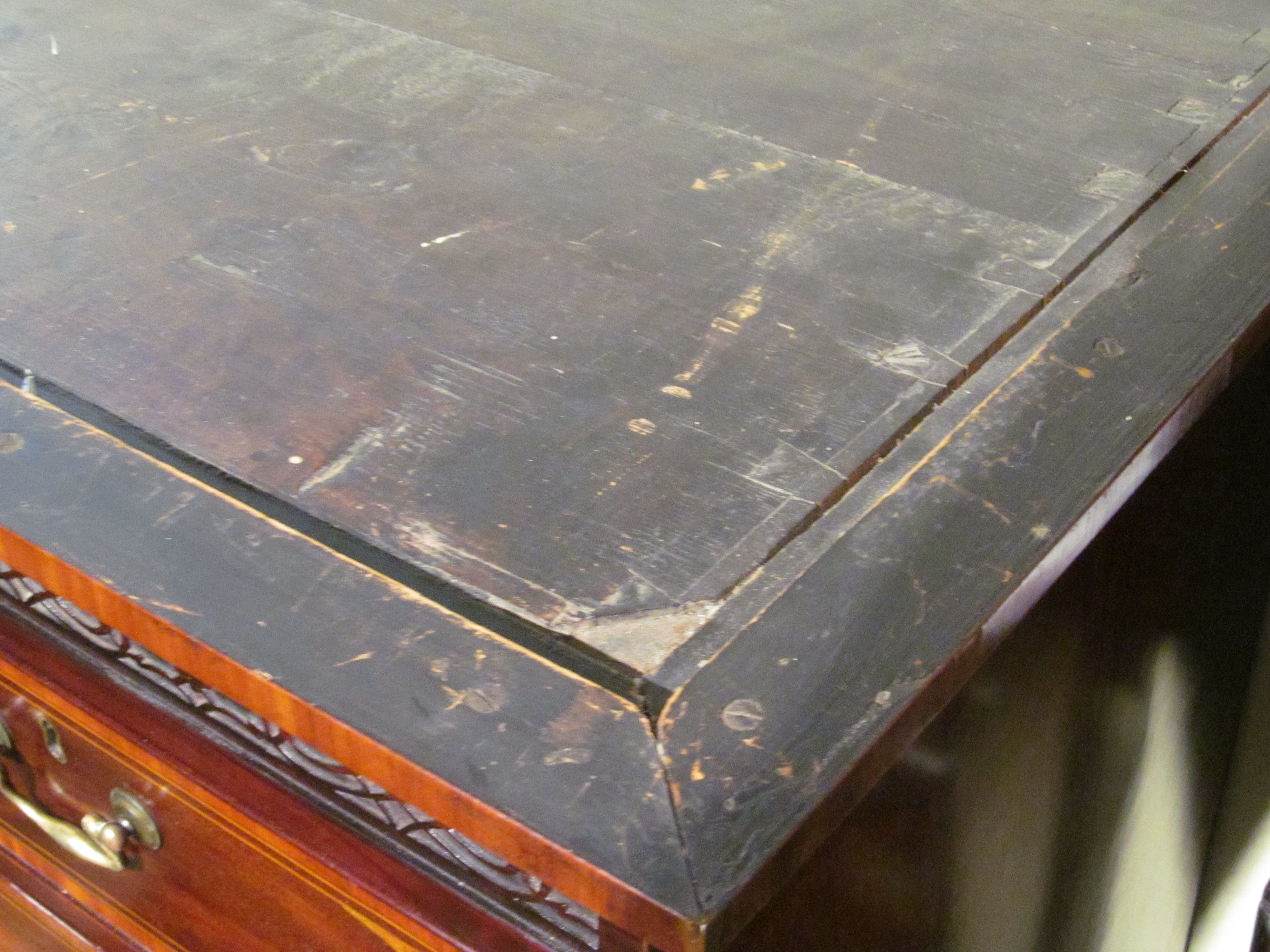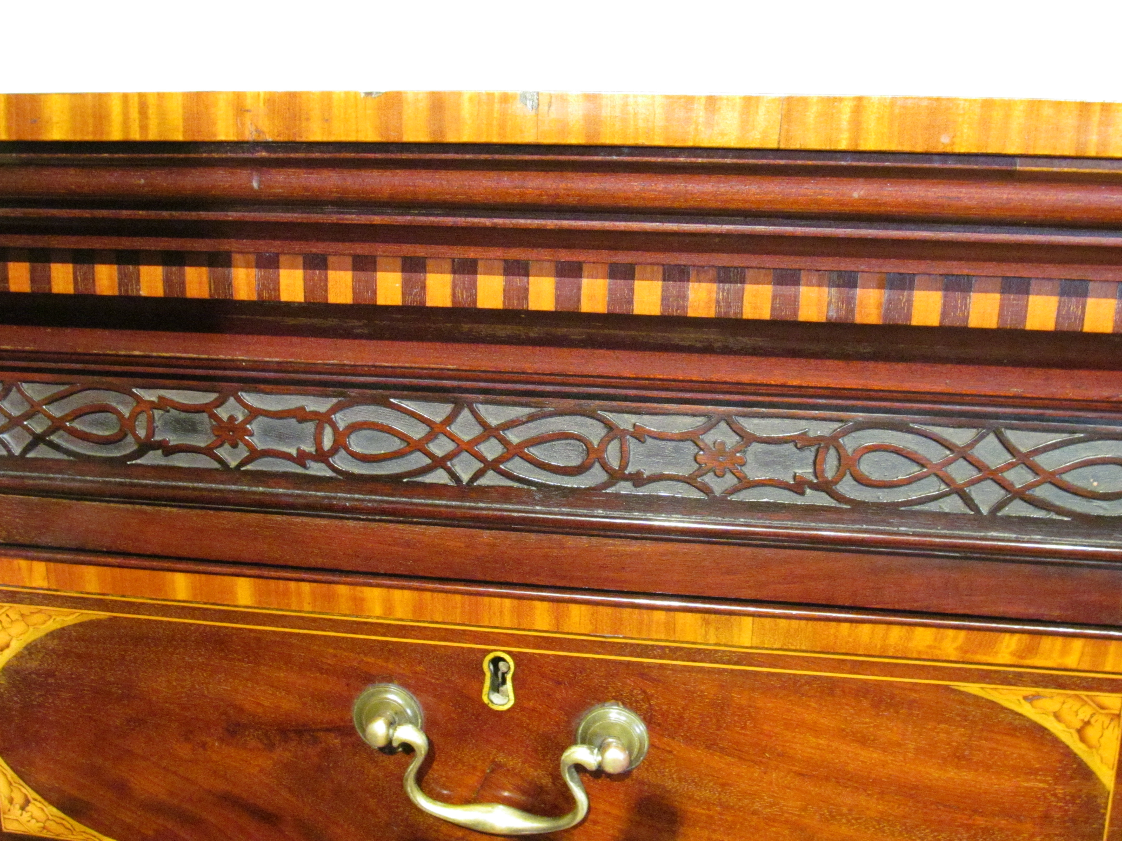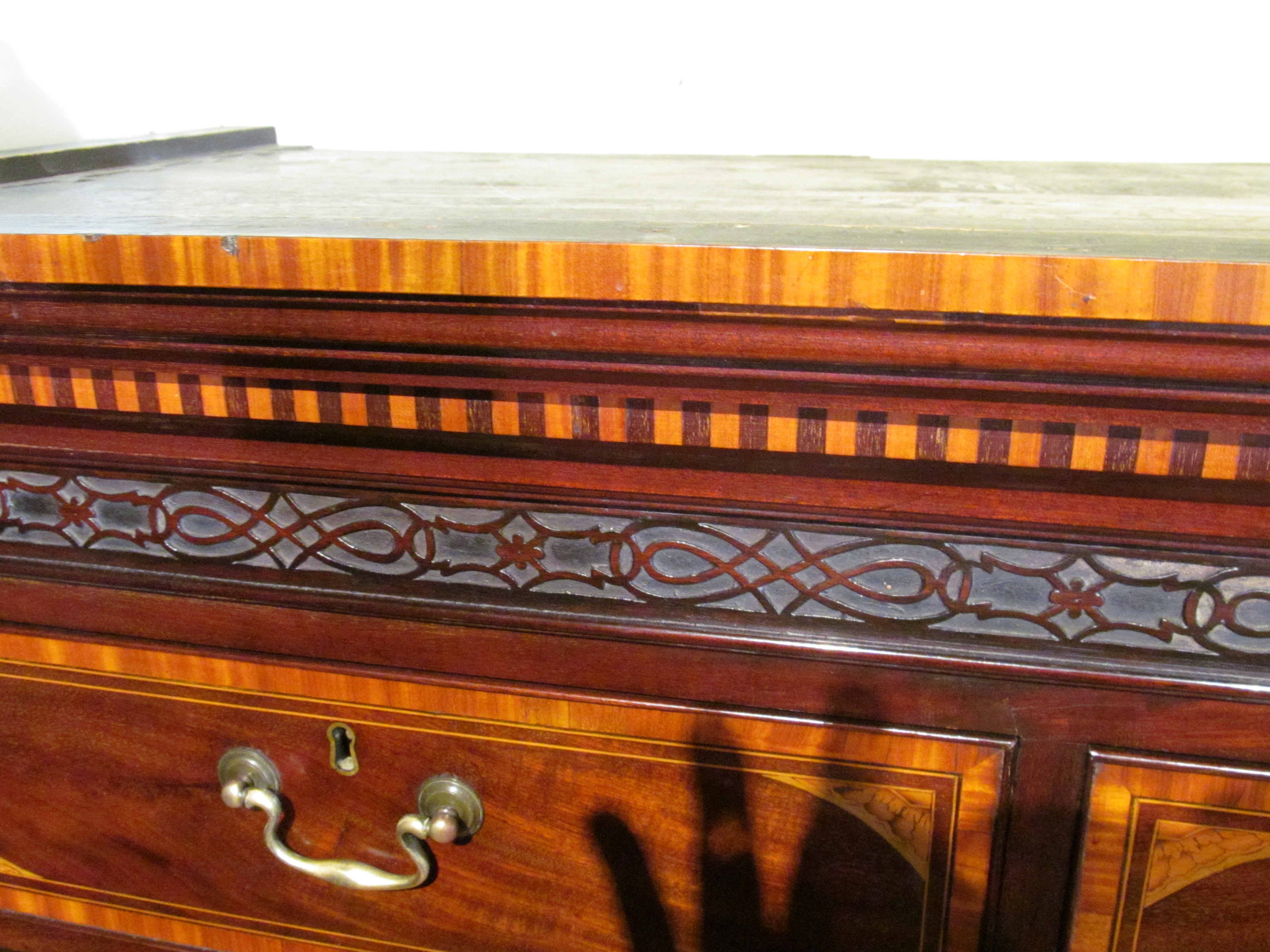 Note: the handsome Satinwood crossbanded inlay on drawers and hand-carved blind fret on frieze.
