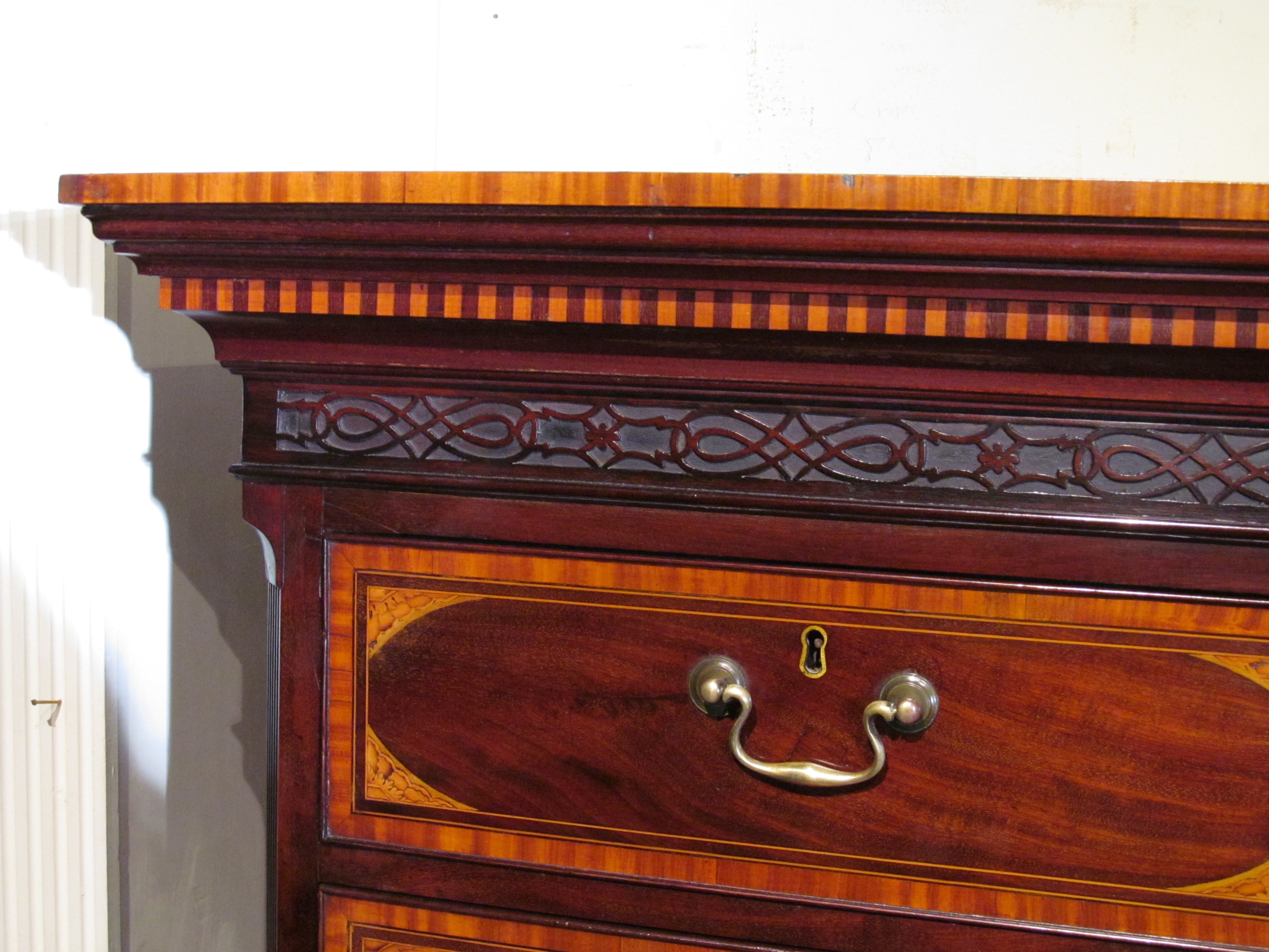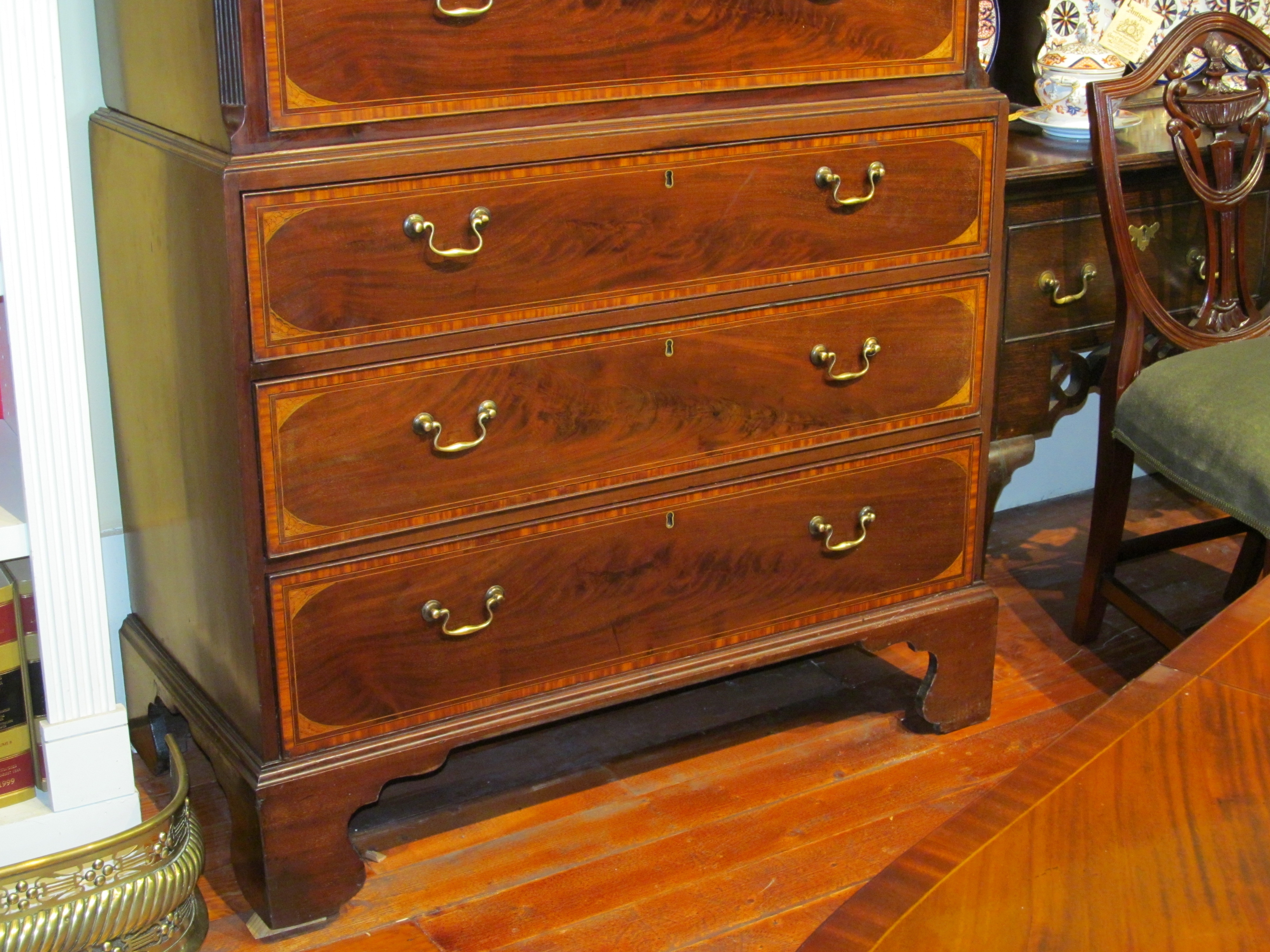 Antique English Inlaid Chippendale Style Chest on Chest - Image 4