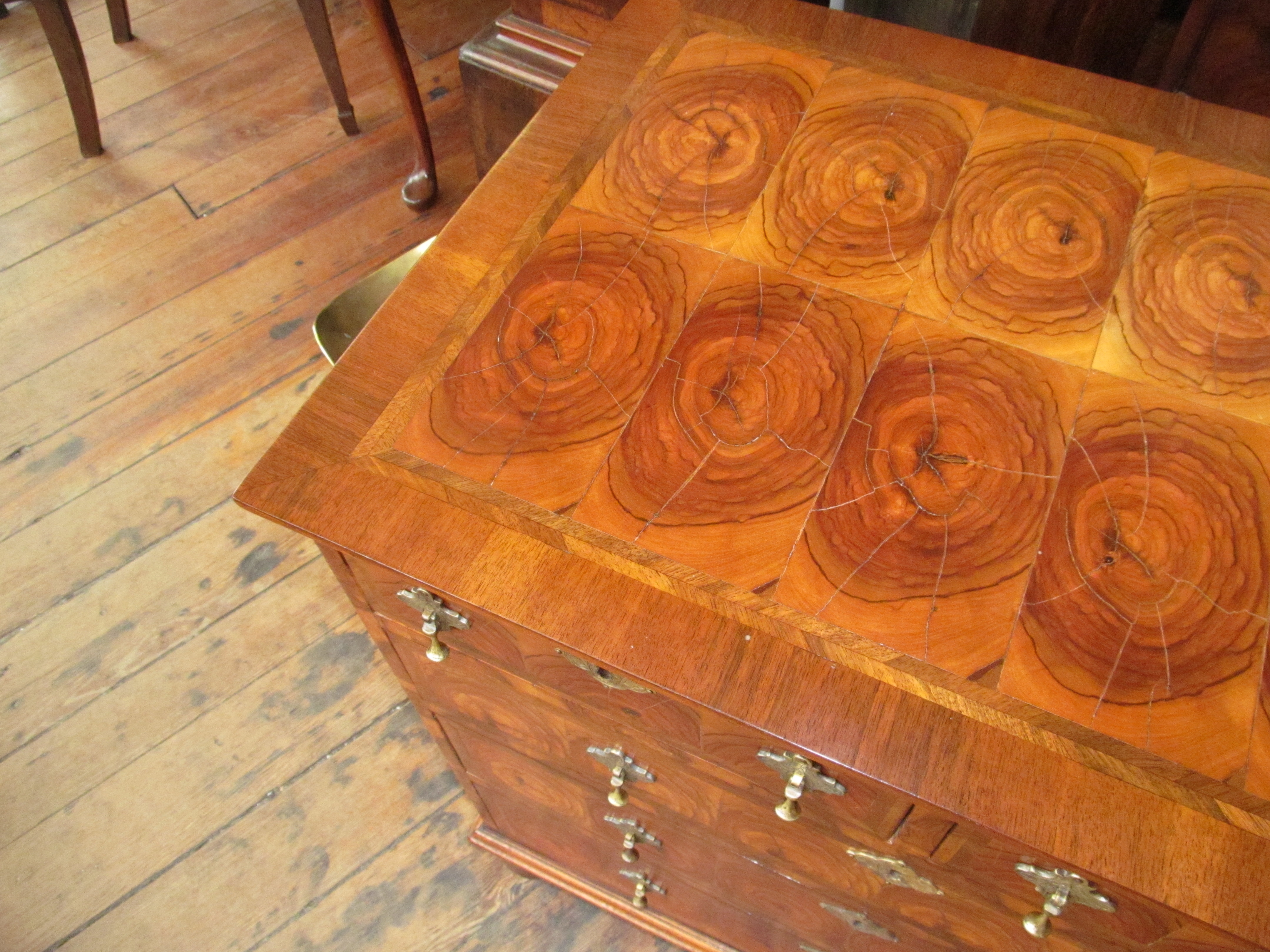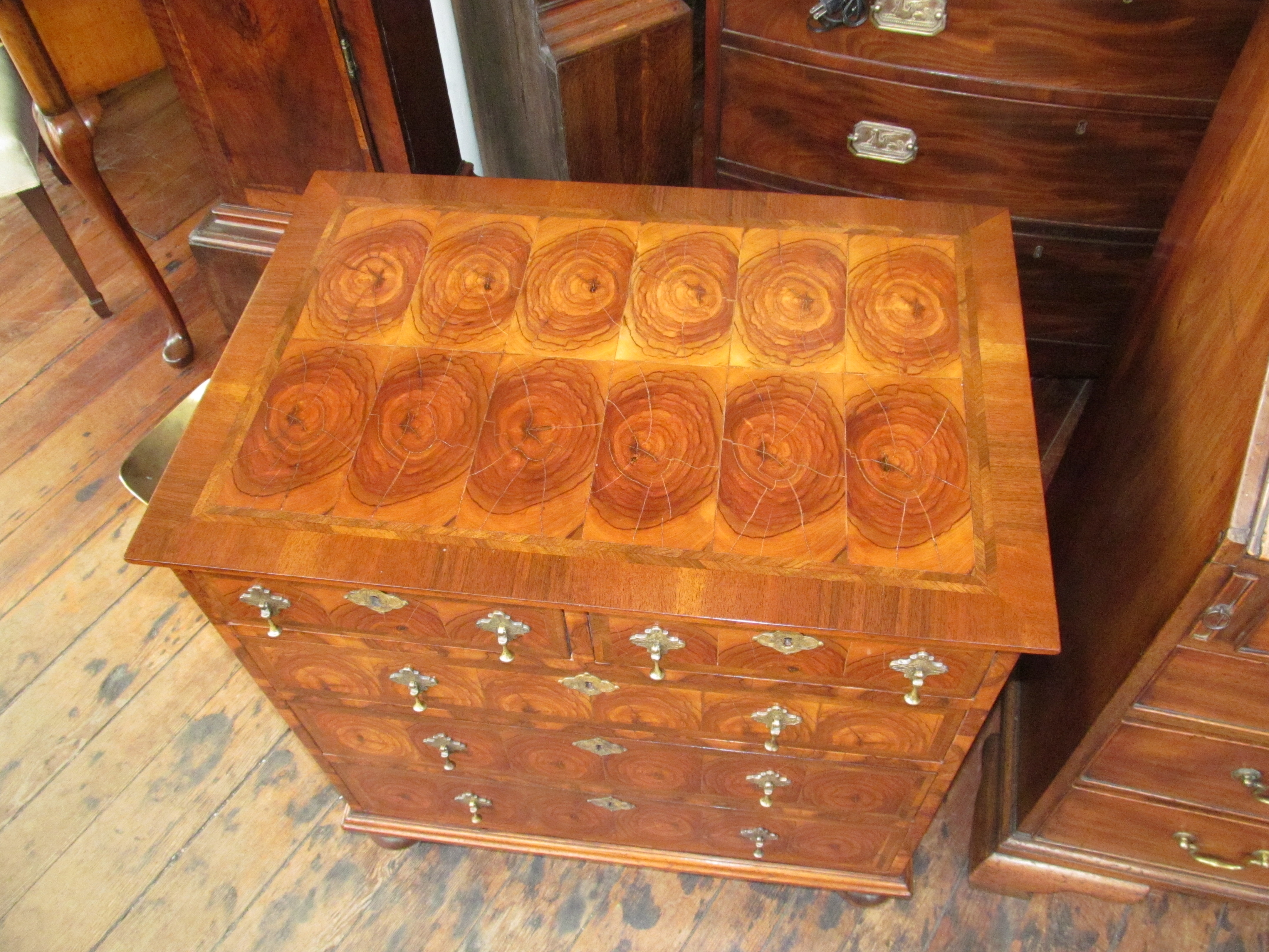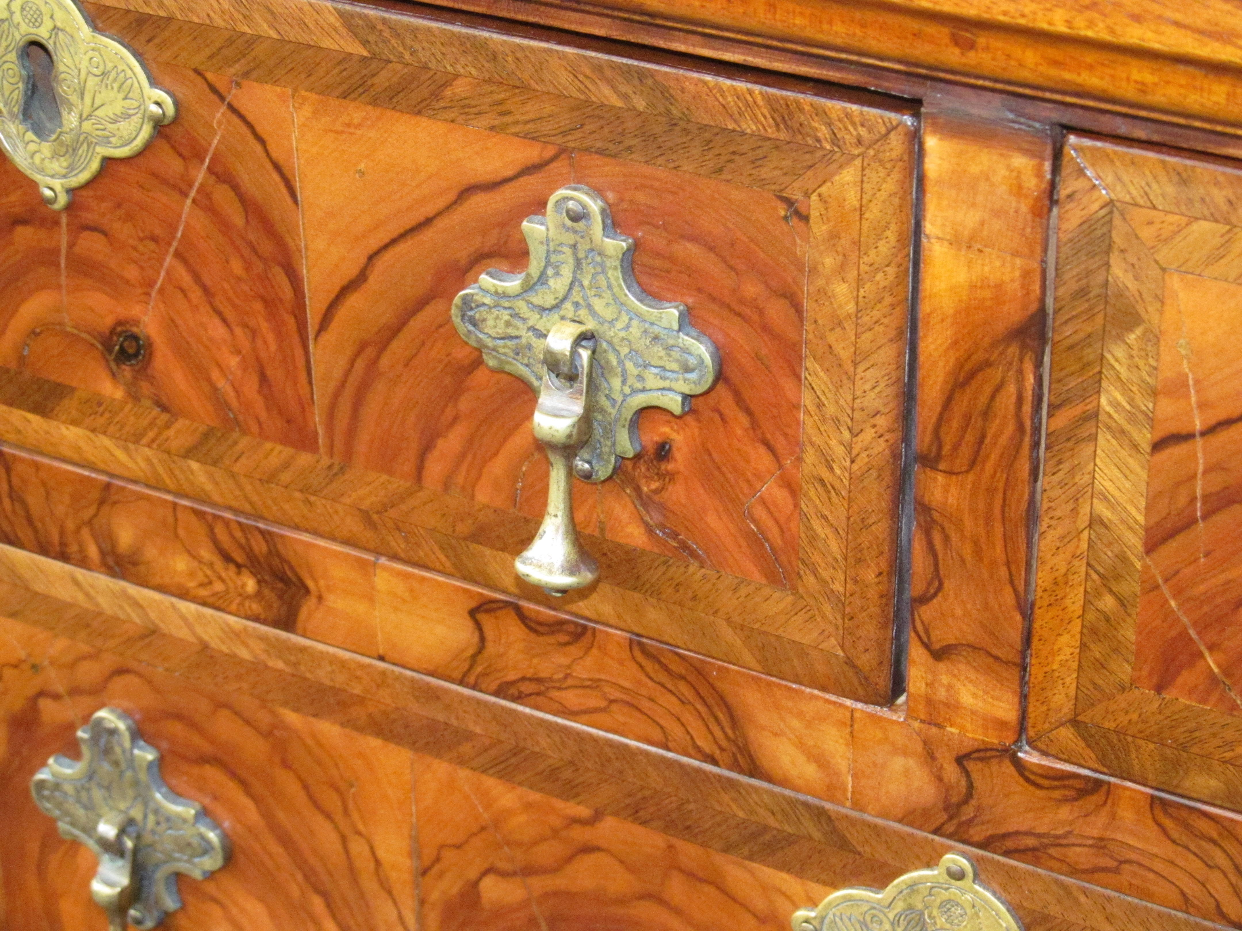 Fabulous Quality Antique English Oyster Veneer Olivewood Queen Anne Style Bachelor’s Chest.