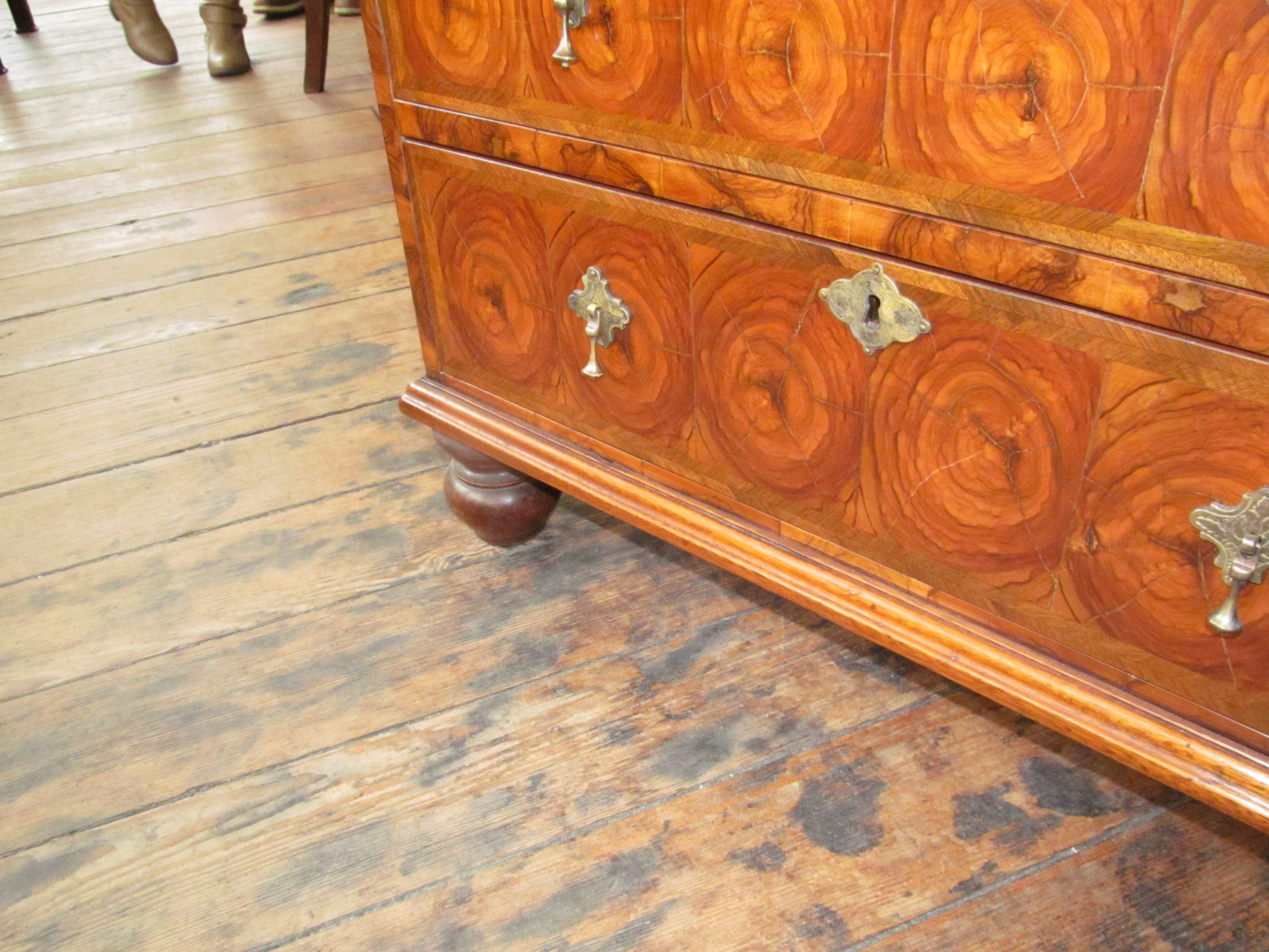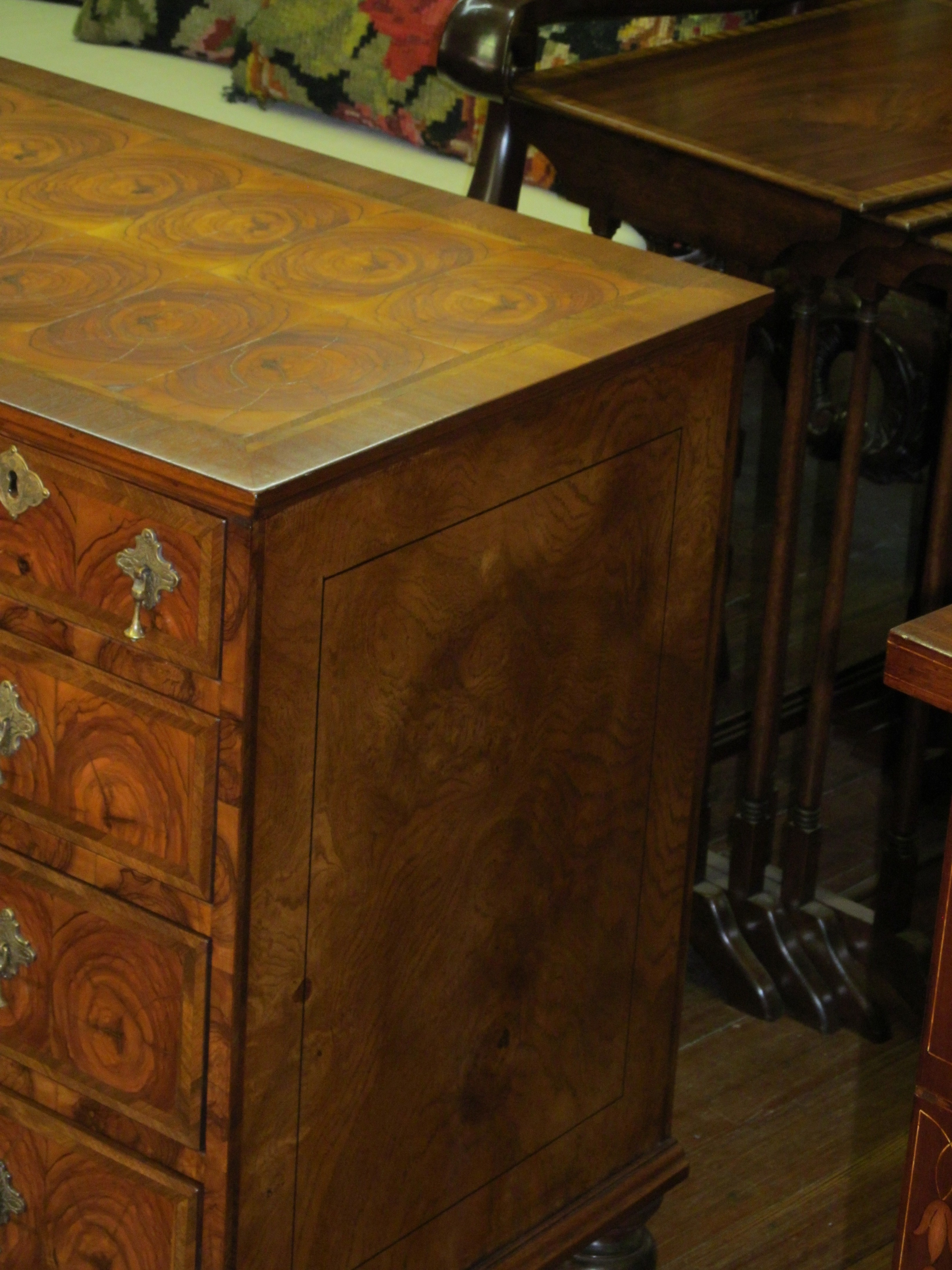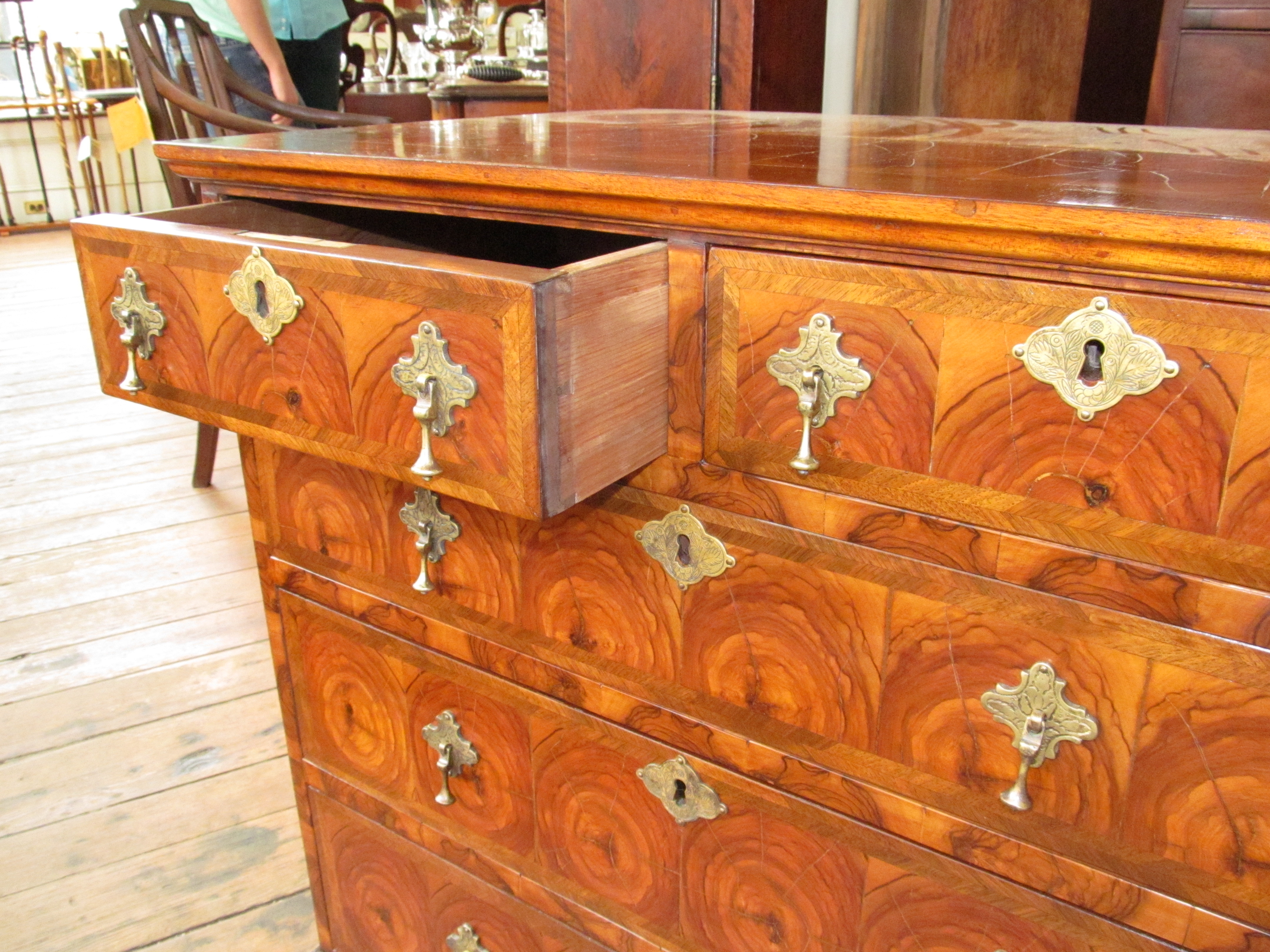 Fabulous Quality Antique English Oyster Veneer Olivewood Queen Anne Style Bachelor’s Chest.
