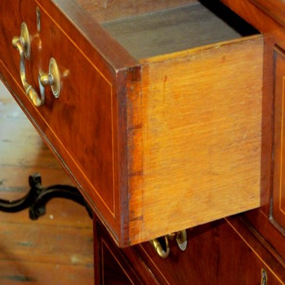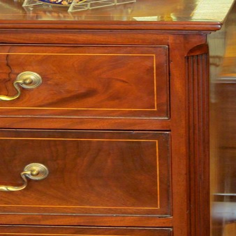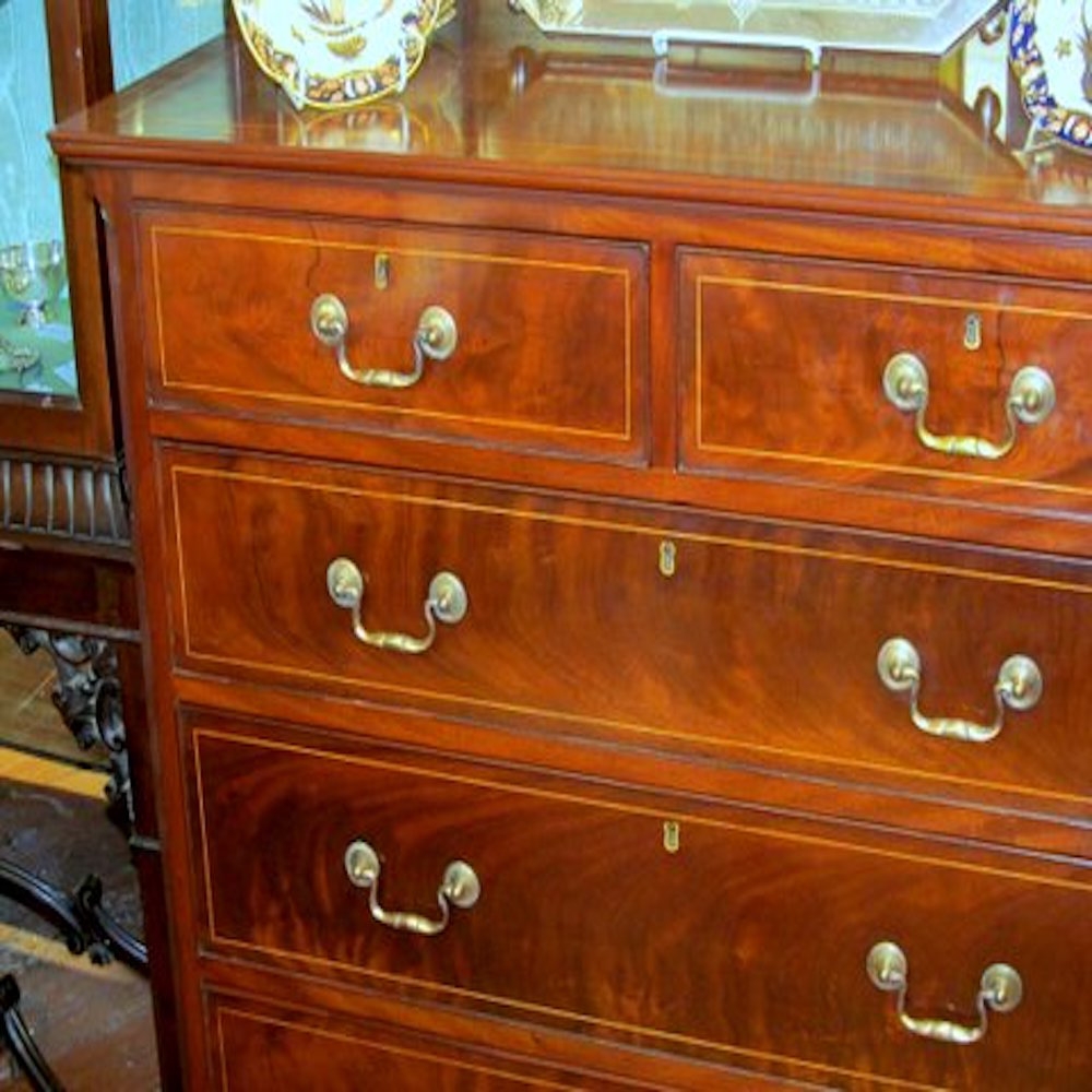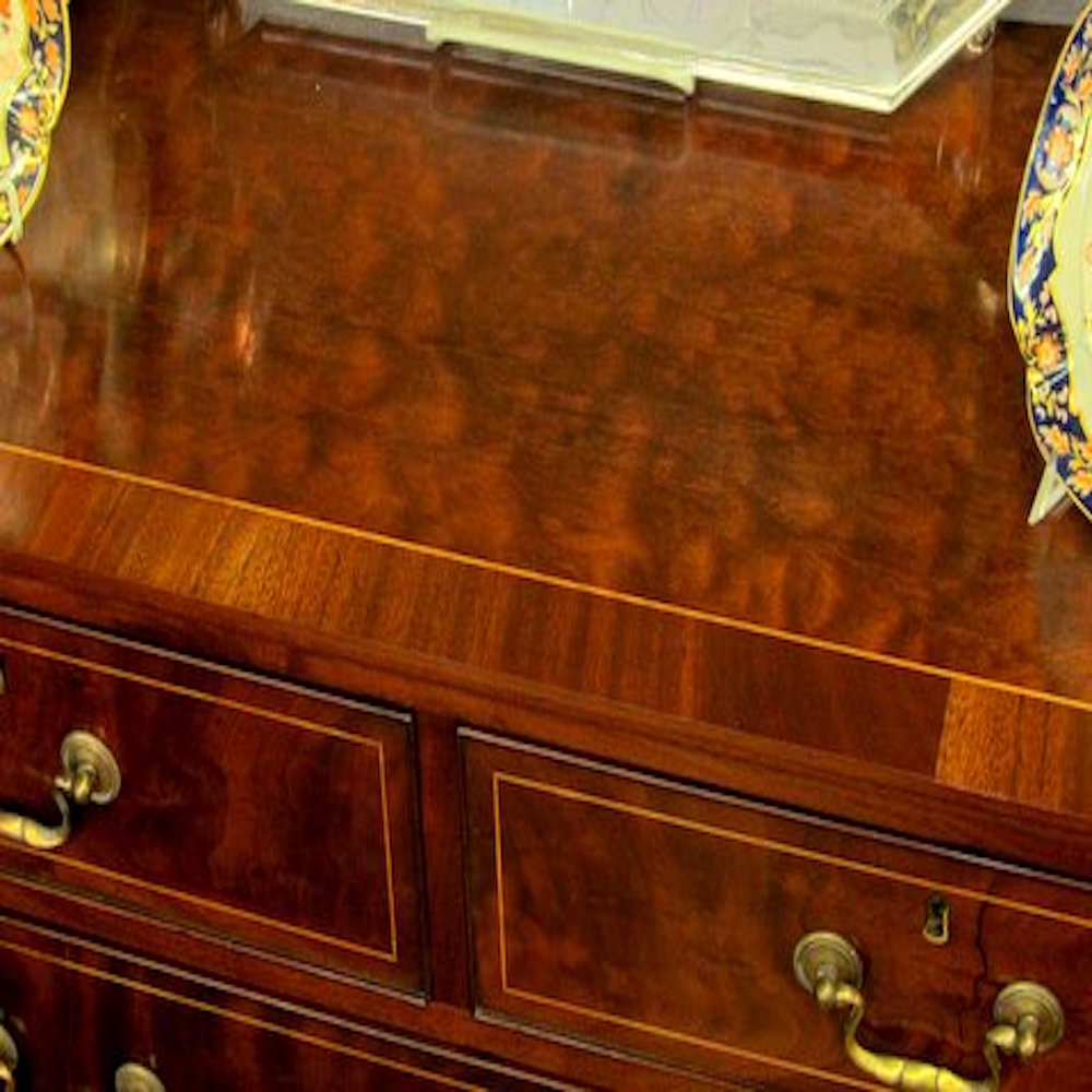 Fabulous Quality Antique English Inlaid Figured Mahogany Chippendale Style Chest of Drawers