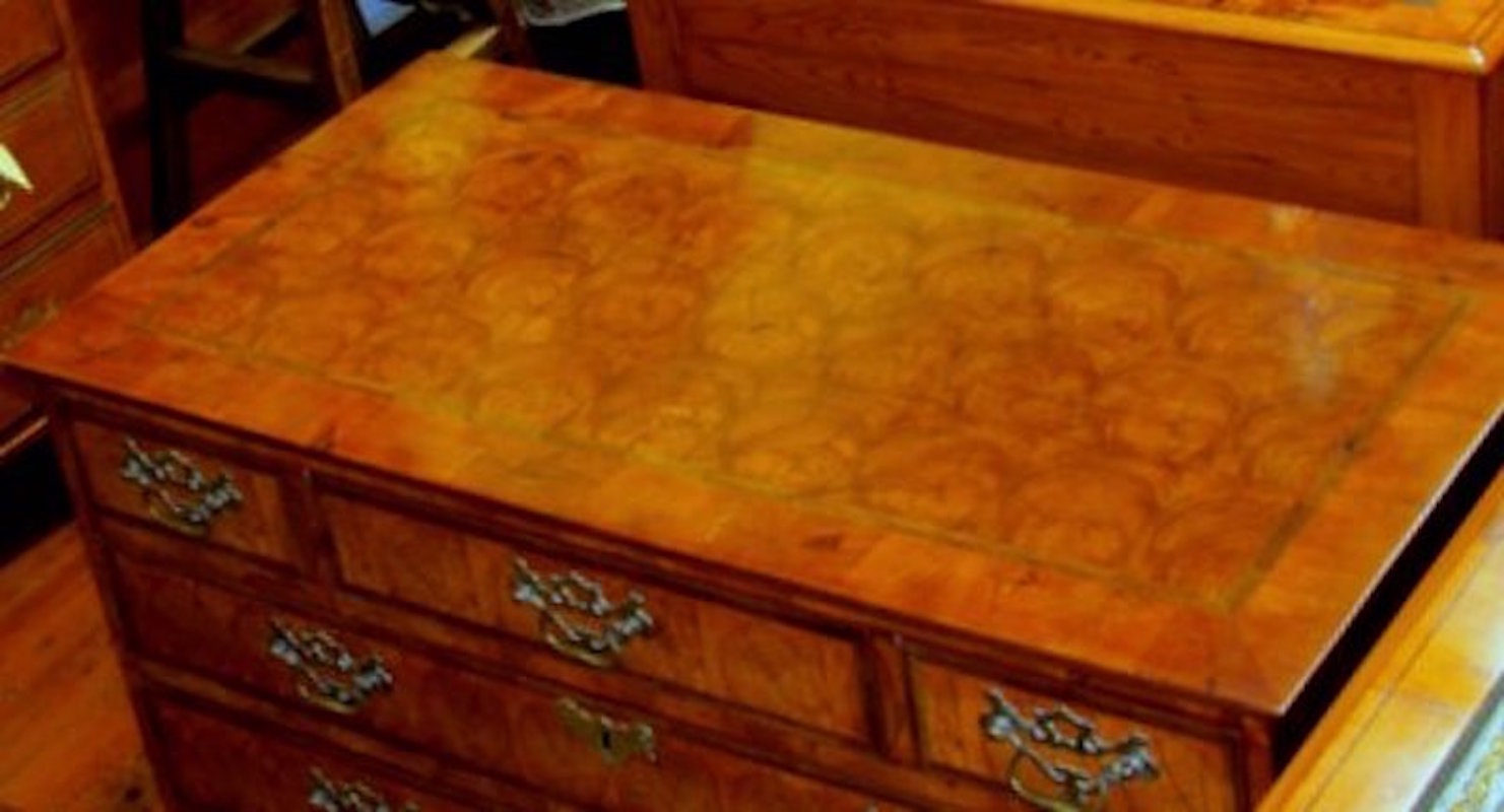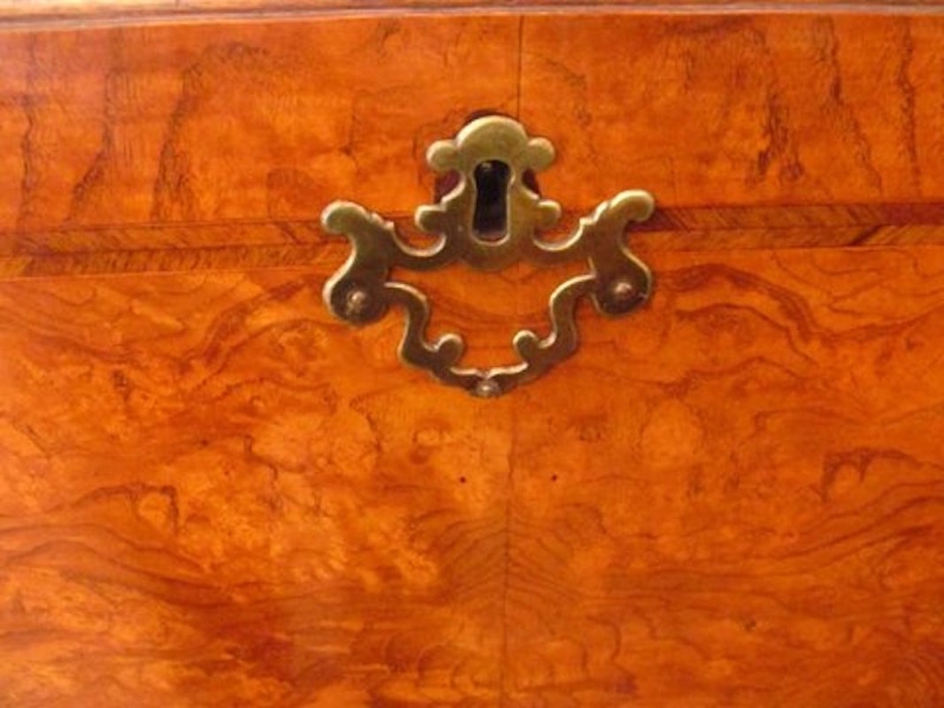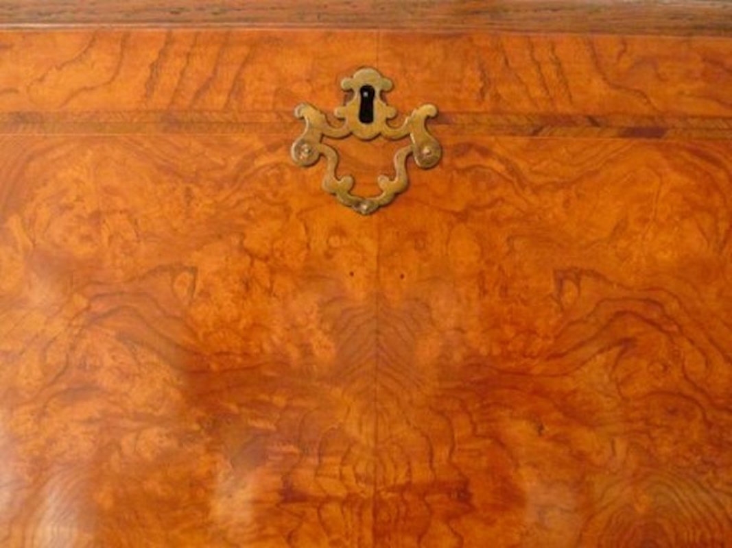 Fabulous Quality Antique English Geo. III Oyster Veneer Queen Anne Revival Low Chest of Drawers