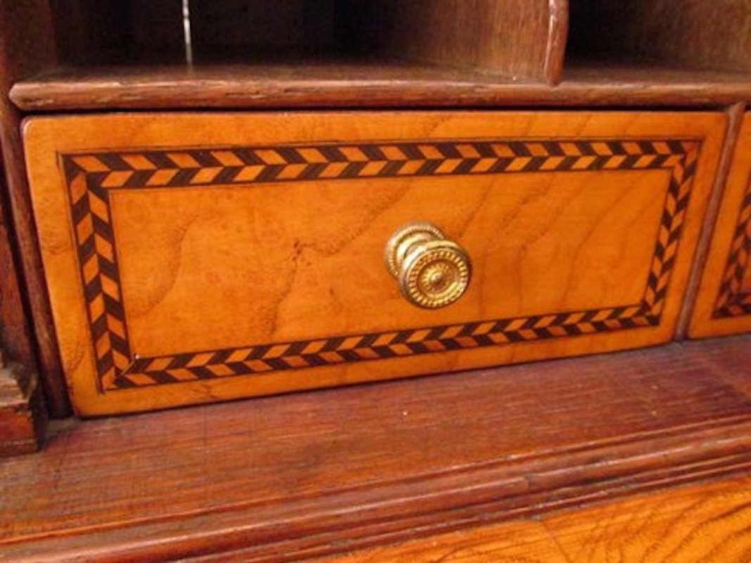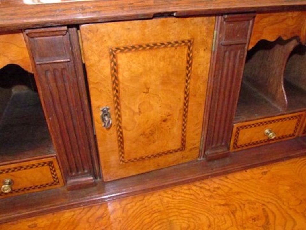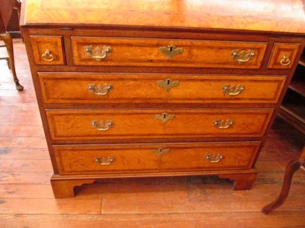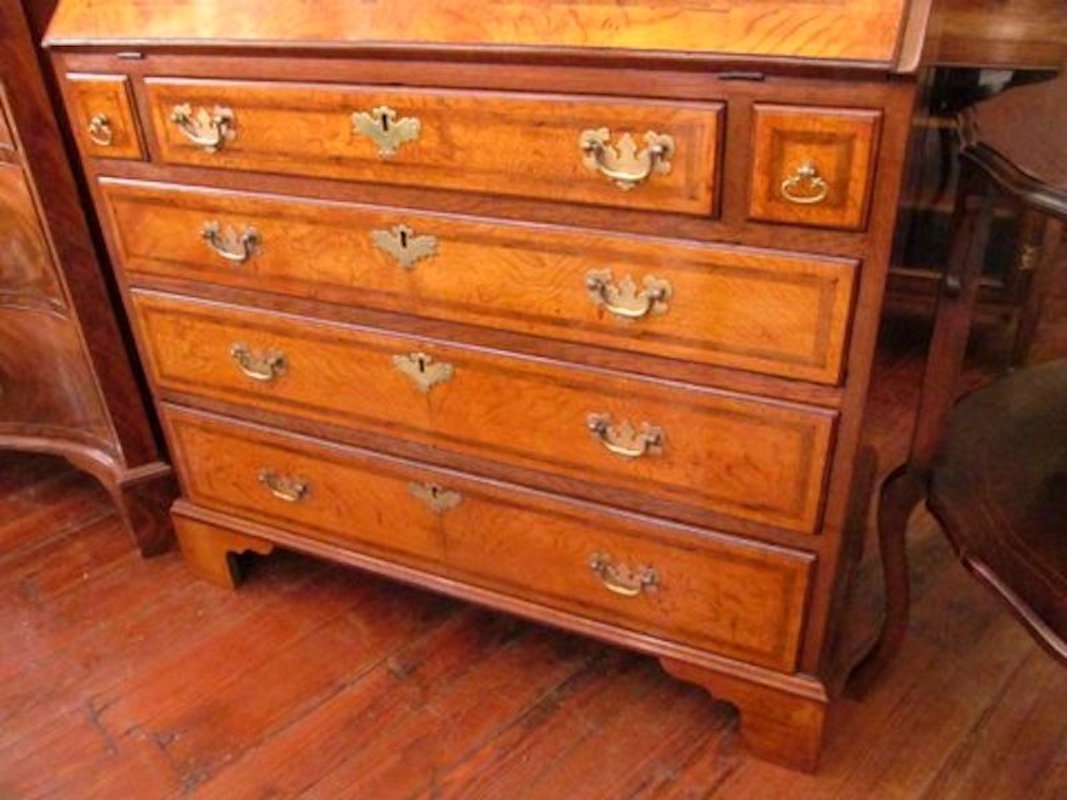 Fabulous Quality Antique English Geo. III Oyster Veneer Queen Anne Revival Low Chest of Drawers