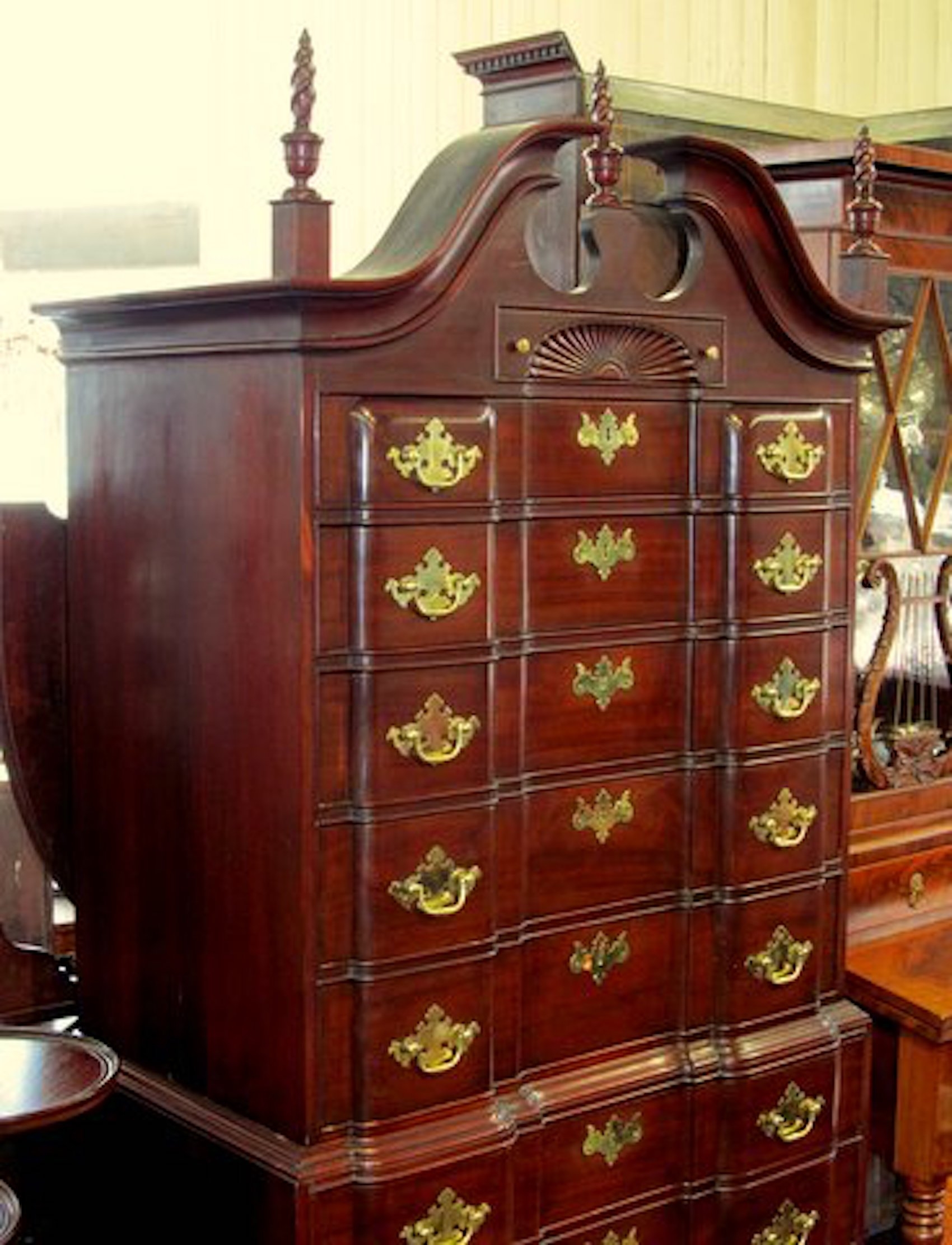 Superb Quality Old American Solid Mahogany “New England Black Front” Chippendale Style Chest on Chest