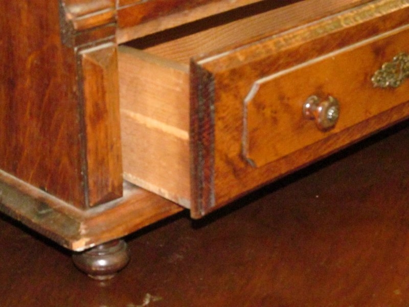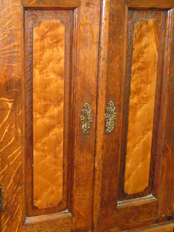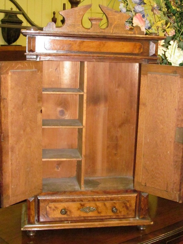 Rare Old English Oak and Birdseye Maple Miniature Wardrobe