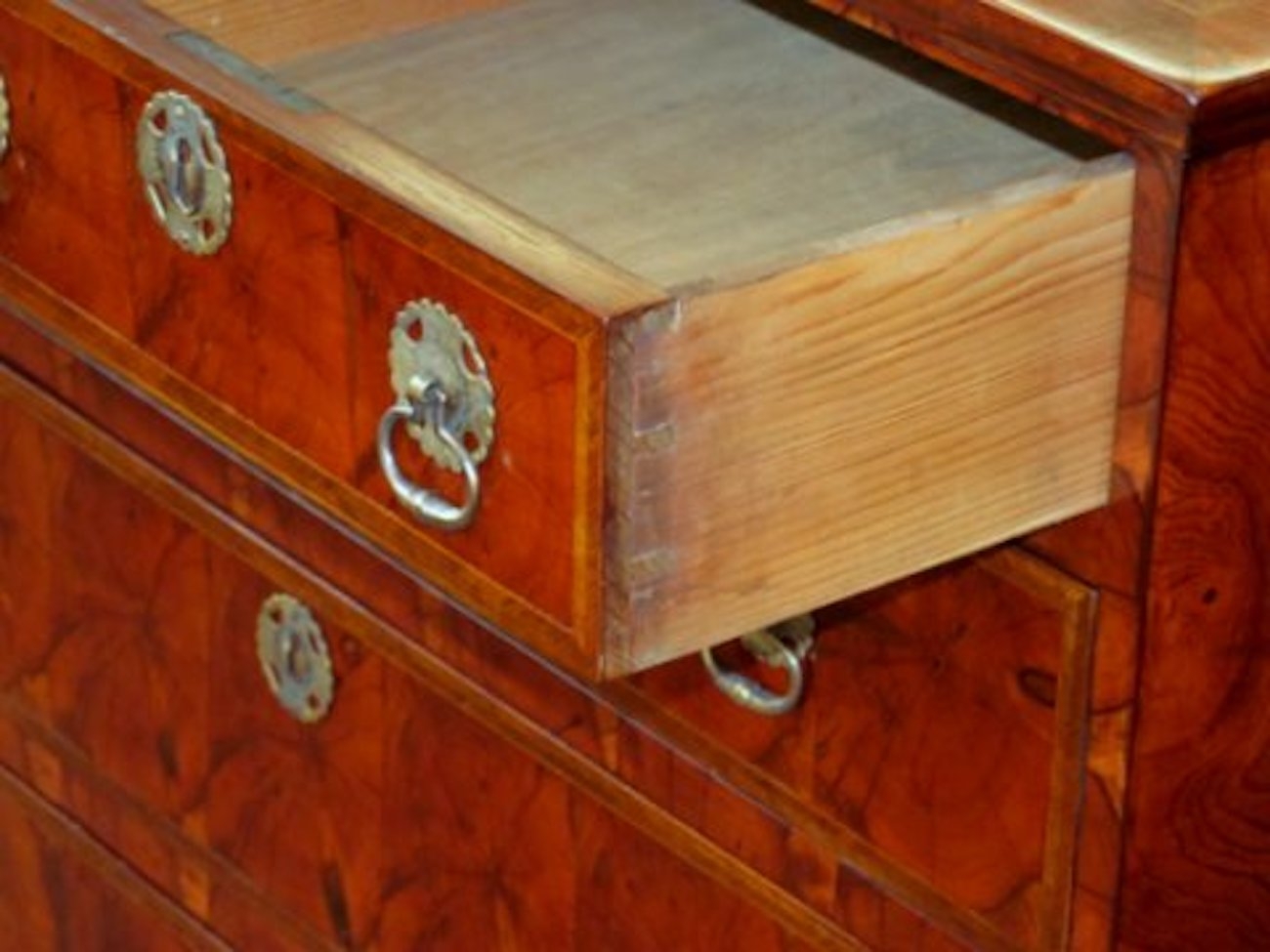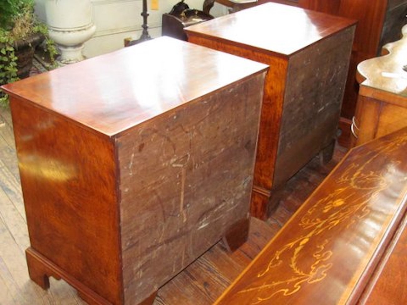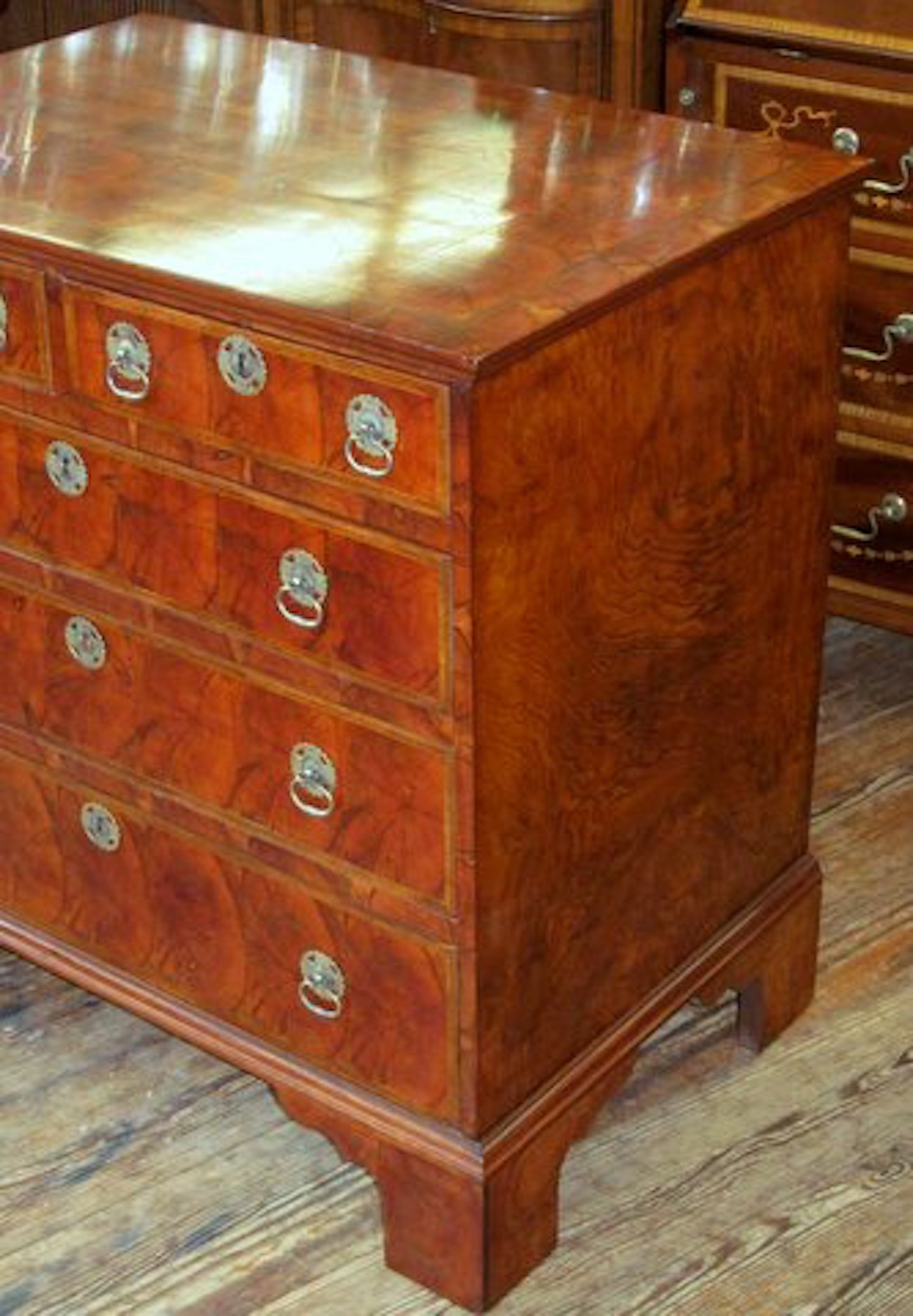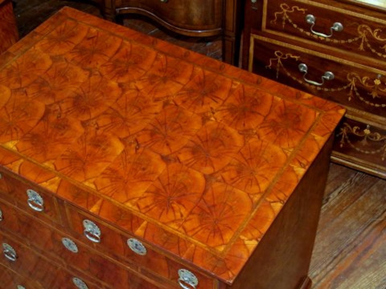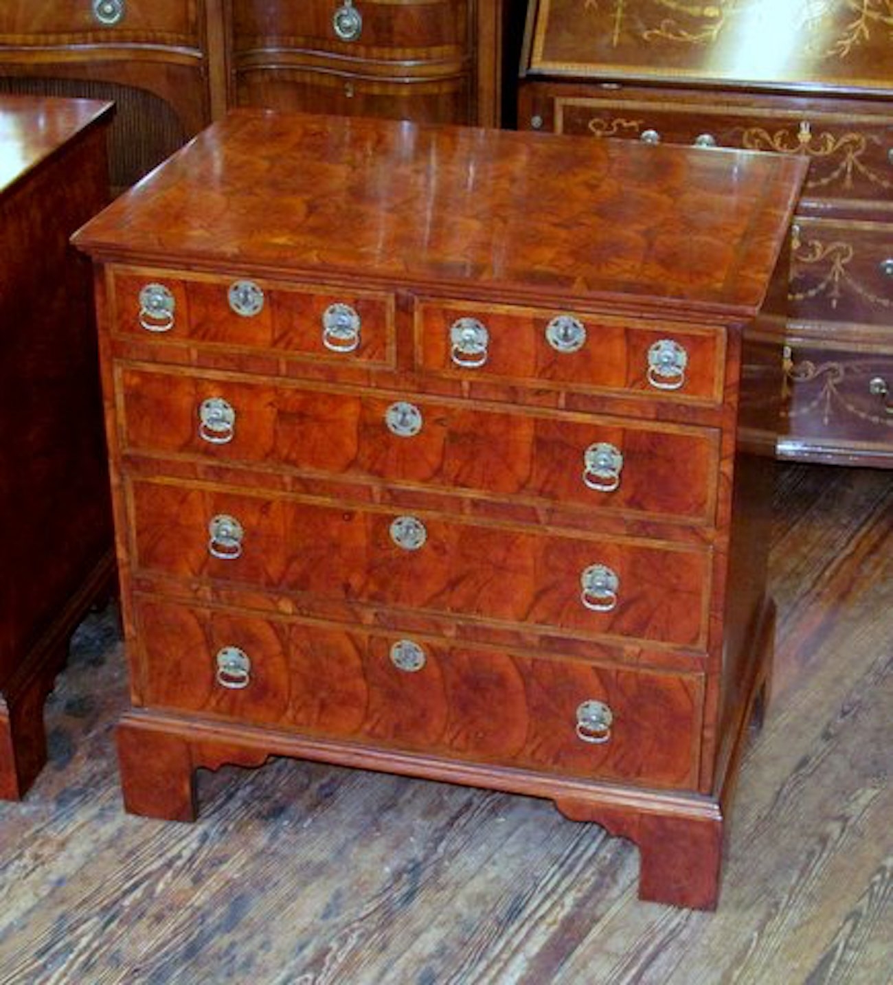 Very Rare and Fine Antique PAIR of English Inlaid Yew-wood Oyster Veneer Queen Anne Revival Bachelor’s Chests