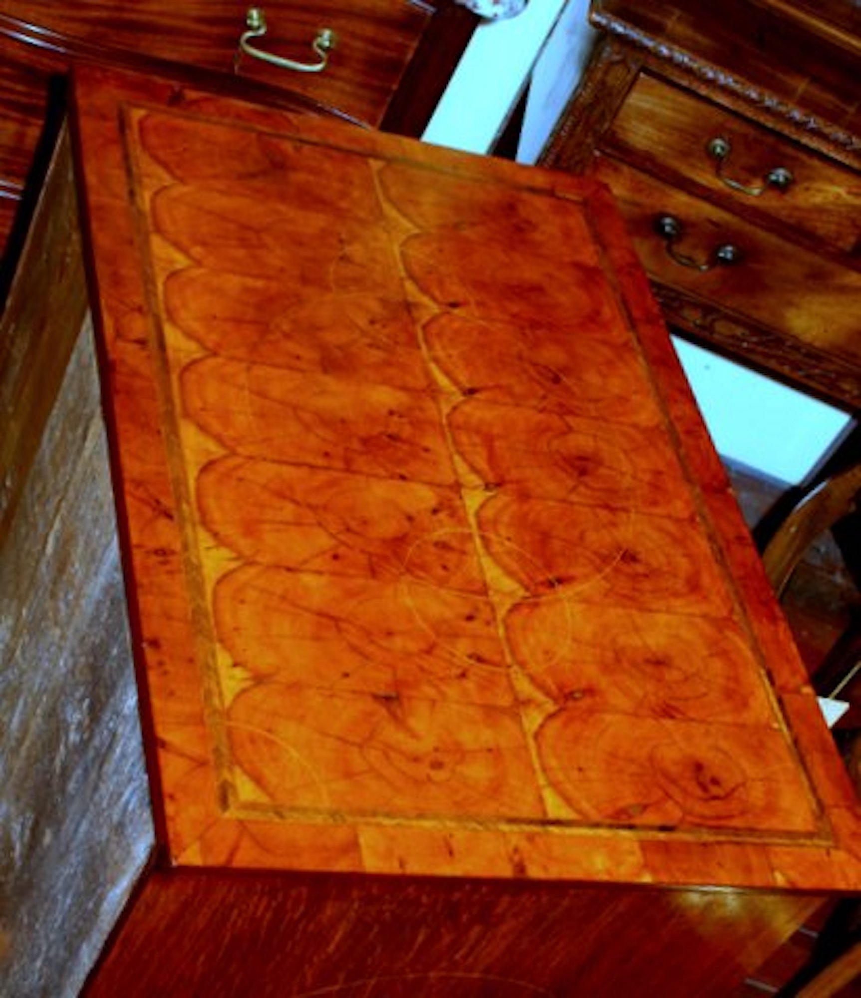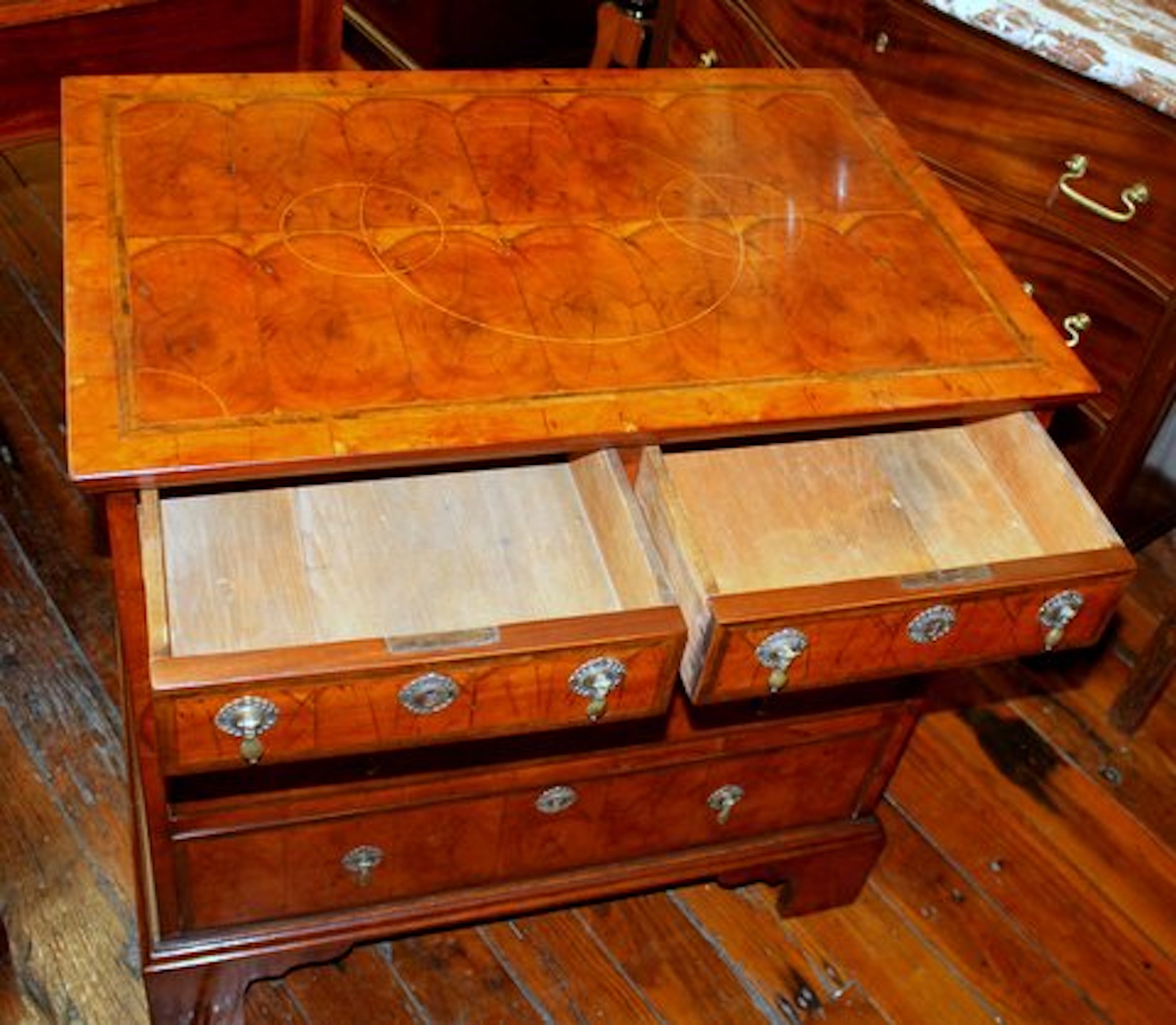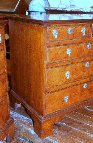 Pair of Superb Quality Antique English Inlaid Yew-wood Oyster Veneer Queen Anne Revival Bachelor’s Chests