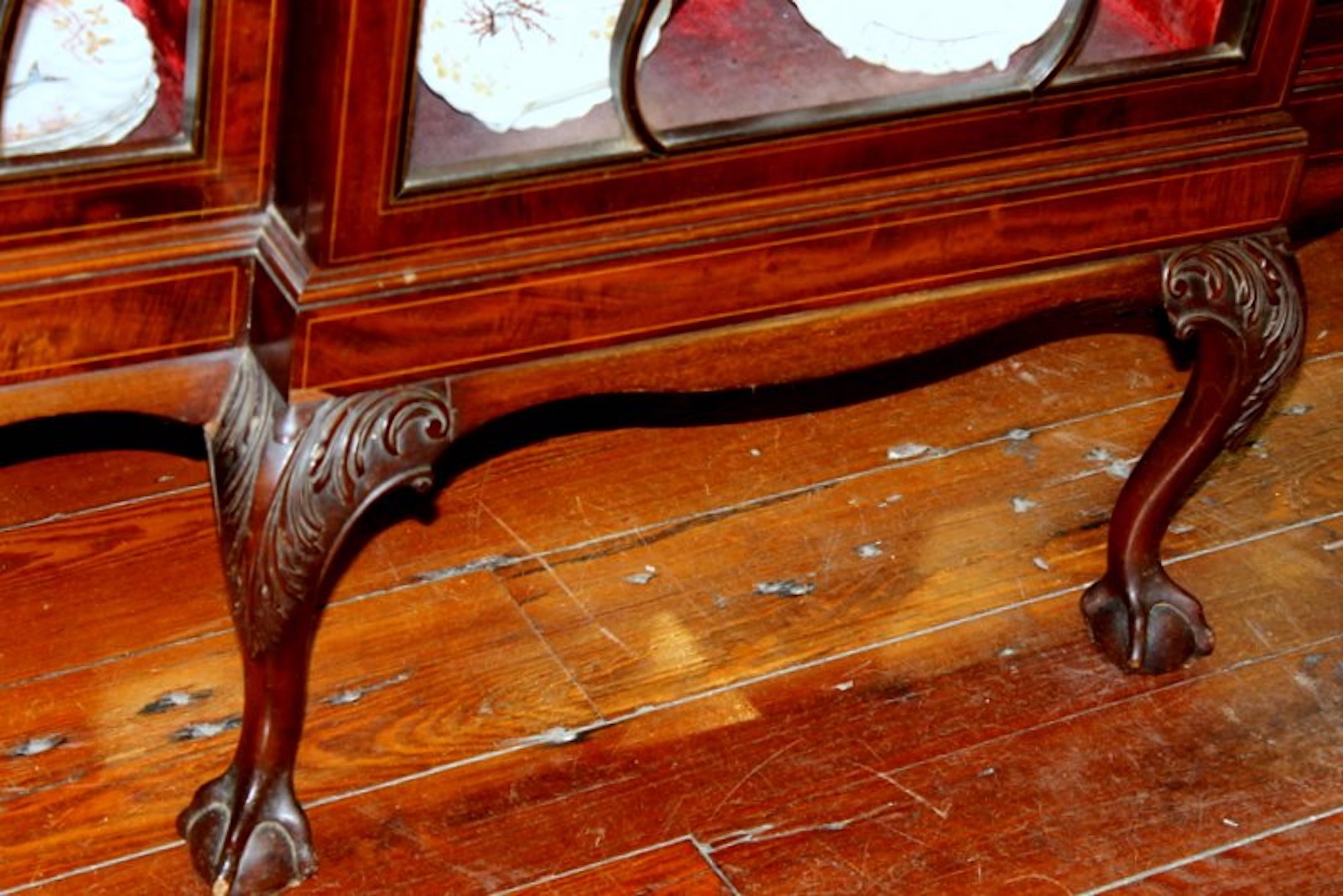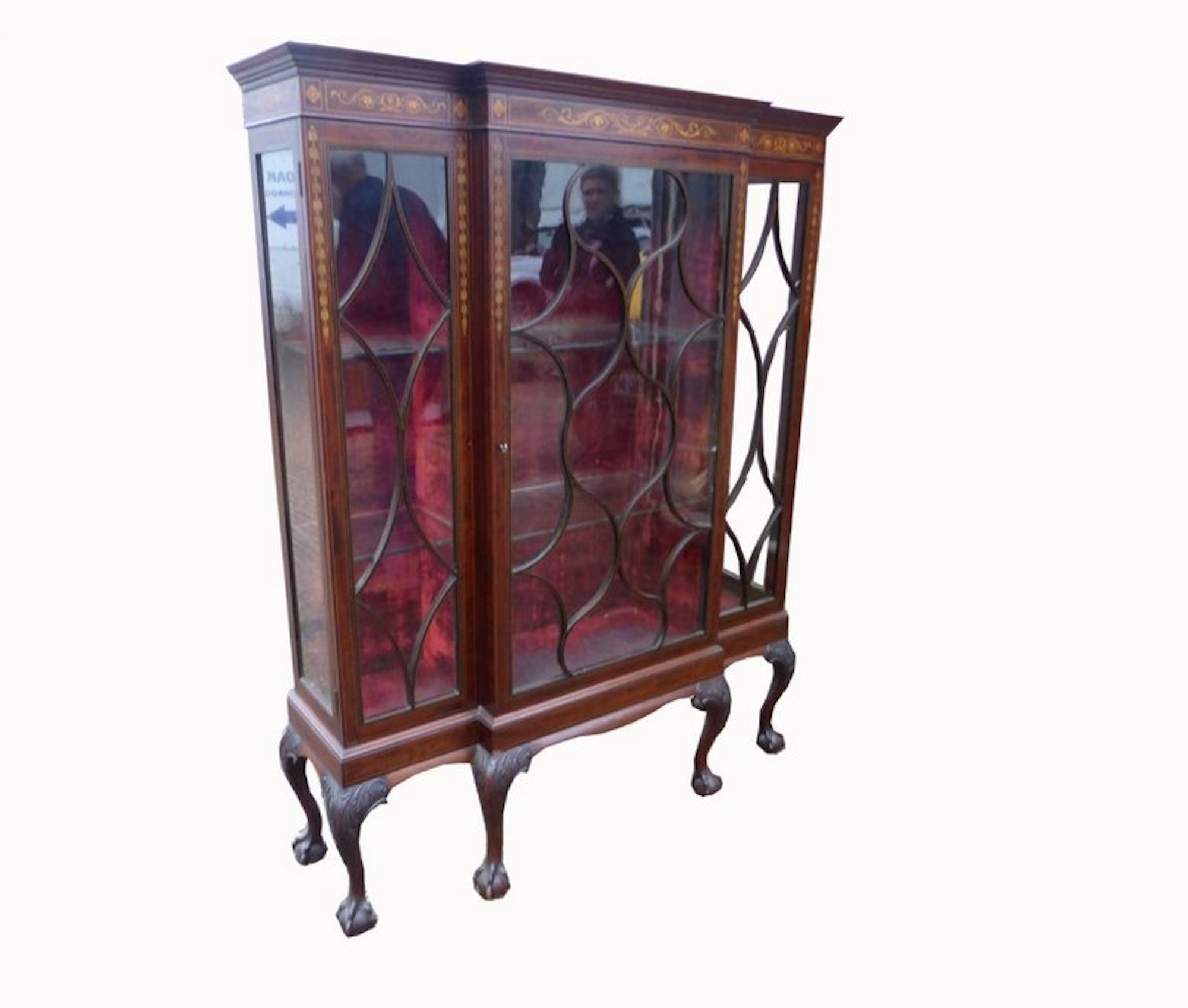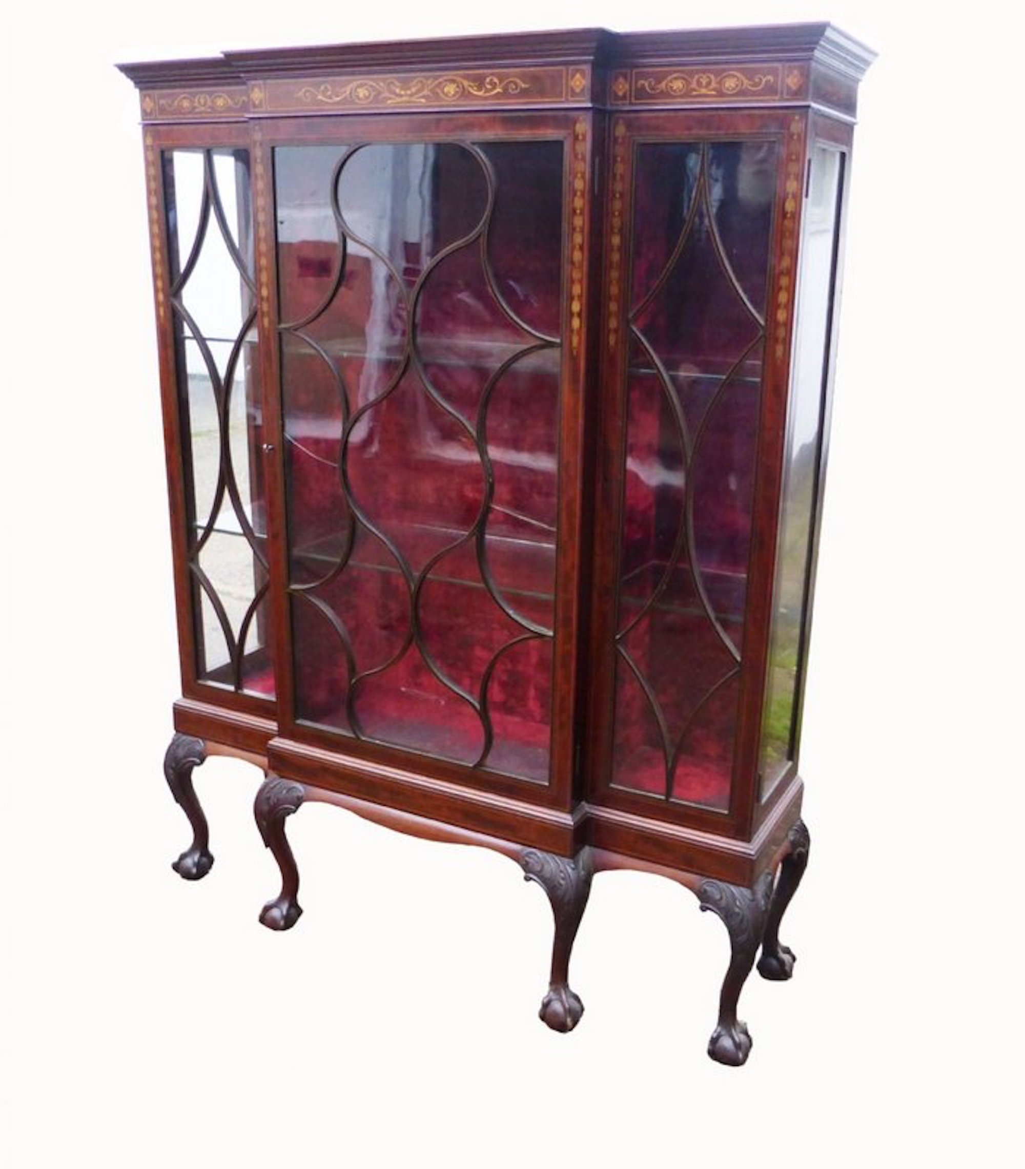 SKU: 7325-141 Categories: All Inventory, Cupboards, Furniture Tags: break-front, Cabinet, Chippendale, display, Mahogany, Marquetry