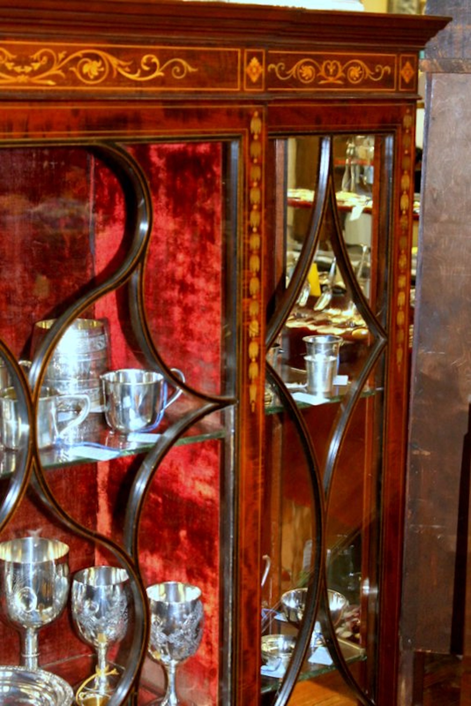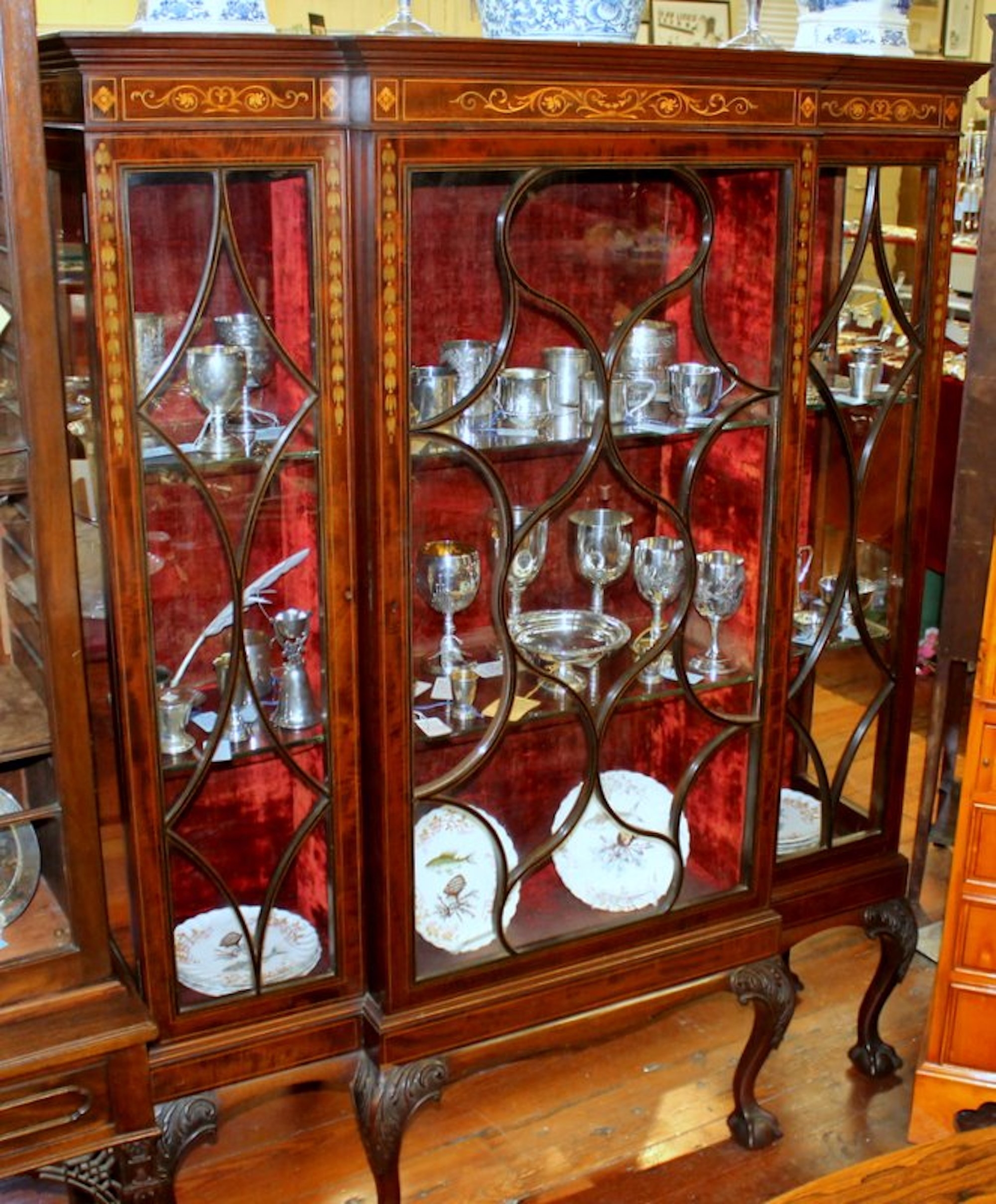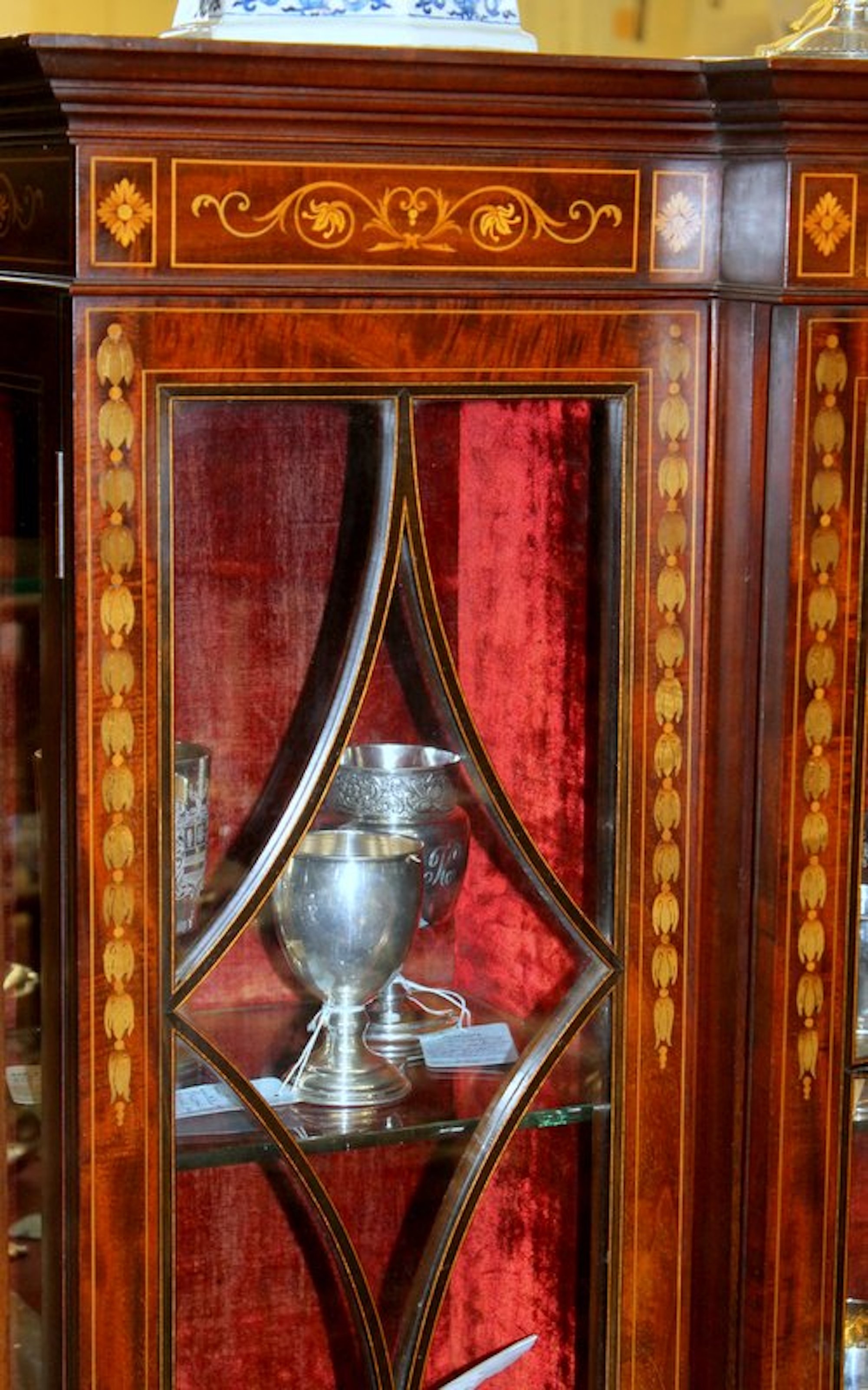 SKU: 7325-141 Categories: All Inventory, Cupboards, Furniture Tags: break-front, Cabinet, Chippendale, display, Mahogany, Marquetry