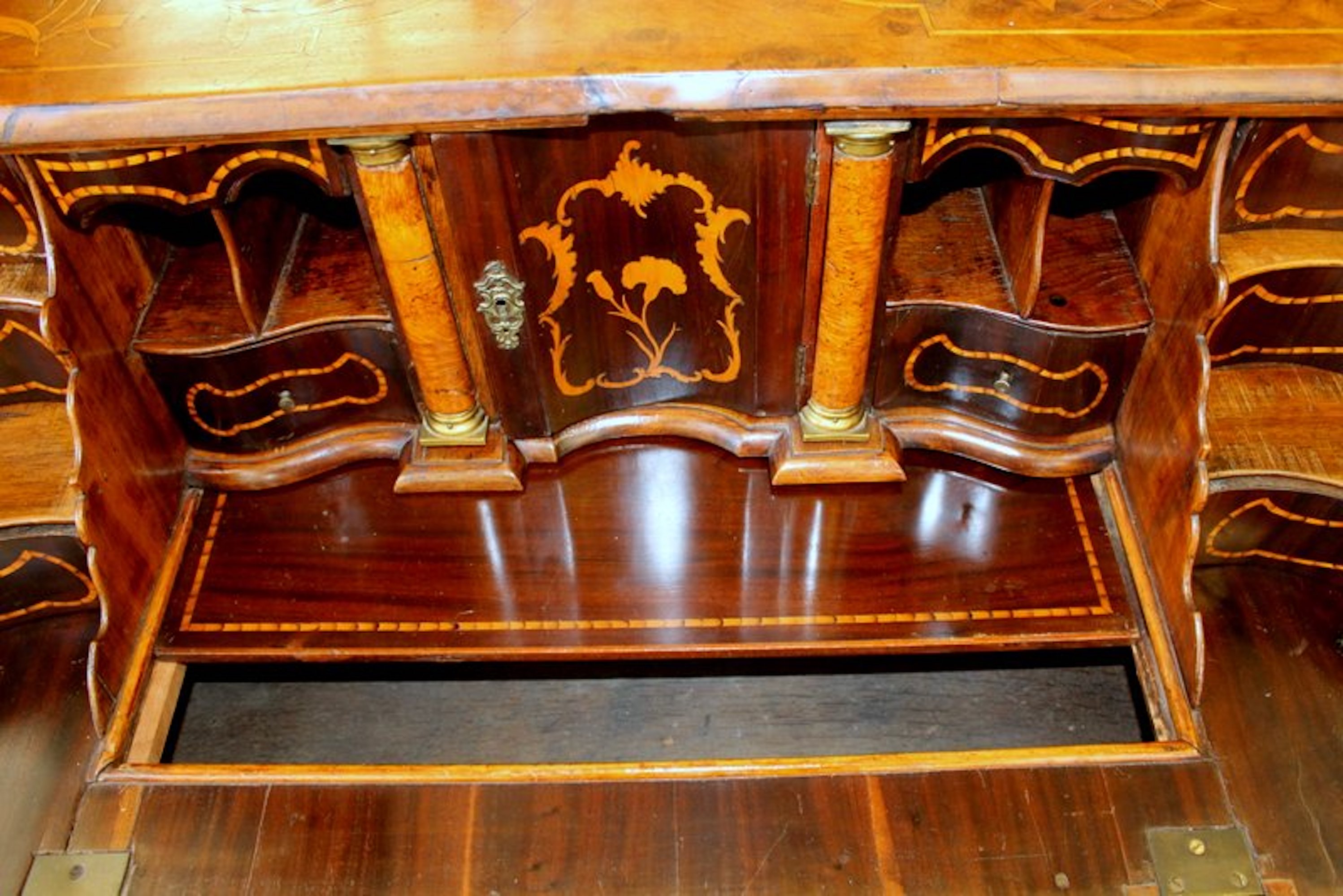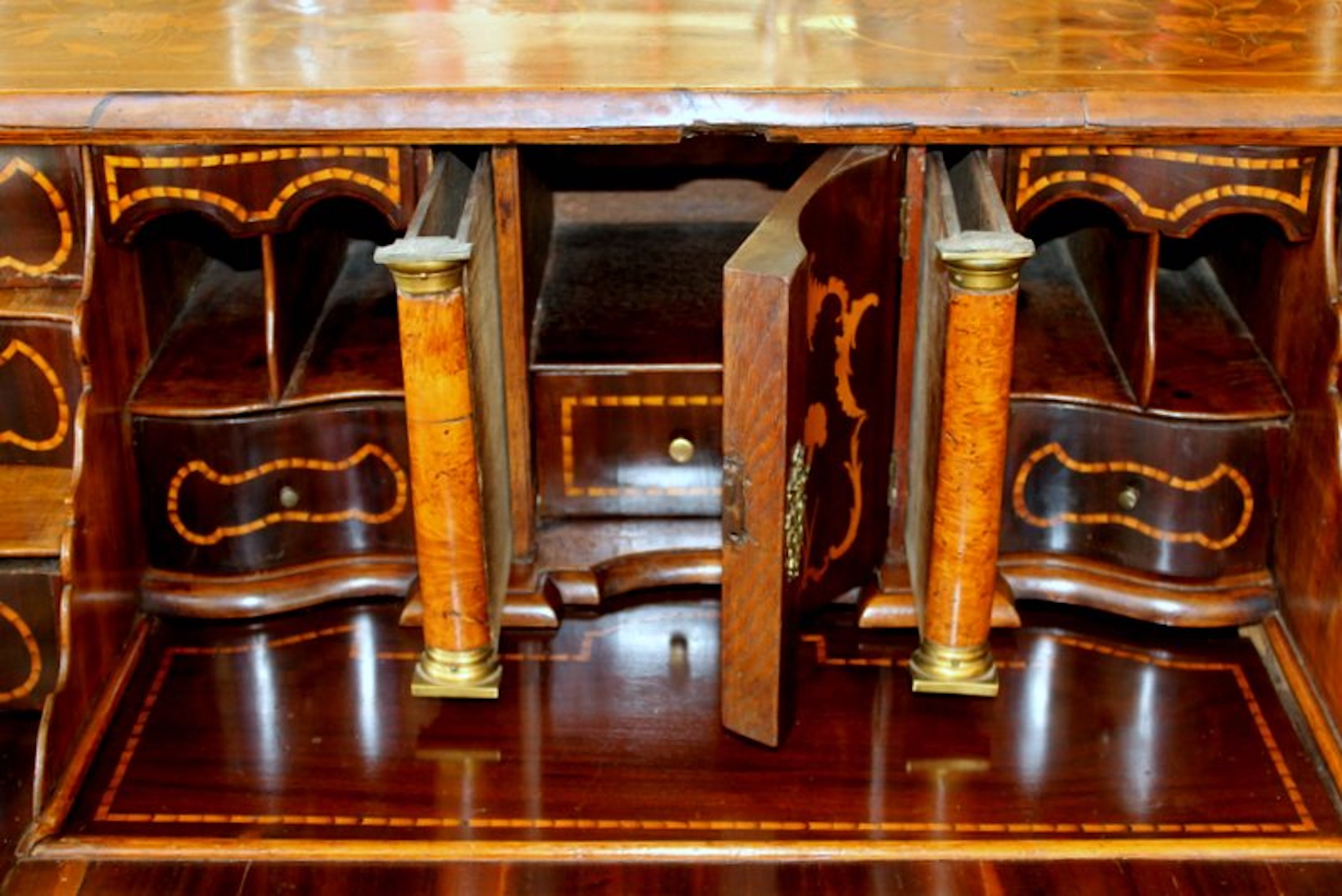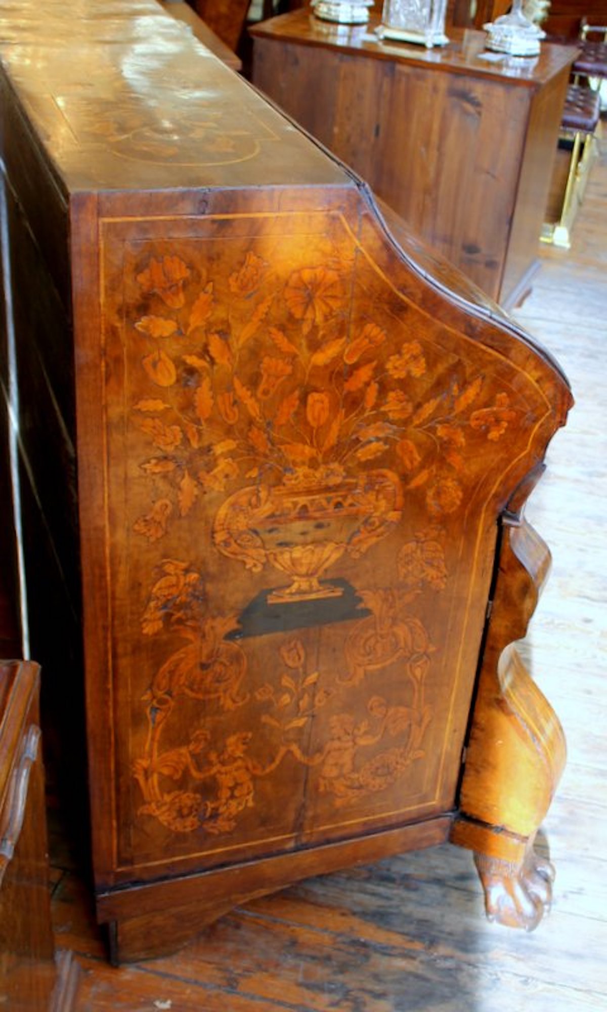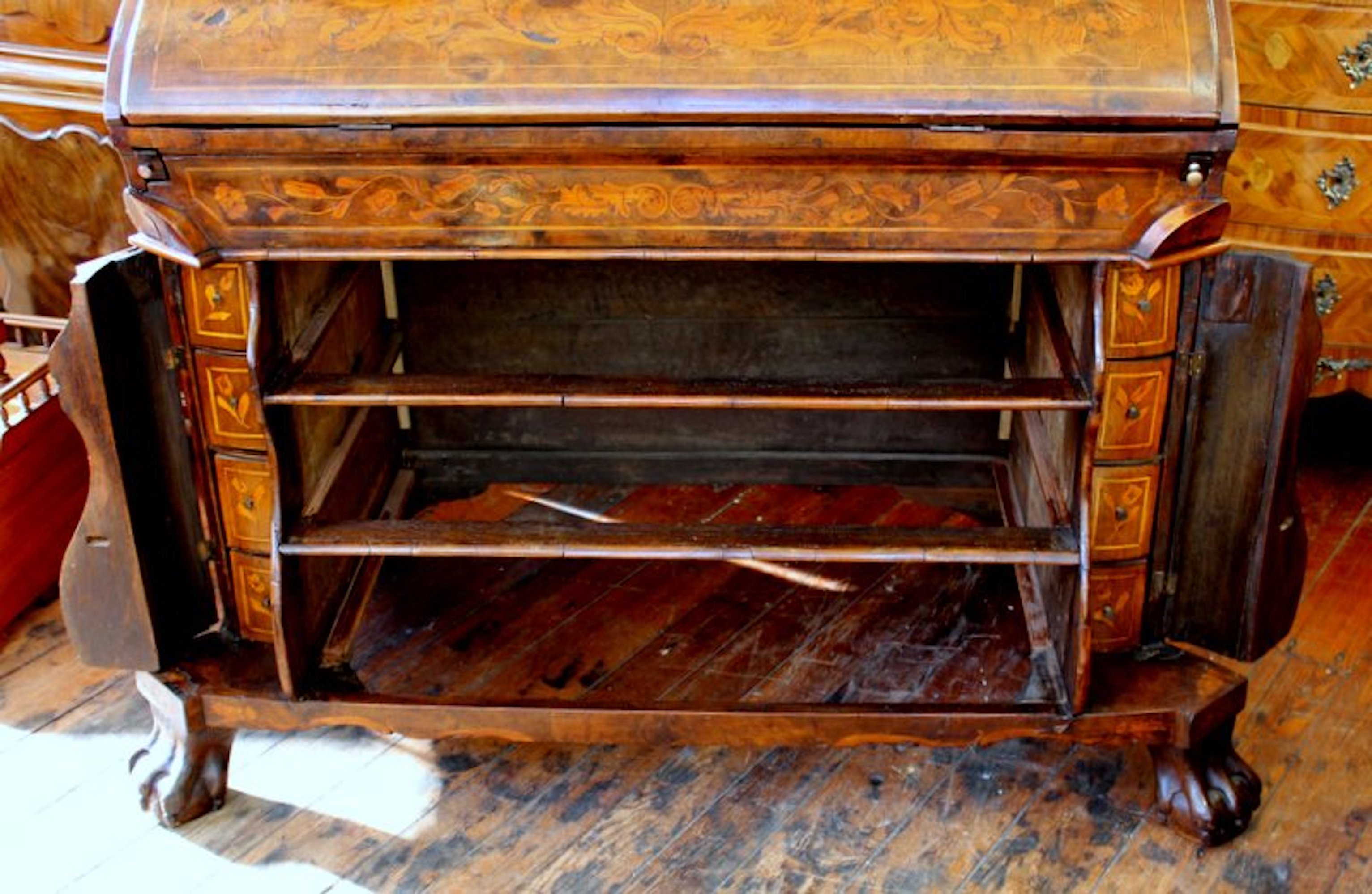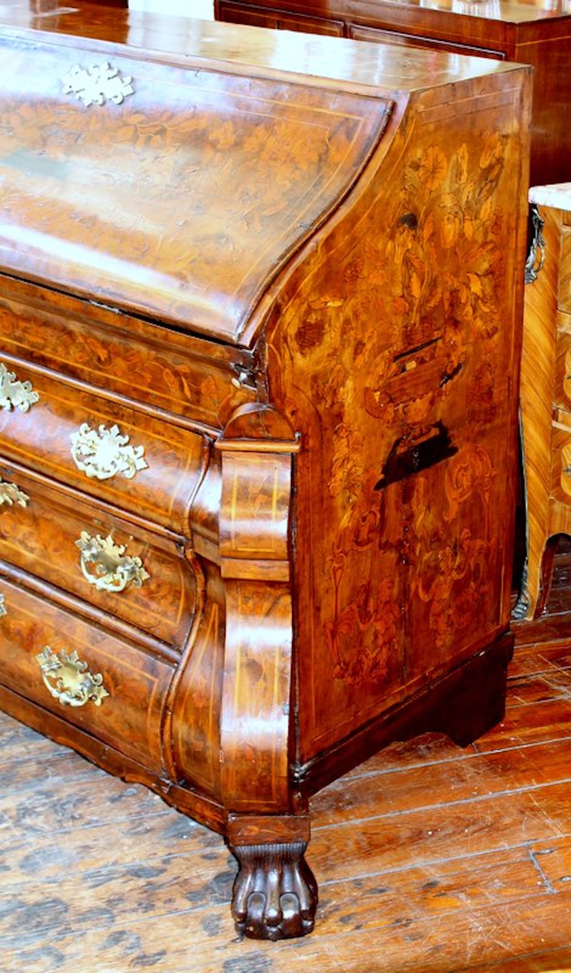 Antique Dutch Marquetry Inlaid Burr Walnut Bombe's Shape Slope-front Bureau - Image 12