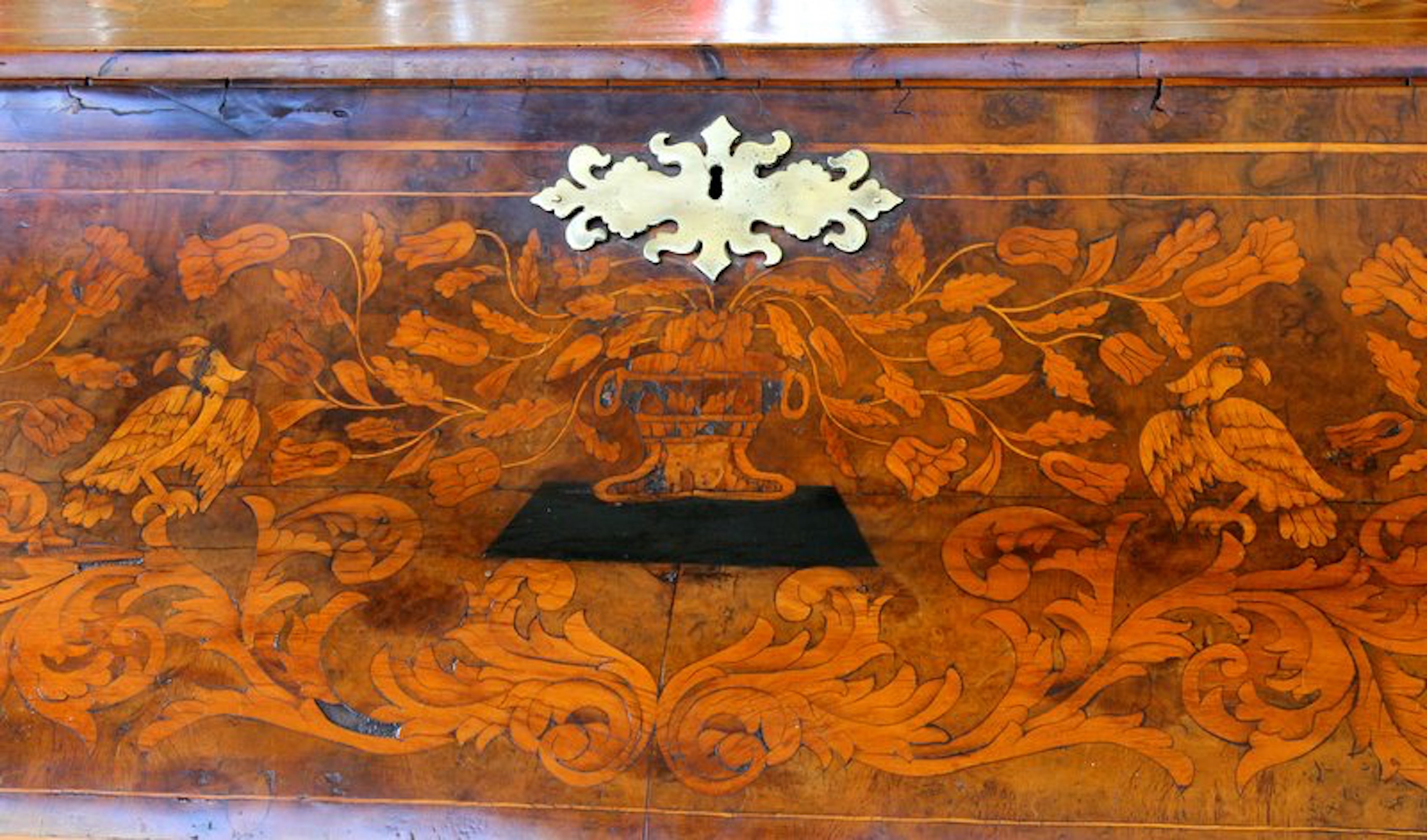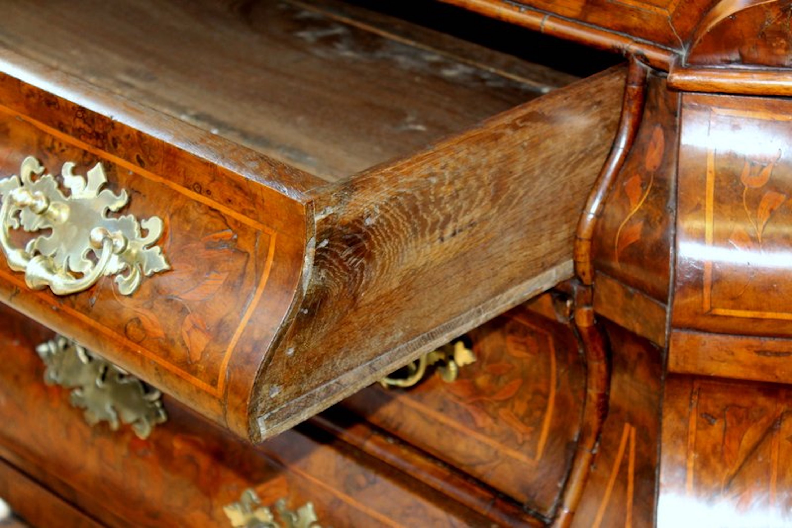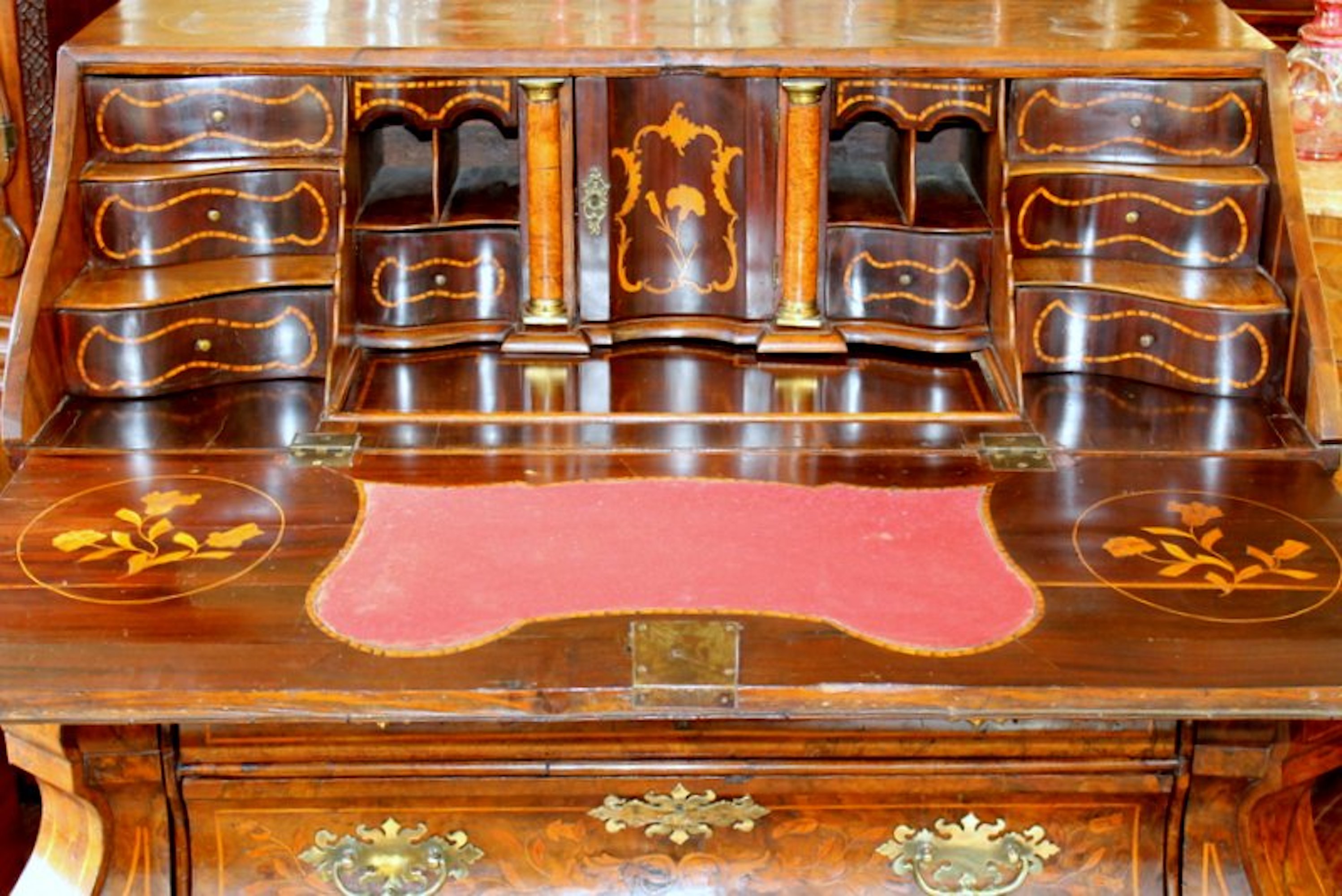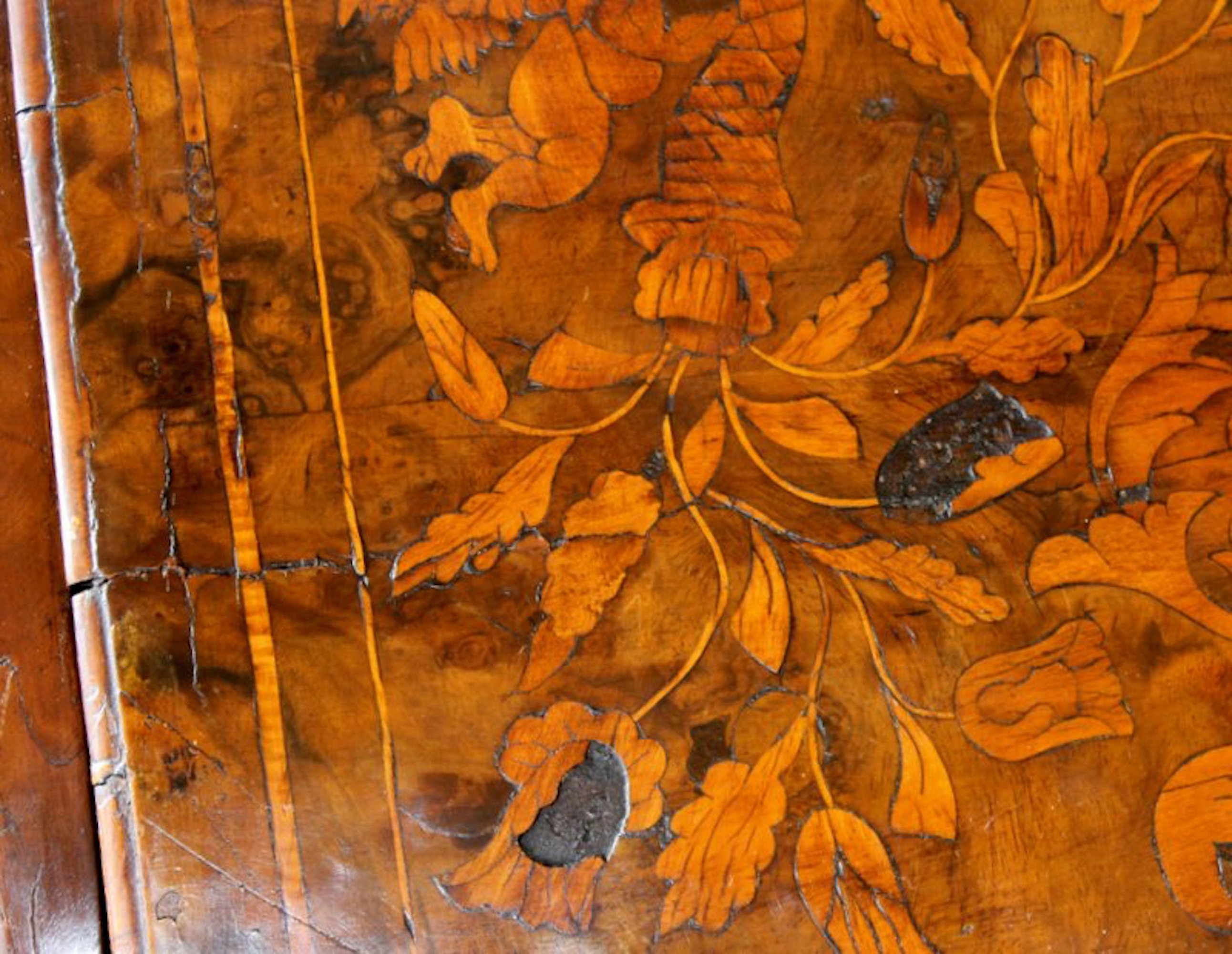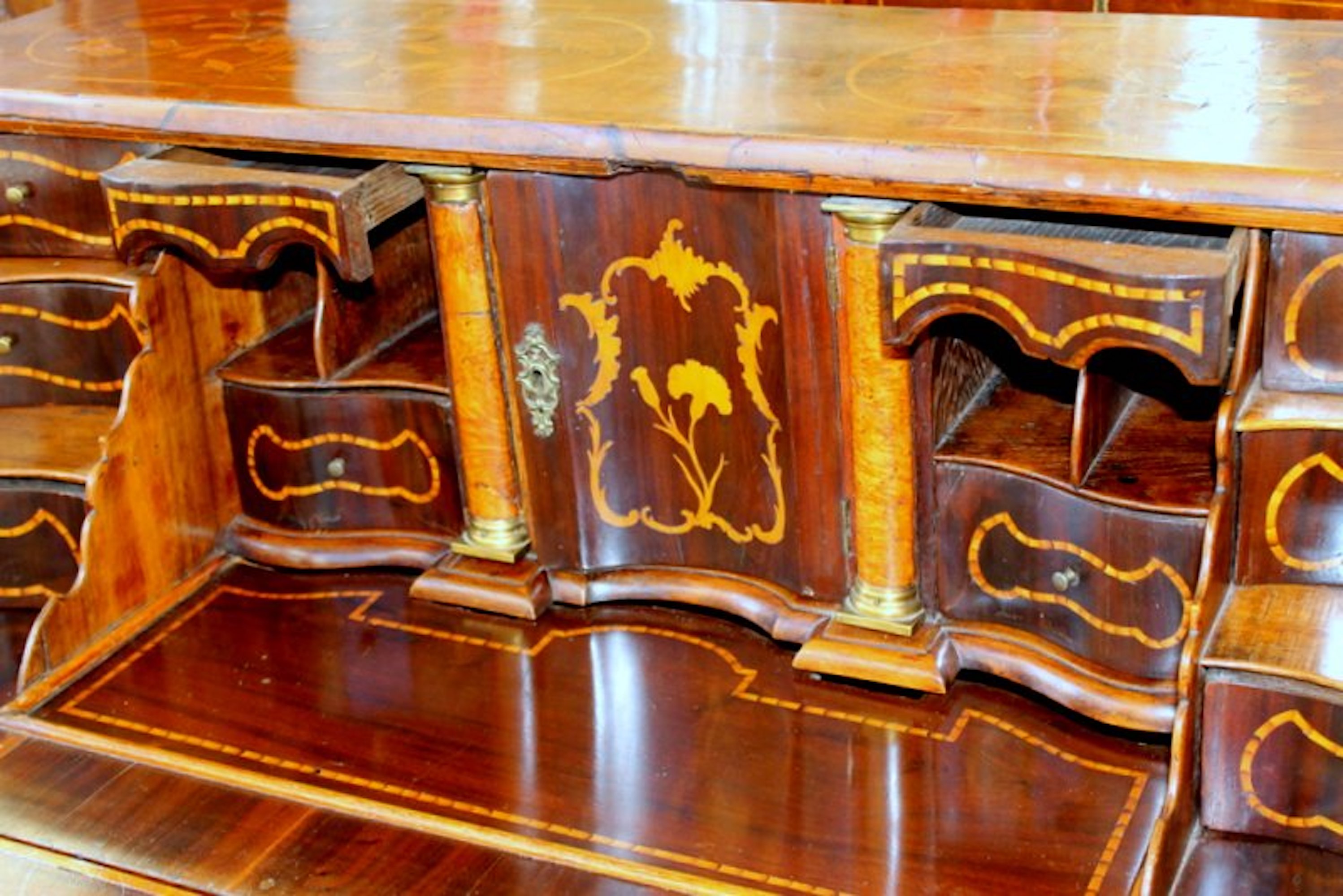 Antique Dutch Marquetry Inlaid Burr Walnut Bombe's Shape Slope-front Bureau - Image 12