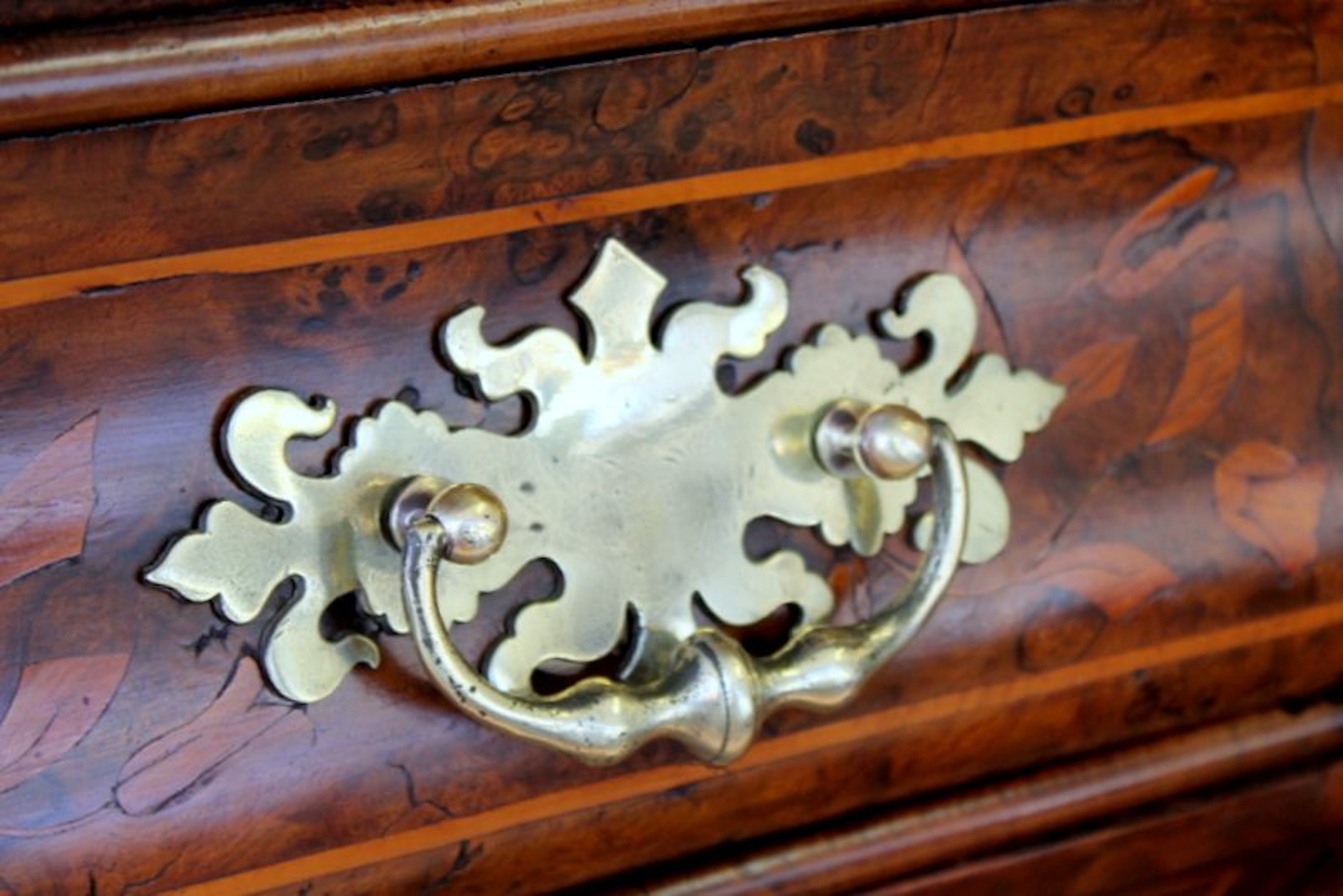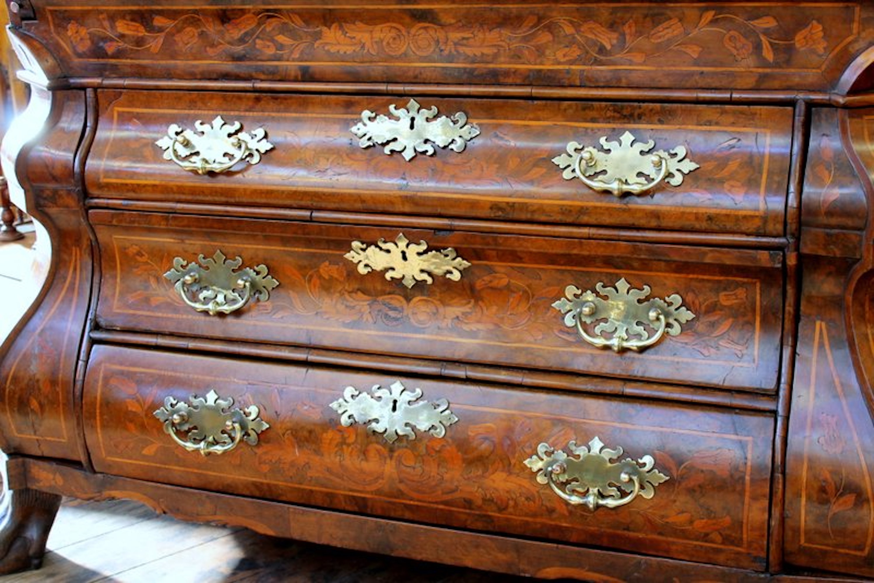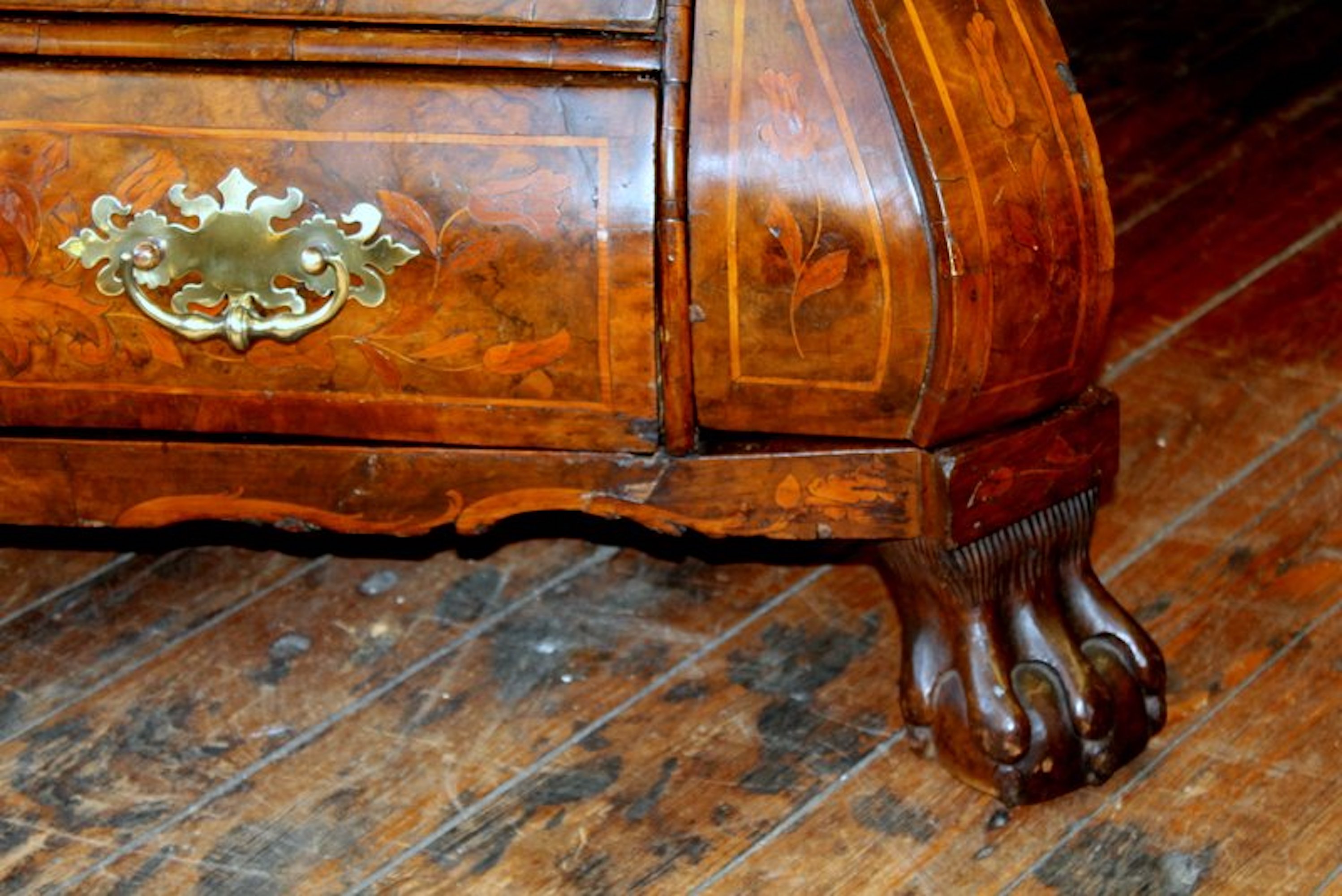 Antique Dutch Marquetry Inlaid Burr Walnut Bombe's Shape Slope-front Bureau - Image 7