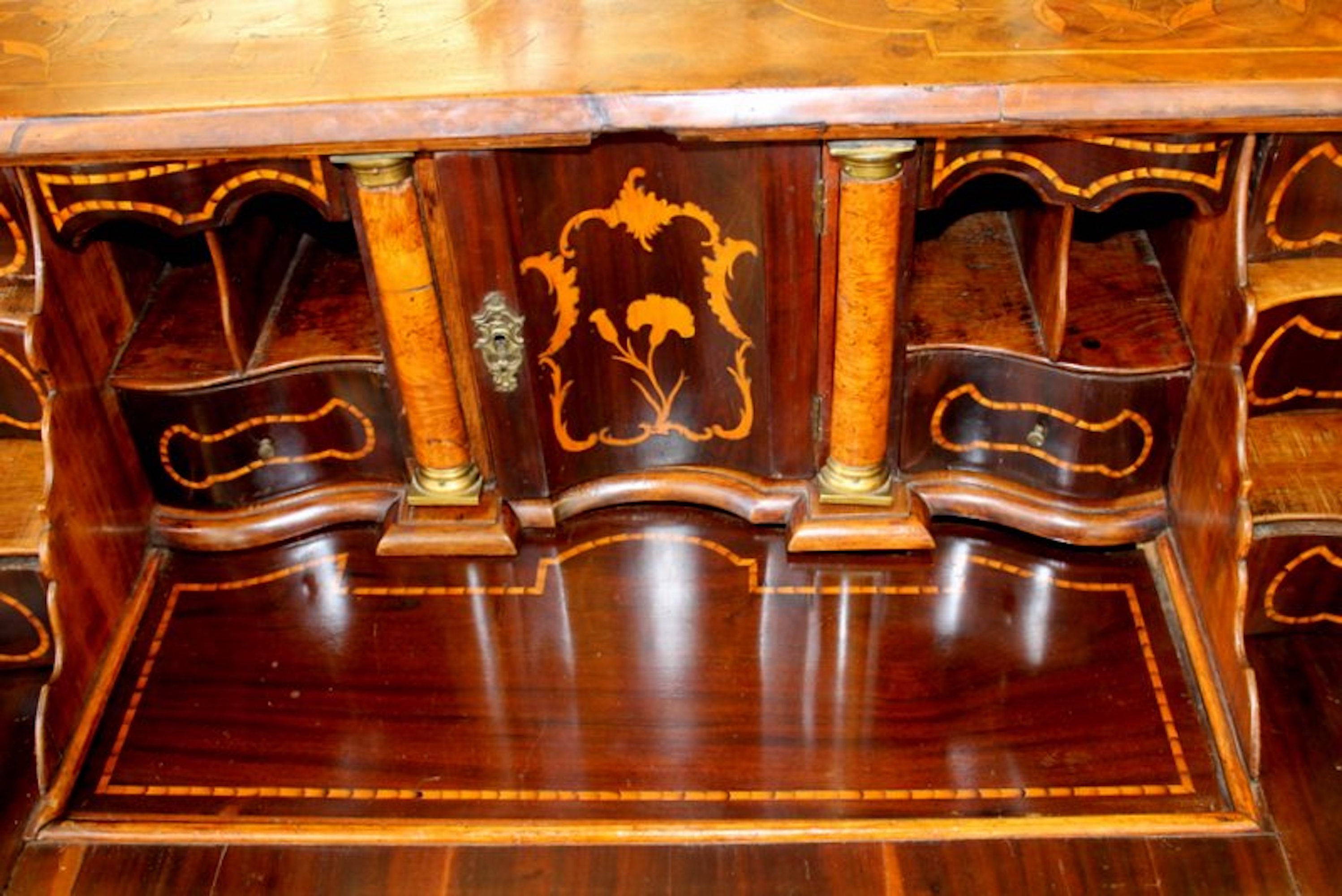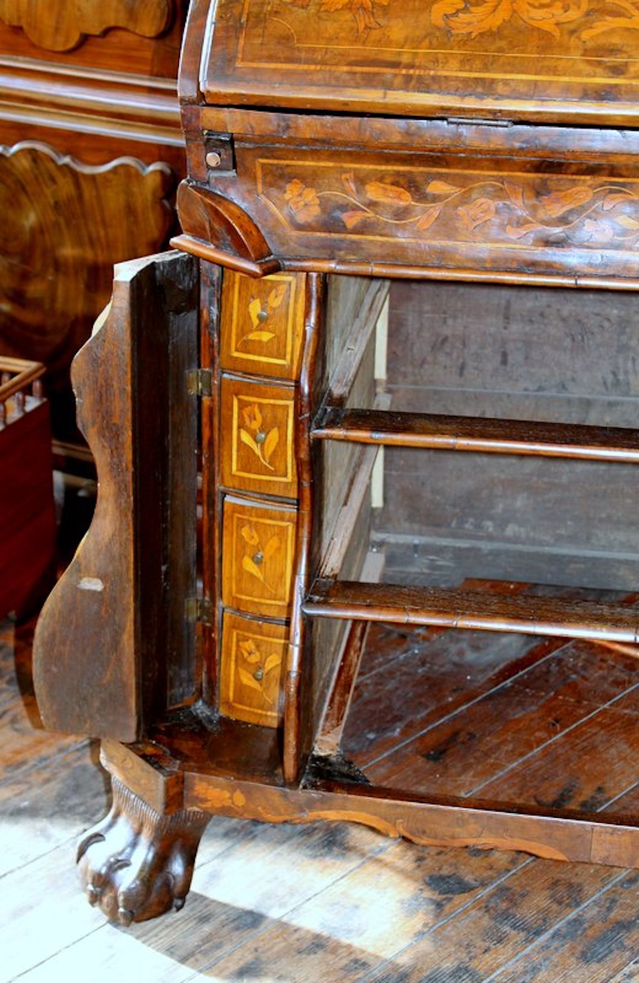 Antique Dutch Marquetry Inlaid Burr Walnut Bombe's Shape Slope-front Bureau - Image 19