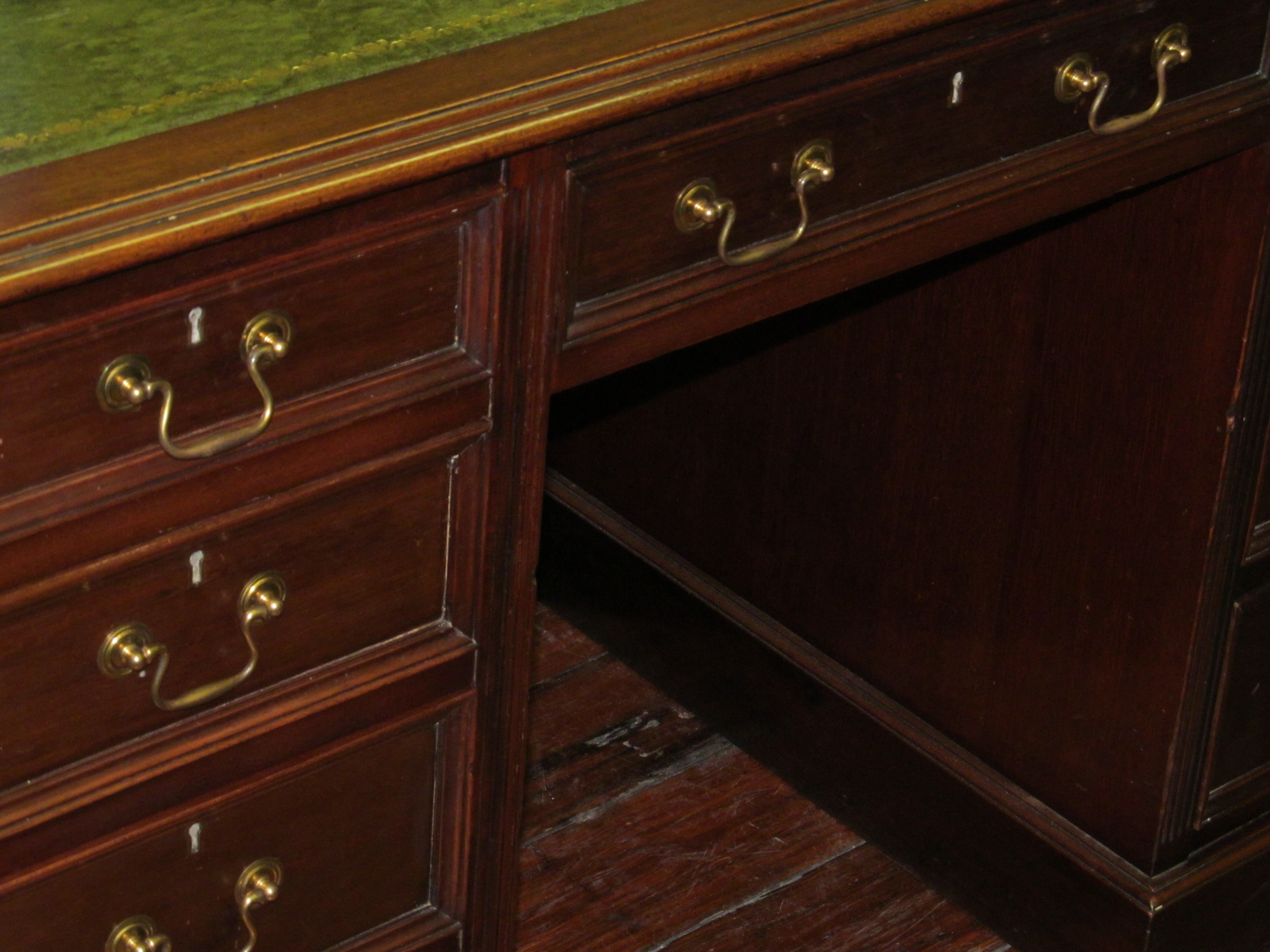 Fine Antique English Mahogany Chippendale Style Kneehole Desk.