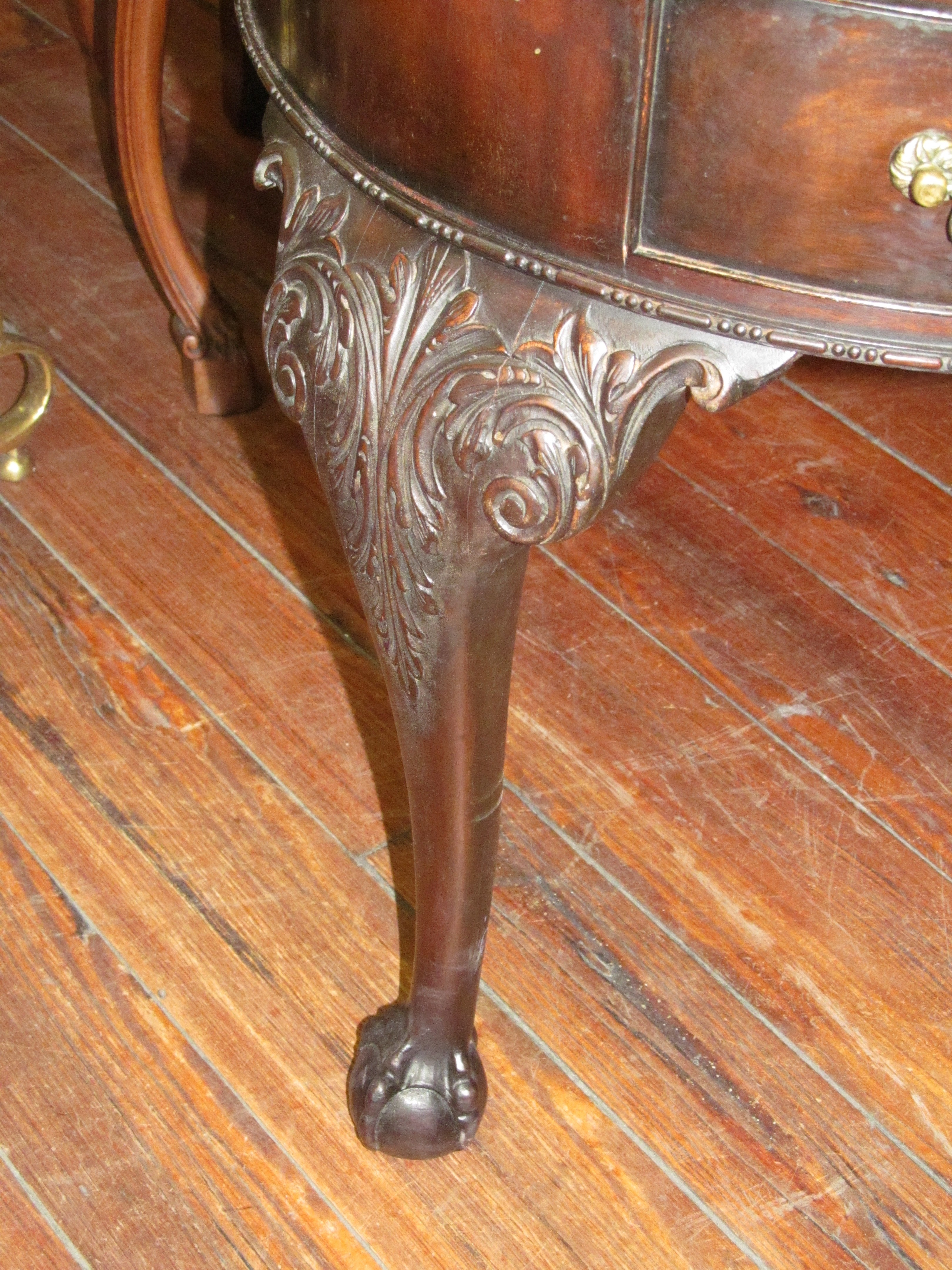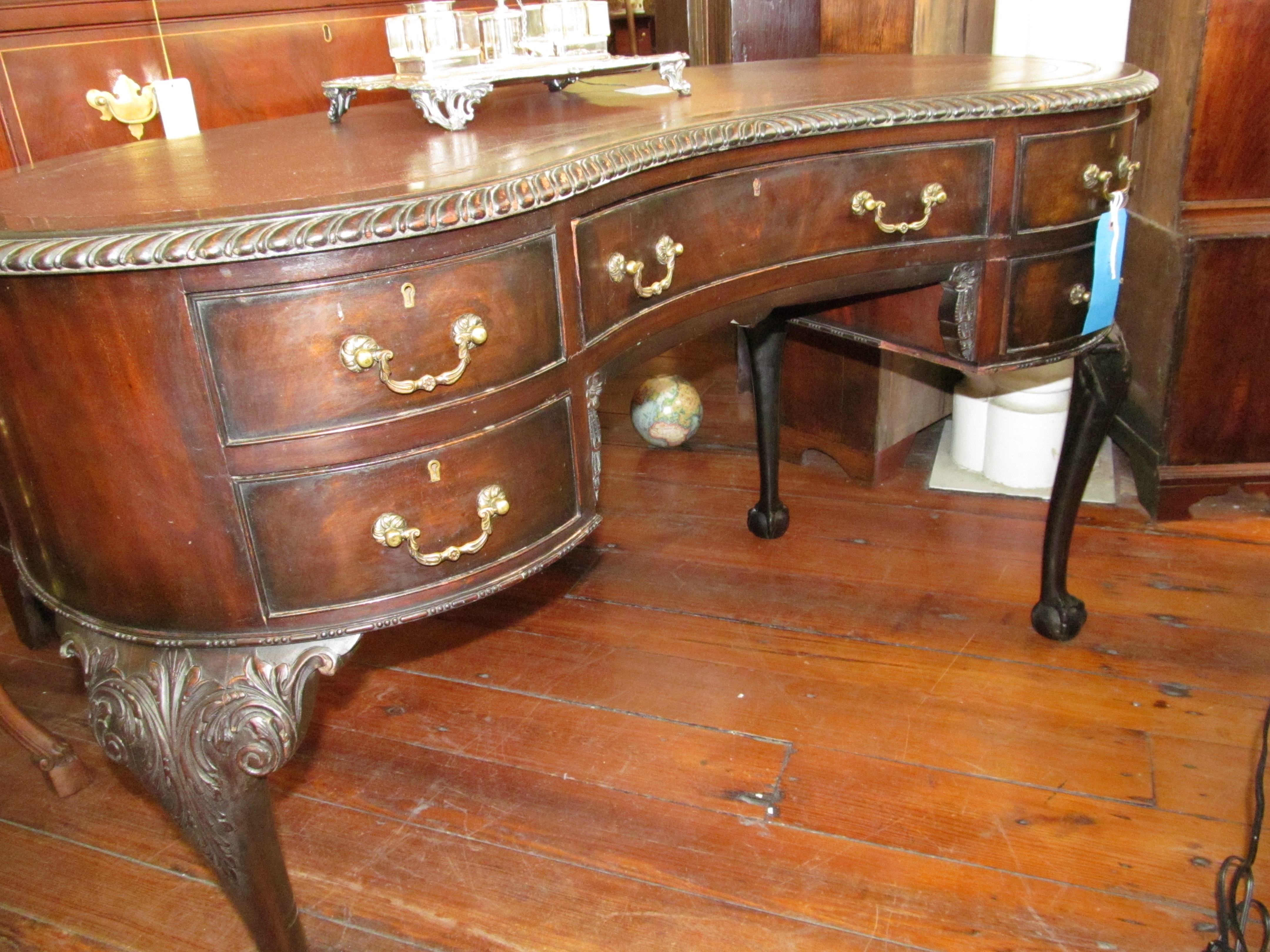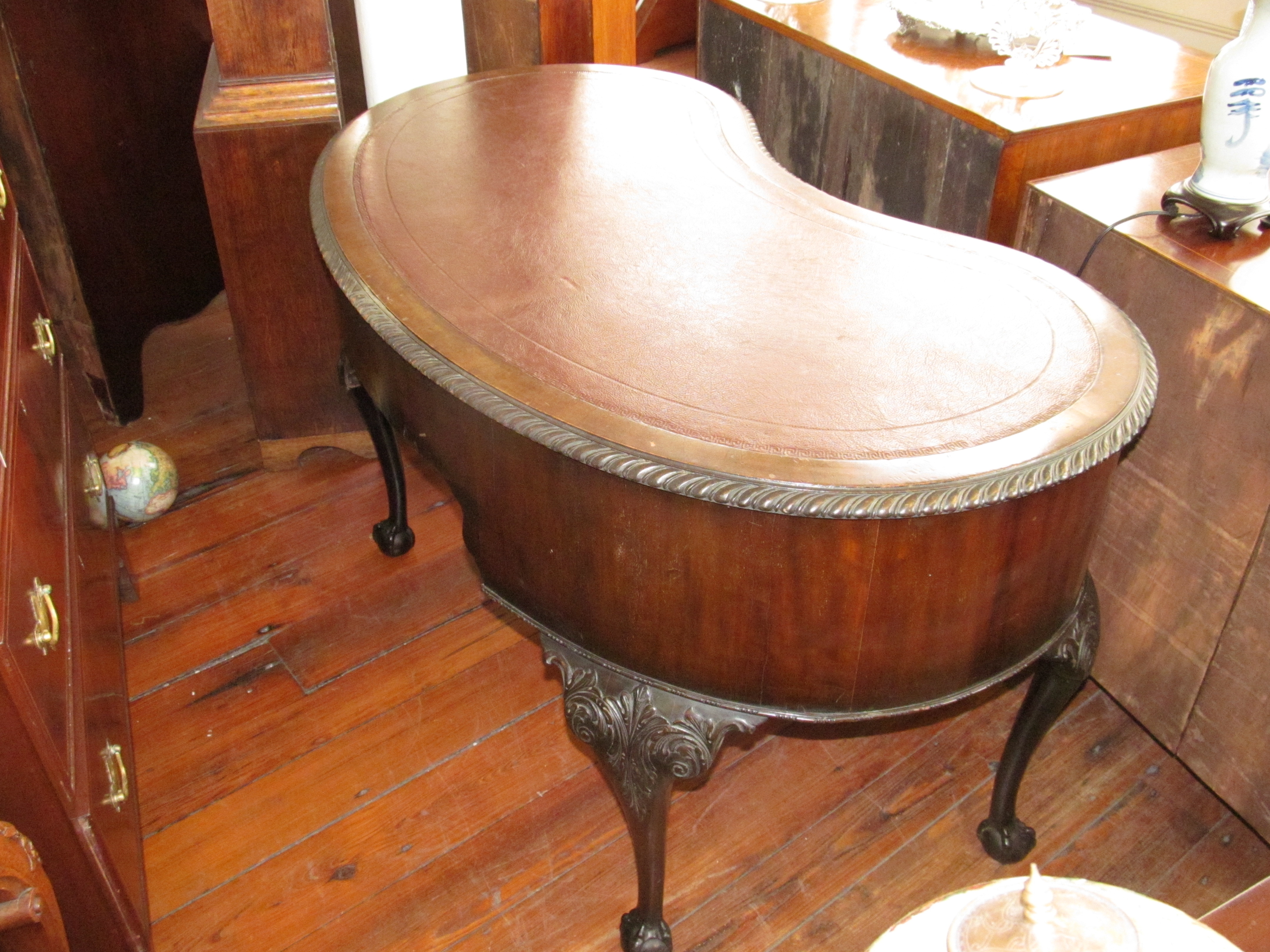 You are here: Home / All Inventory / Old English Carved Mahogany Chippendale Style Kidney Shape Desk