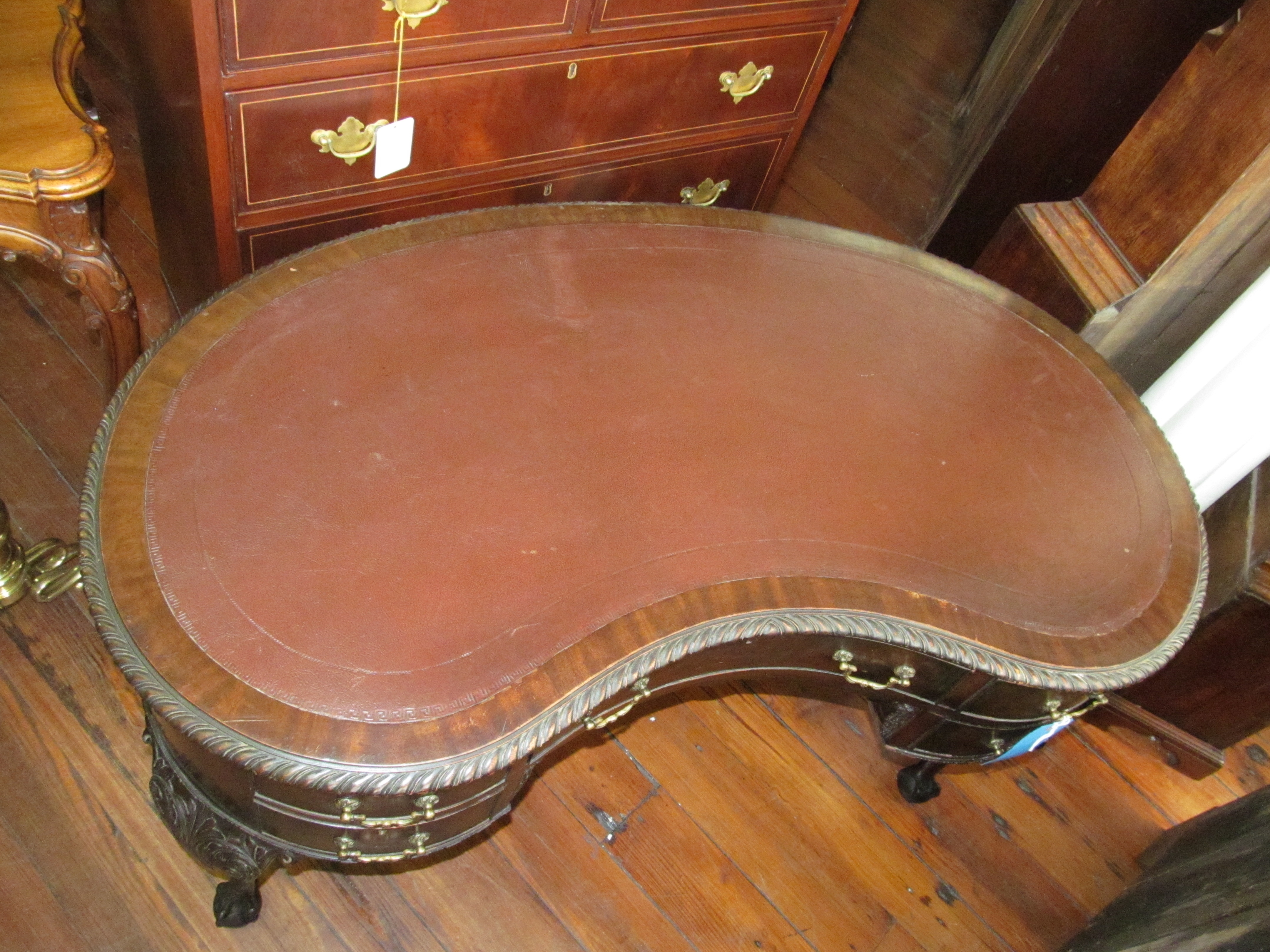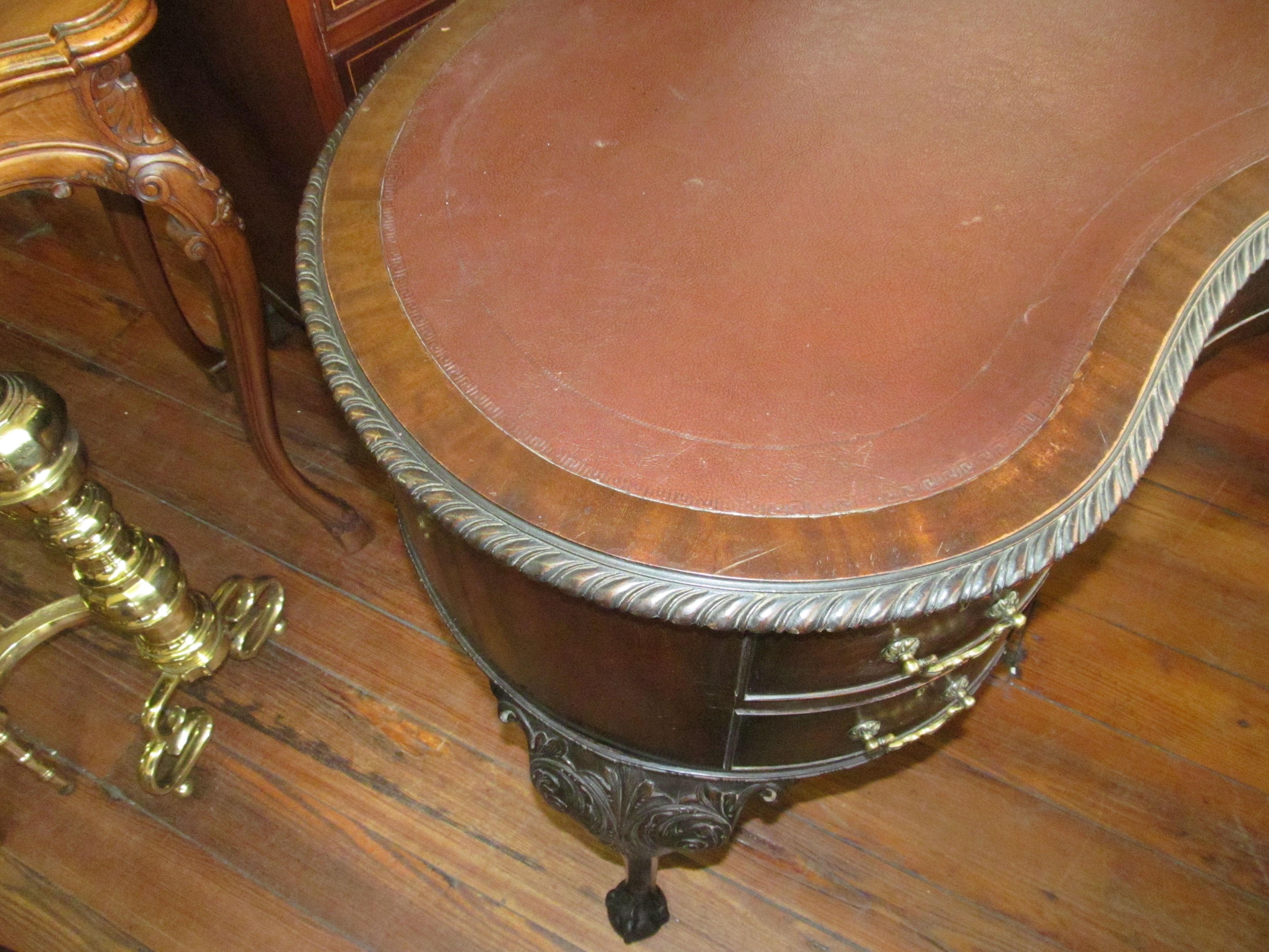 SKU: 7125-115 Categories: All Inventory, Desks, Furniture Tags: Chippendale, Desk, english, Kidney, Mahogany, Old