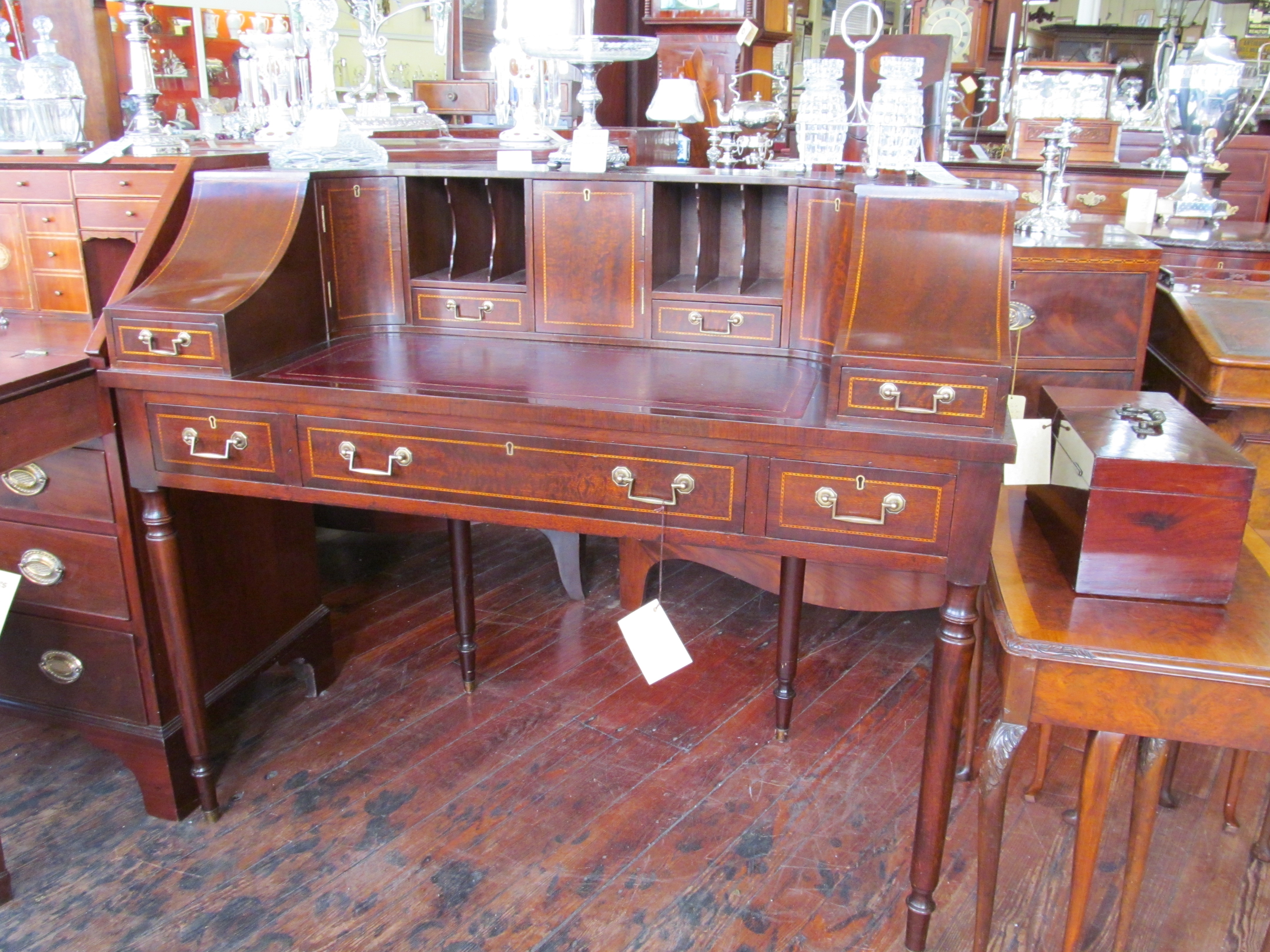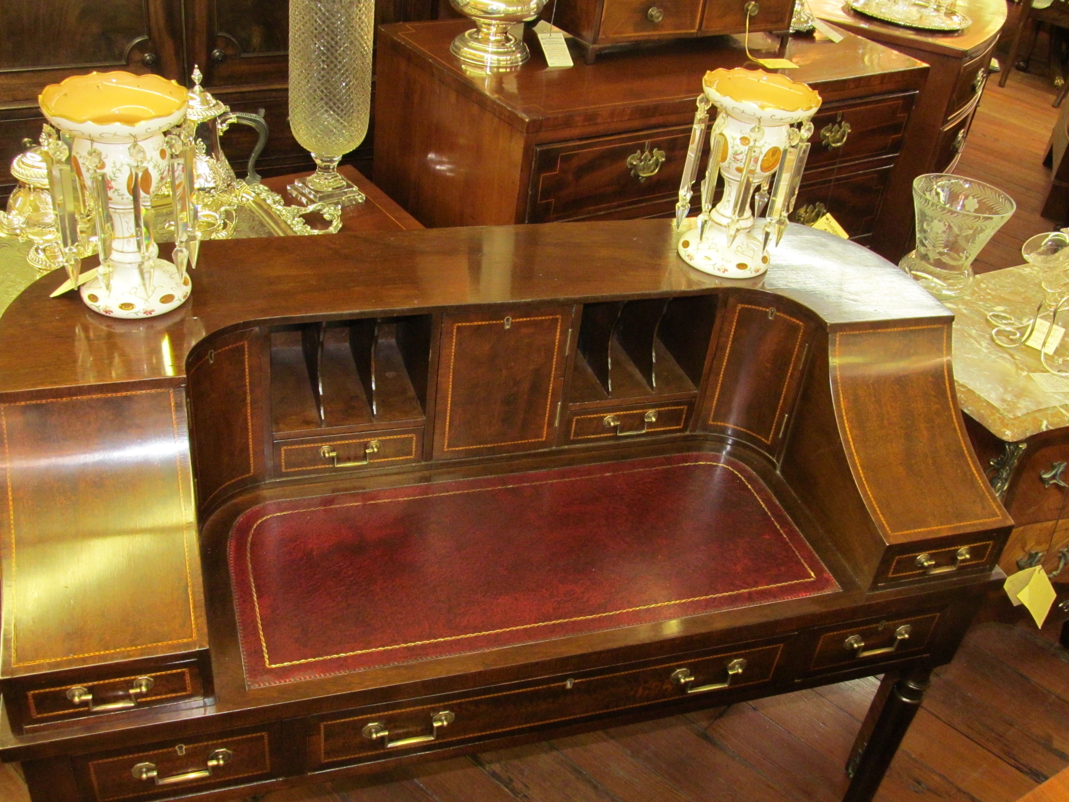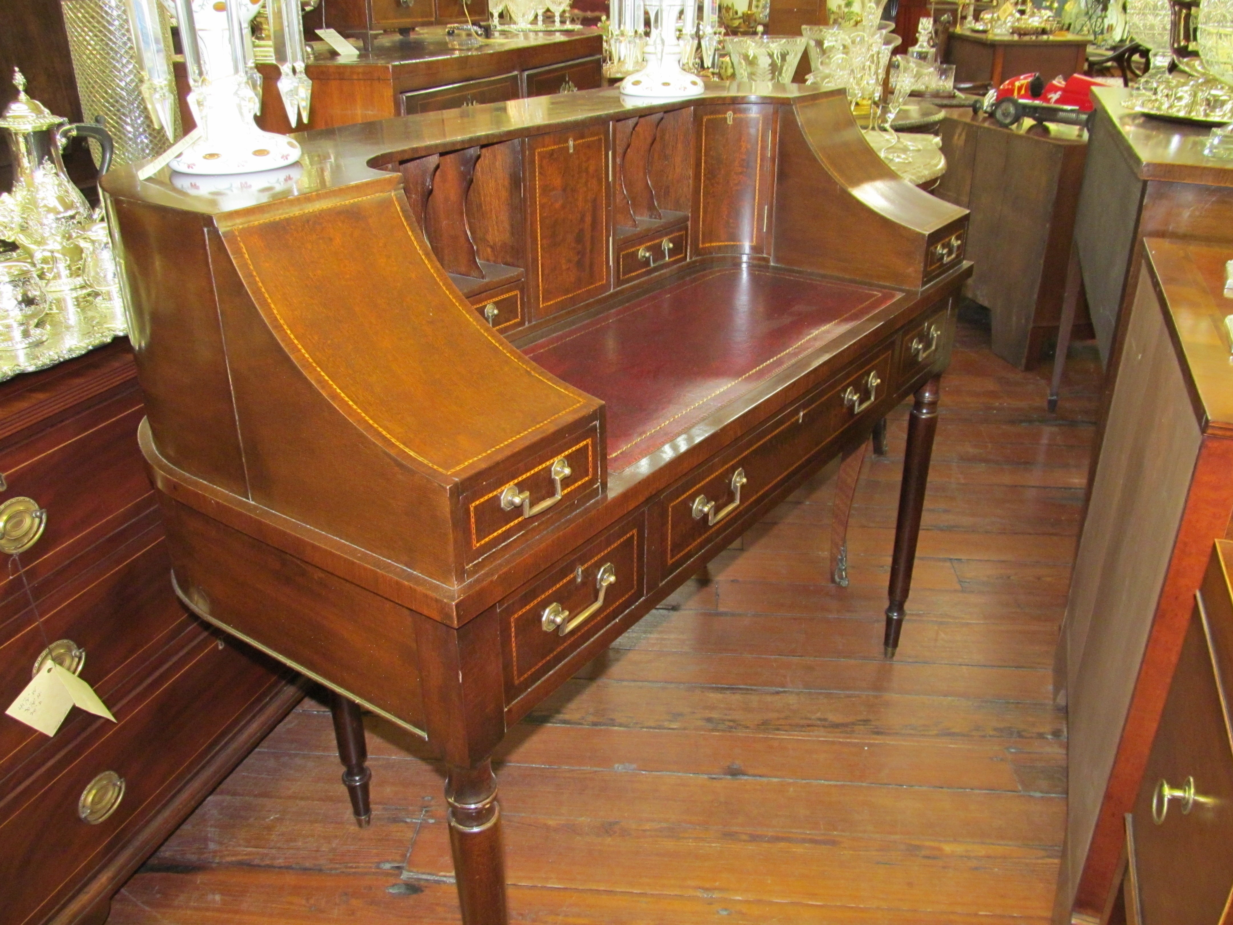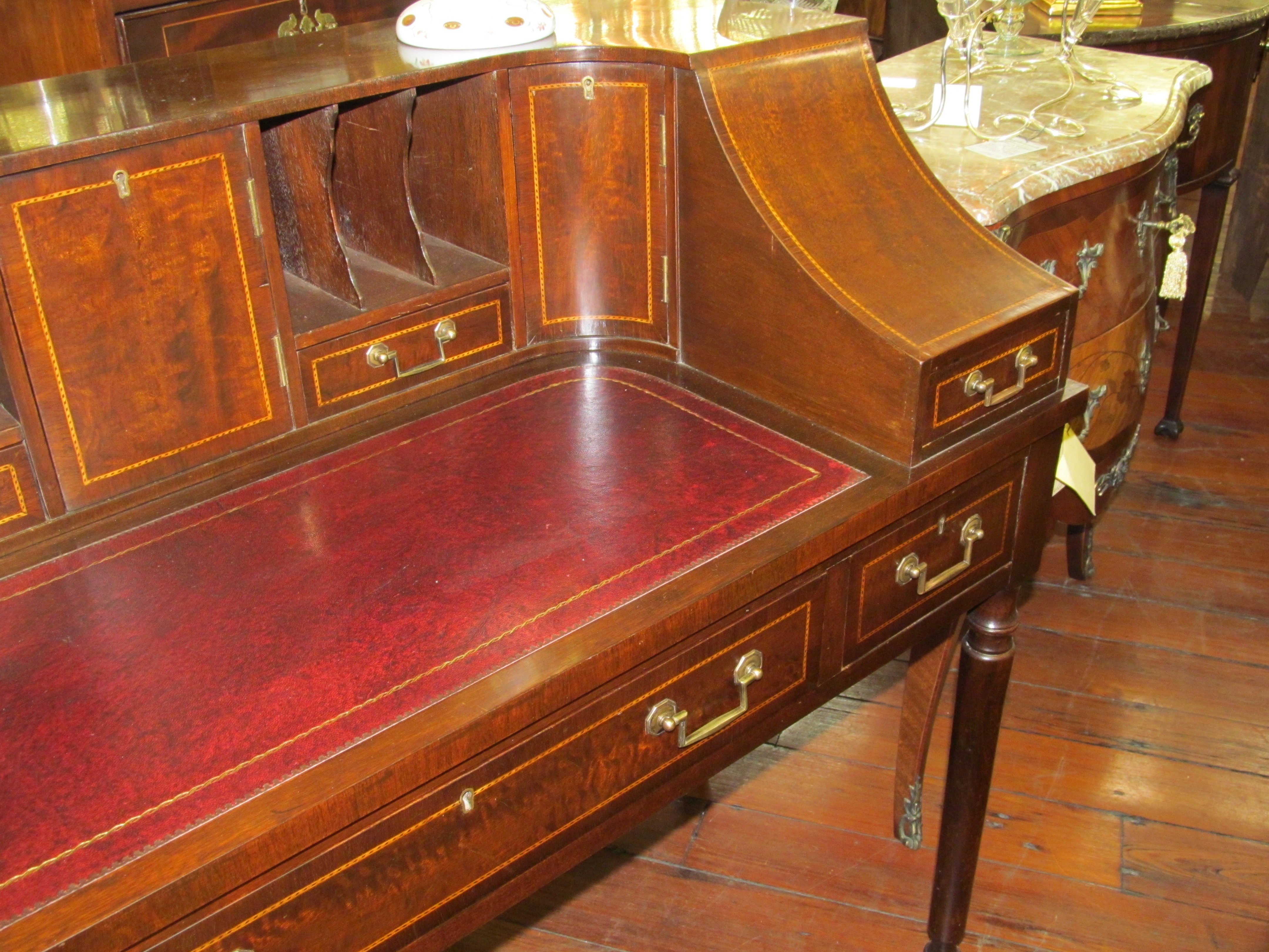 Fine and Rare Old English Inlaid Solid Mahogany Sheraton Style “Carlton House” Writing Desk.