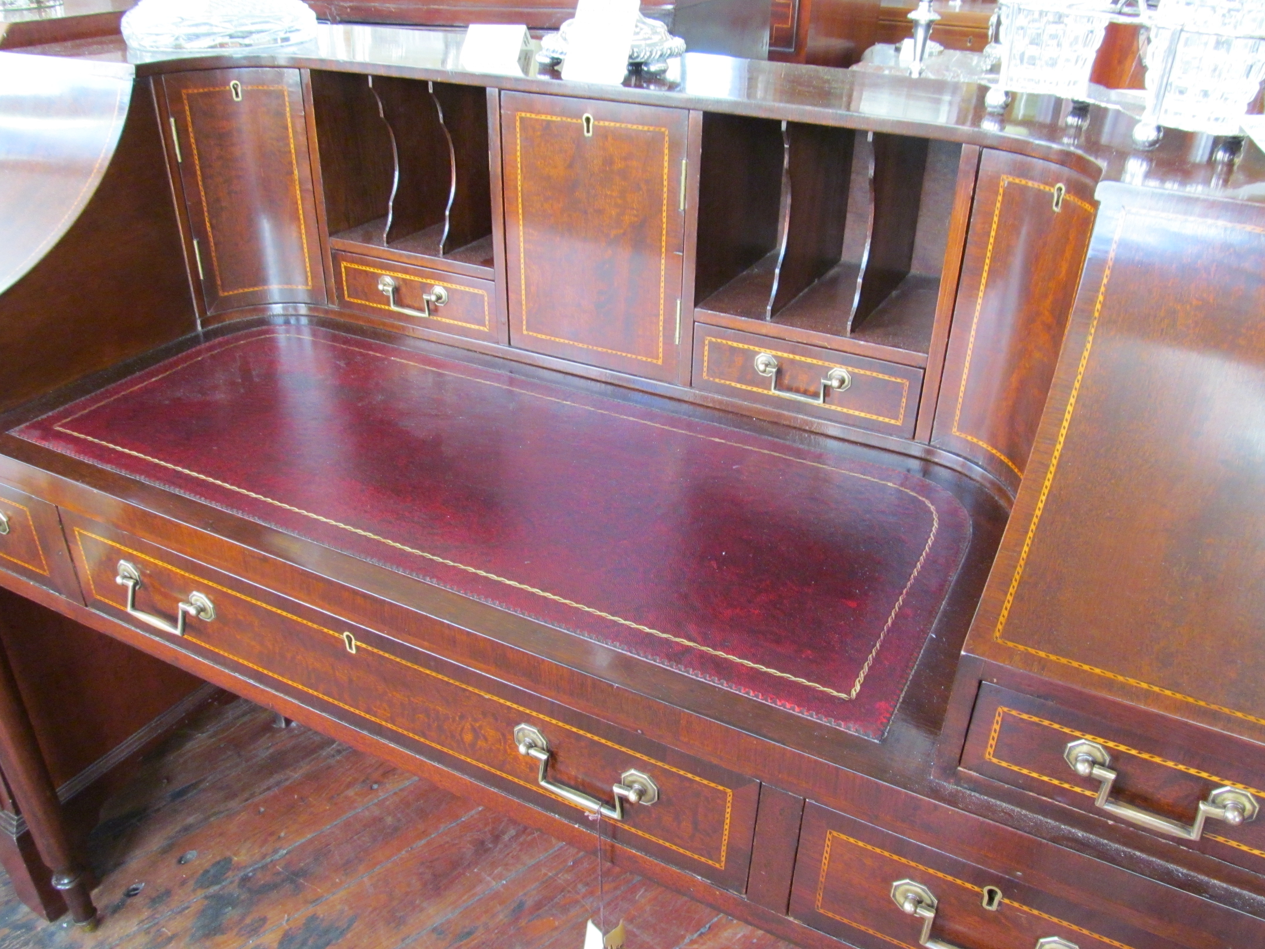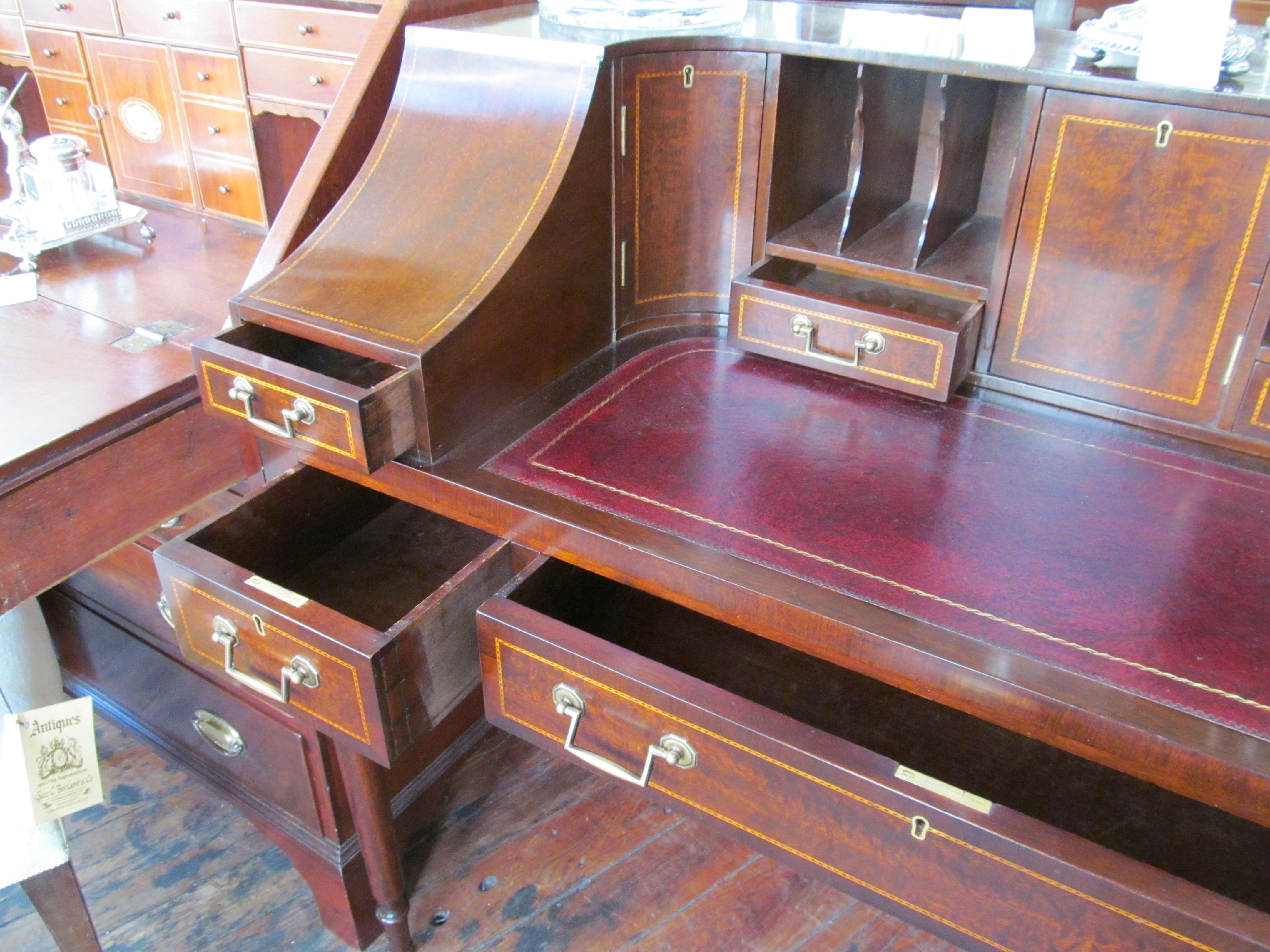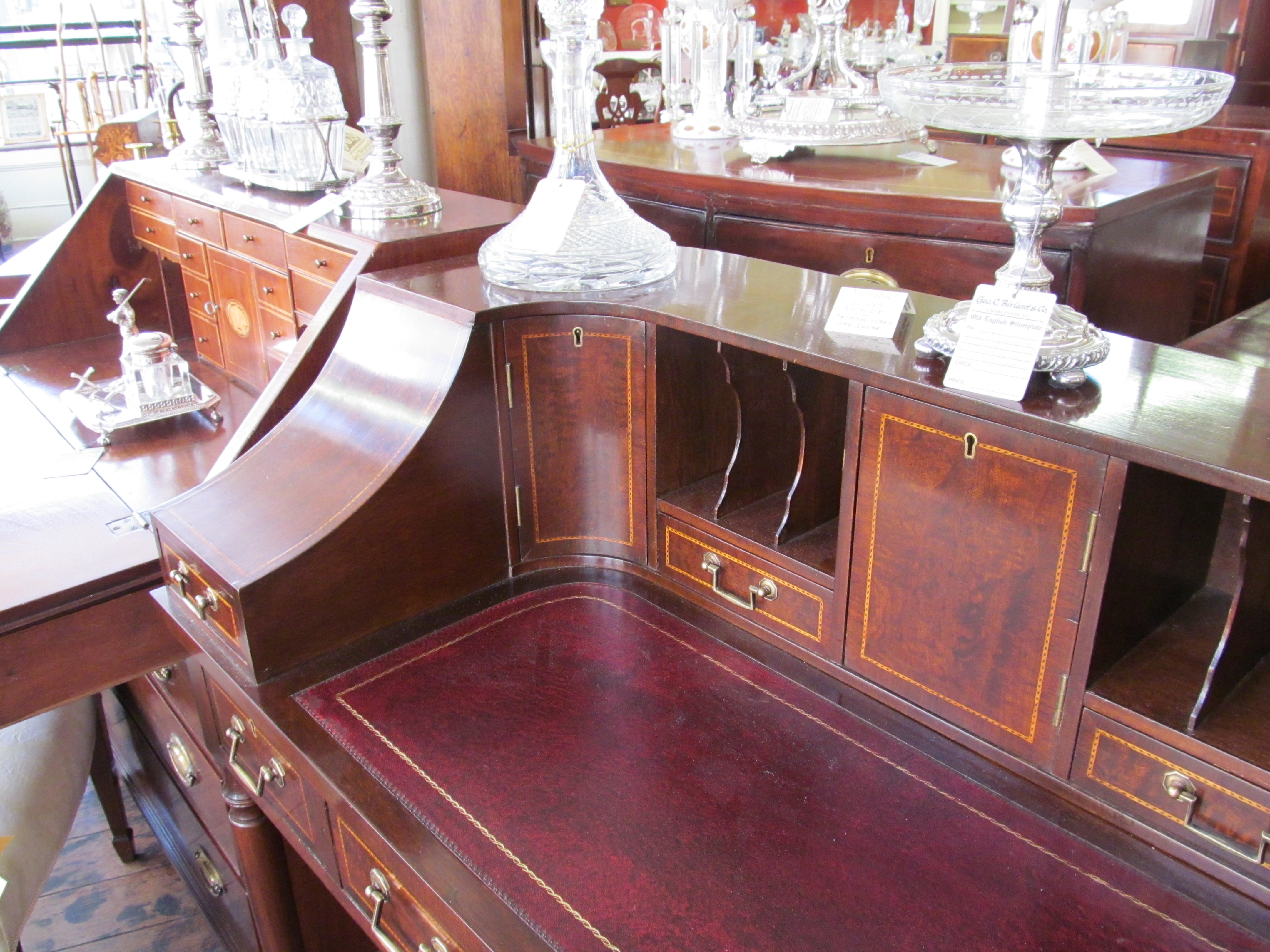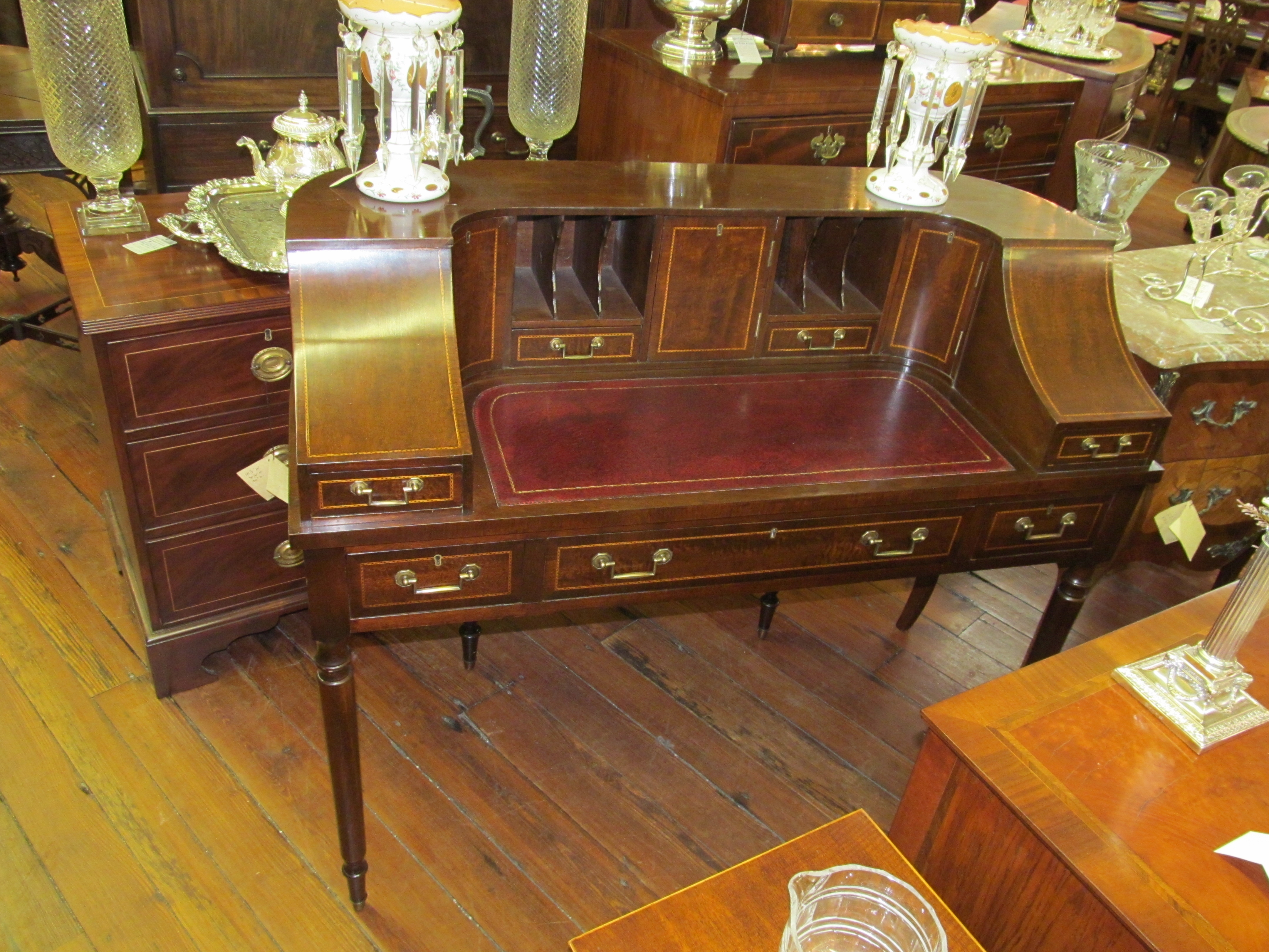 Fine and Rare Old English Inlaid Solid Mahogany Sheraton Style “Carlton House” Writing Desk.