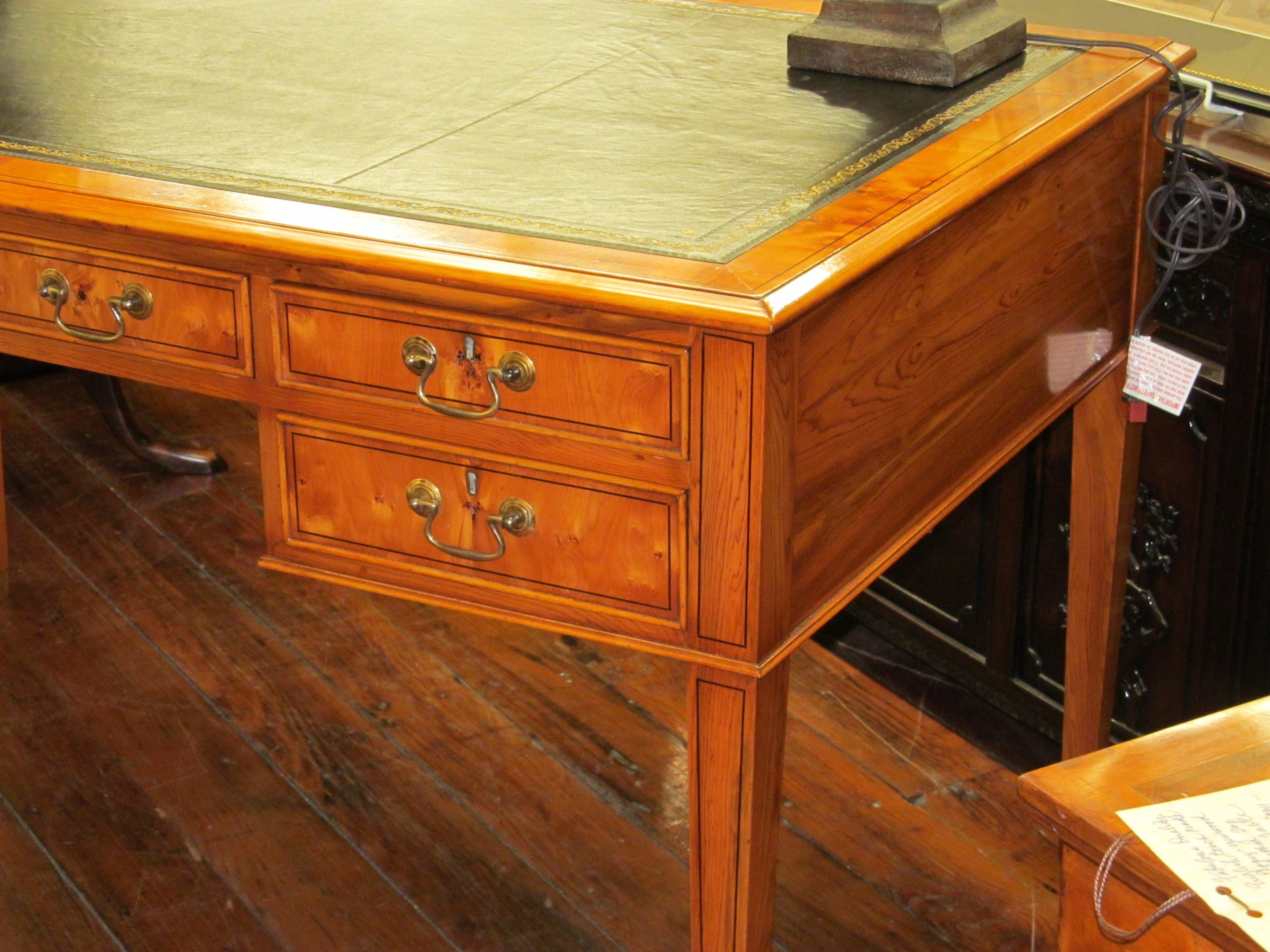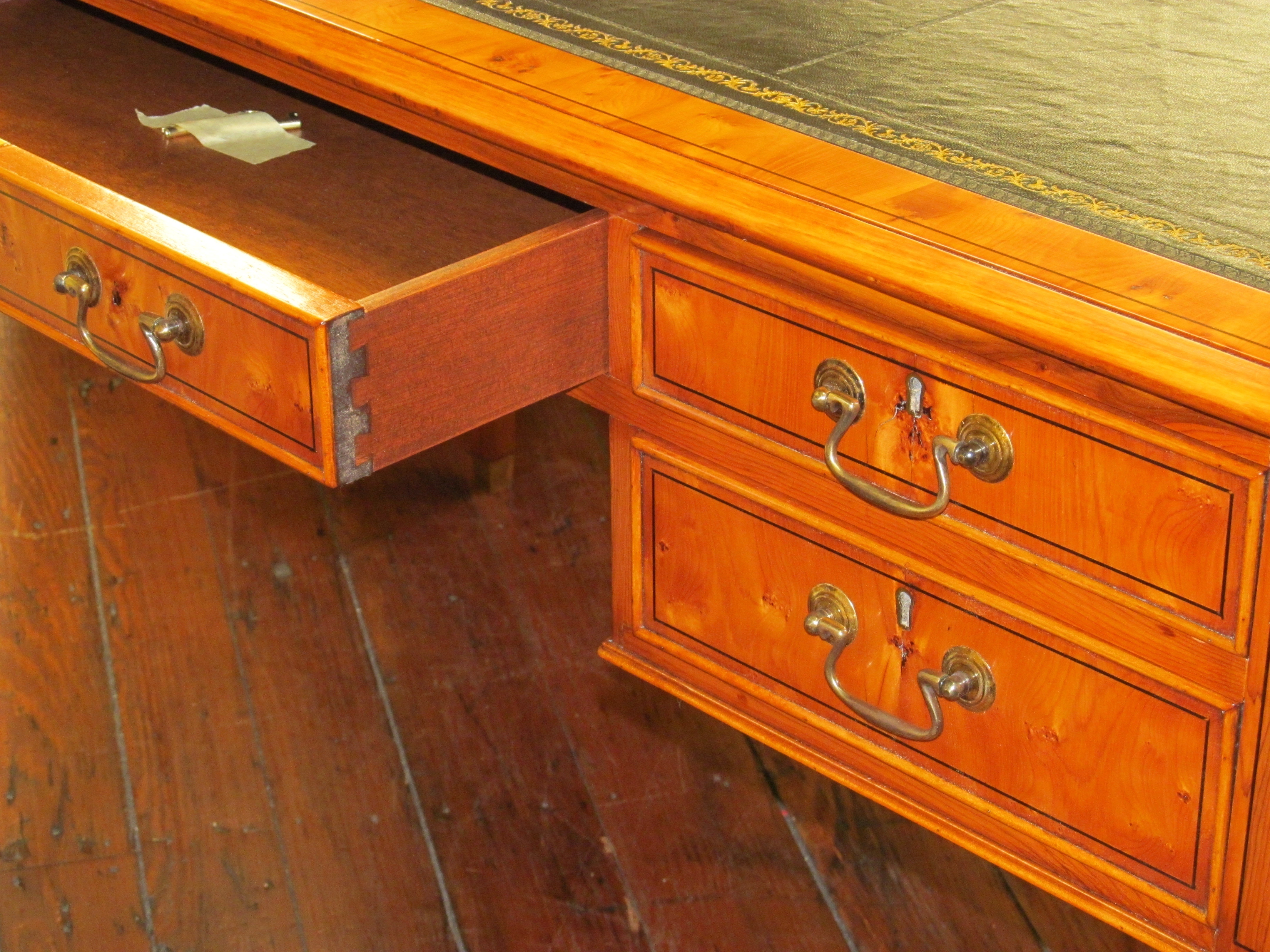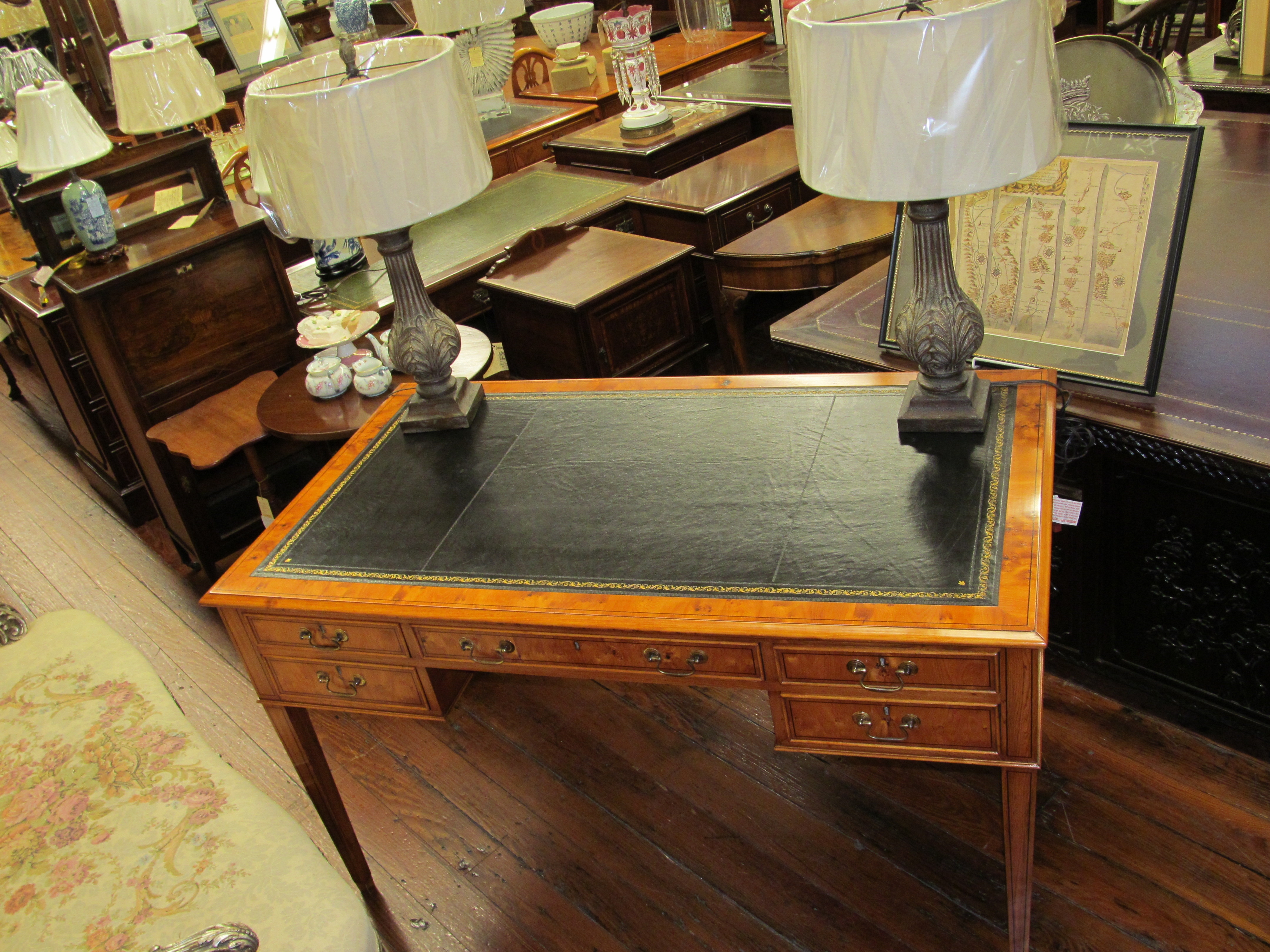 Fabulous Quality English Bench Made Pippy Yew-wood Leather Top Writing Table