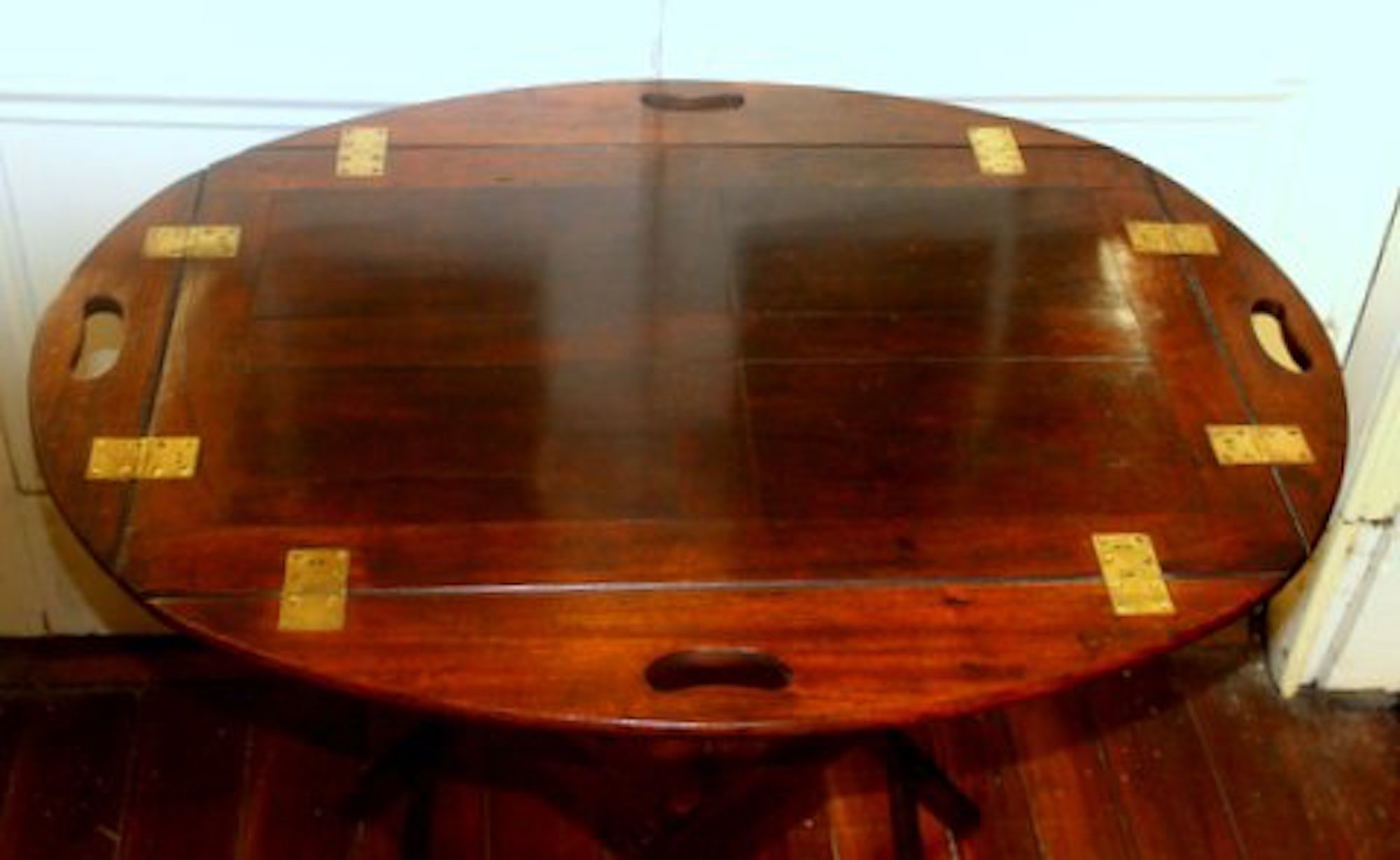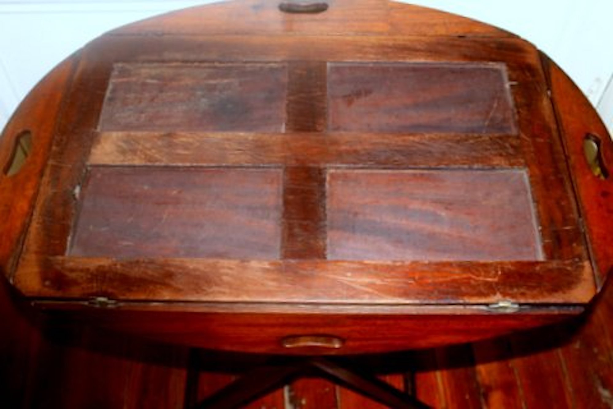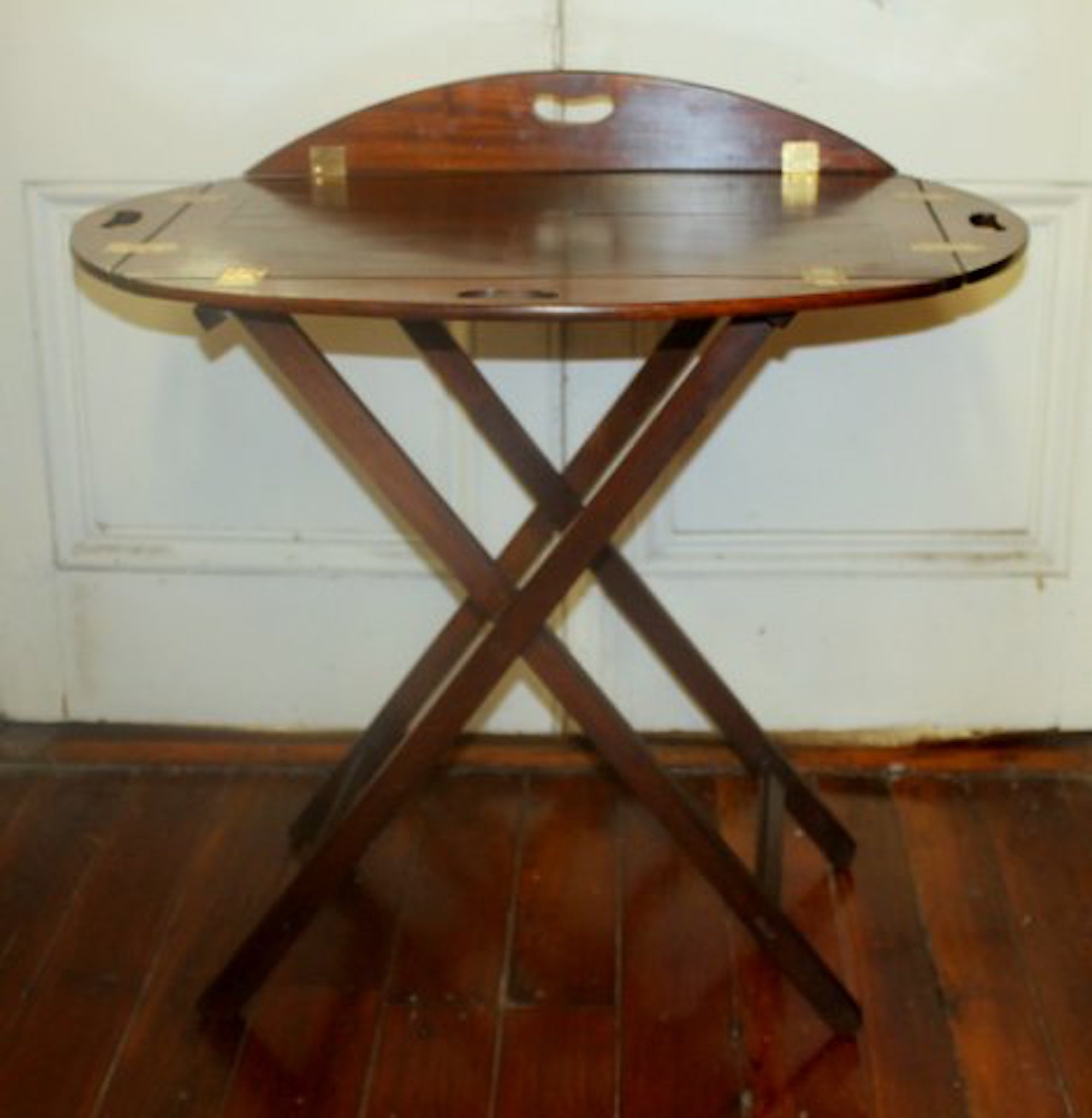 Fine and Rare Antique English Mahogany Butler’s Tray and Stand with Rare Drop-Down Sides