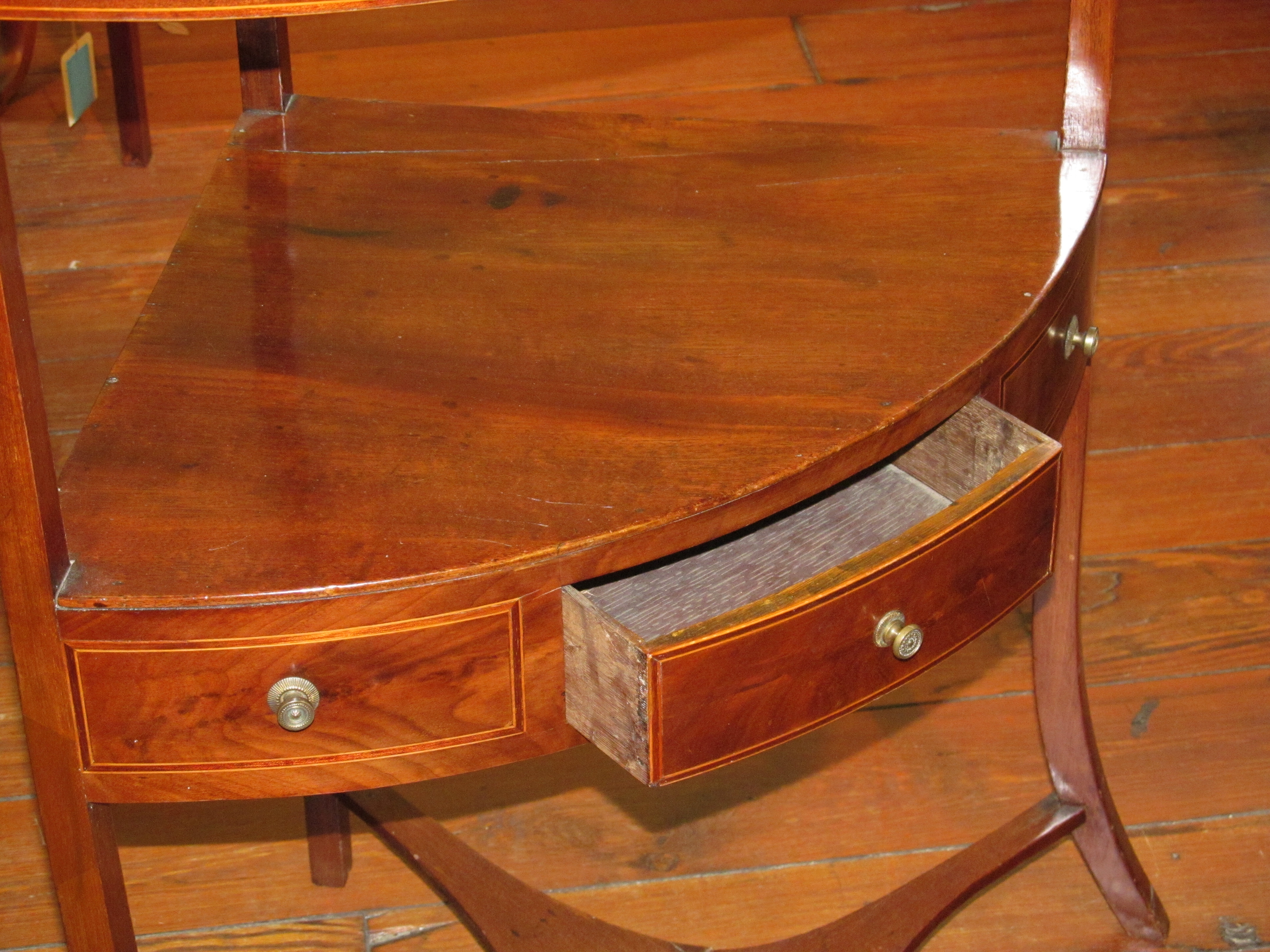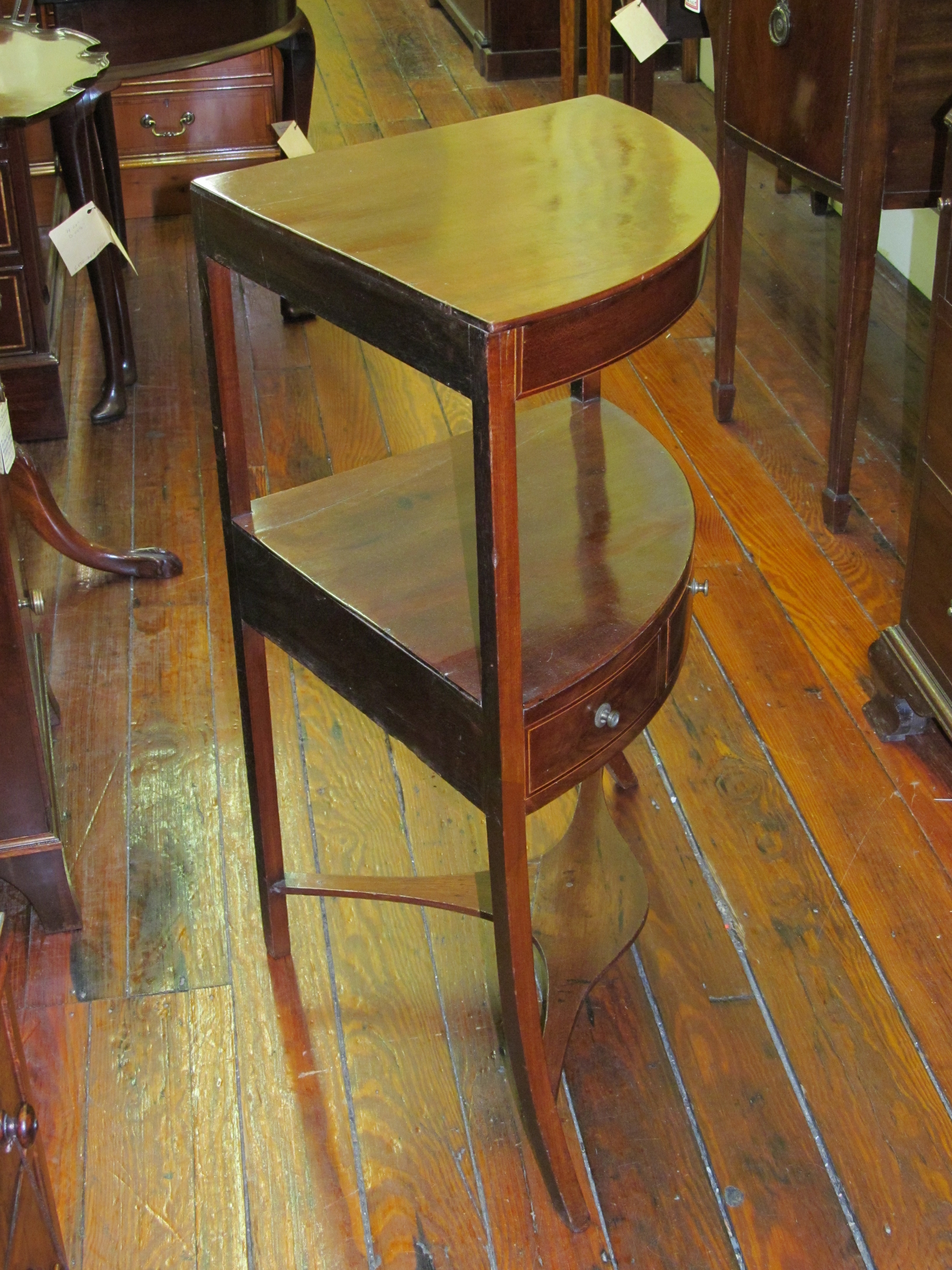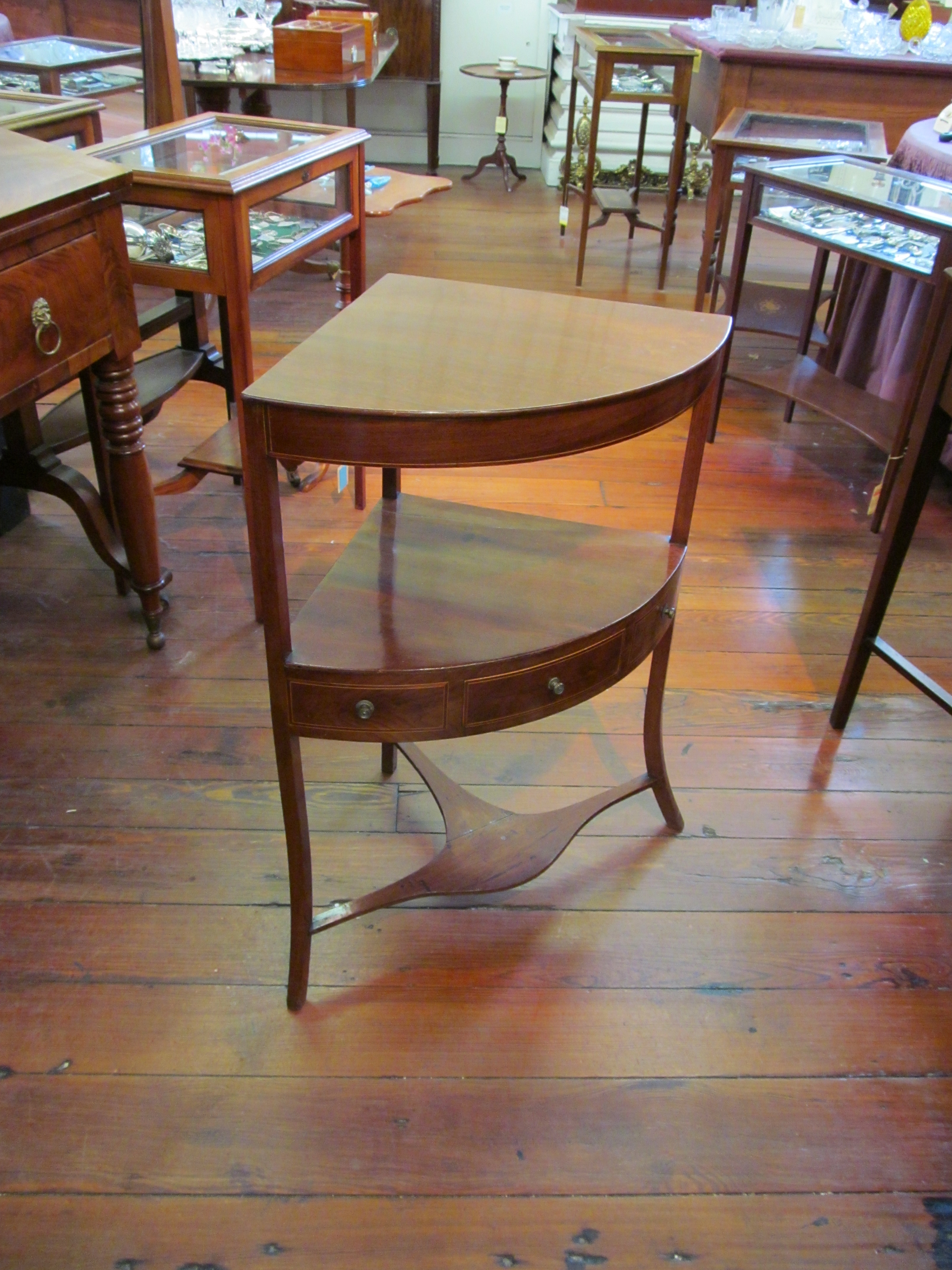 You are here: Home / All Inventory / Mahogany Double Line Inlaid Regency Style Corner Washstand