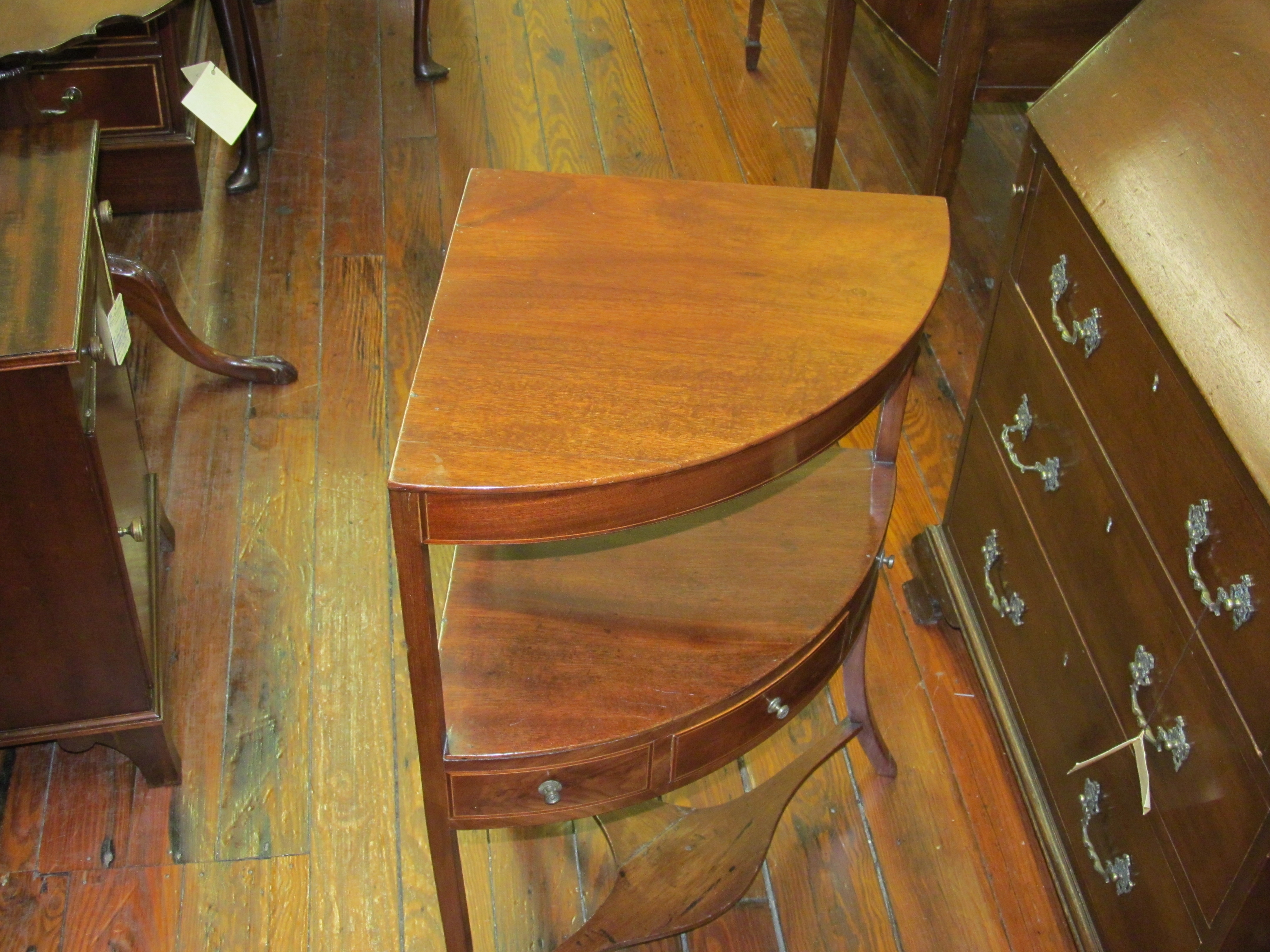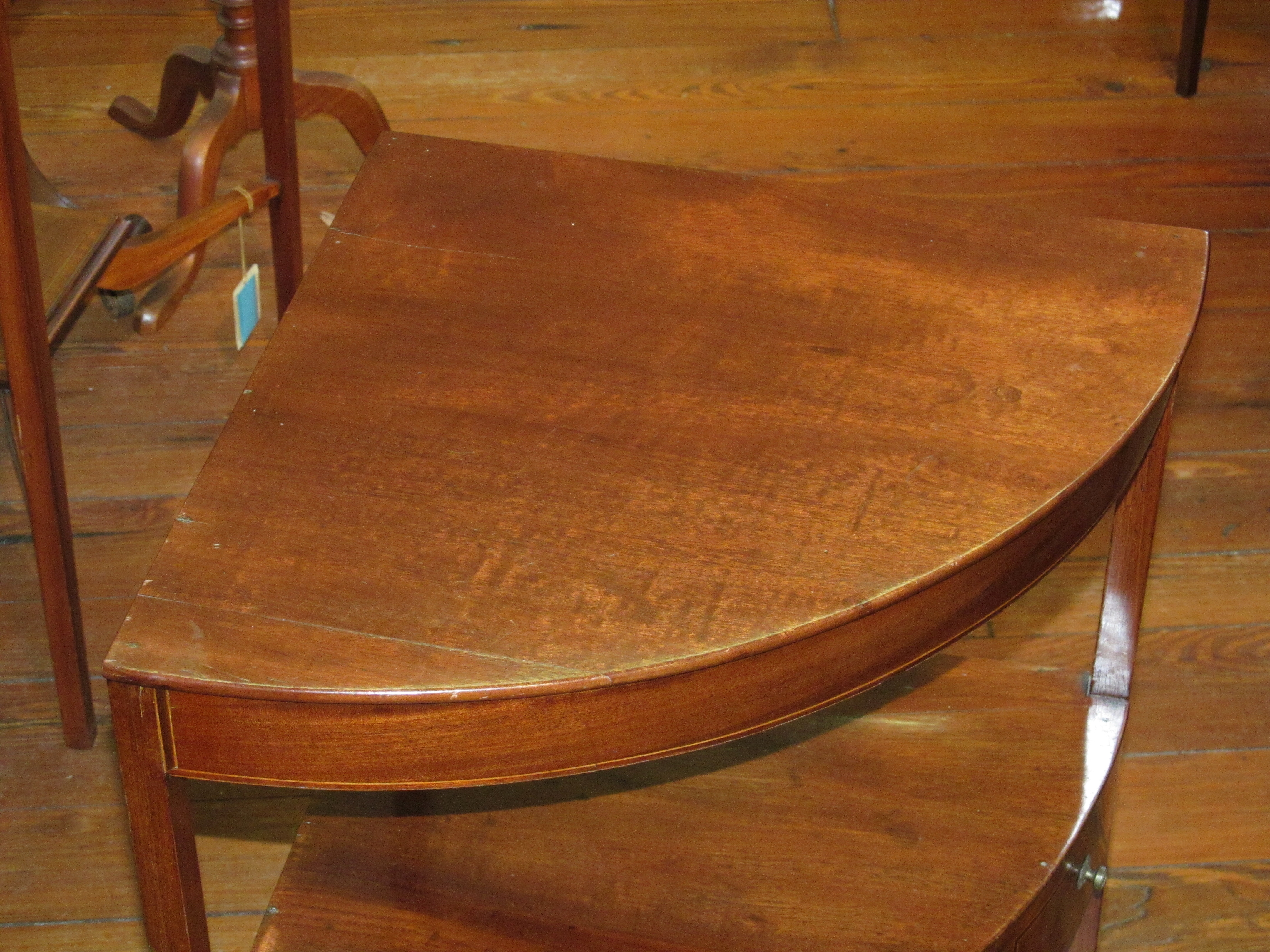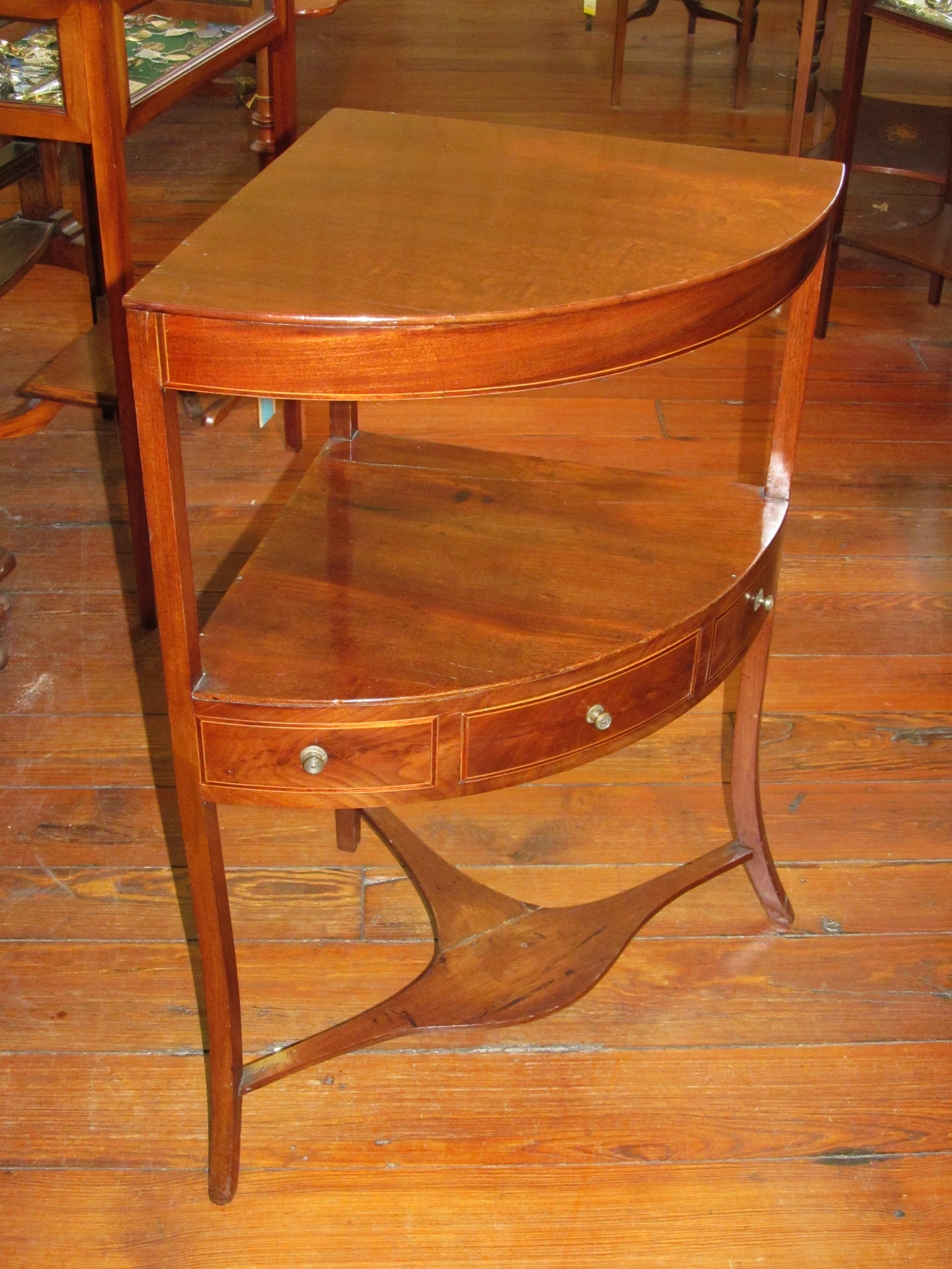 You are here: Home / All Inventory / Mahogany Double Line Inlaid Regency Style Corner Washstand