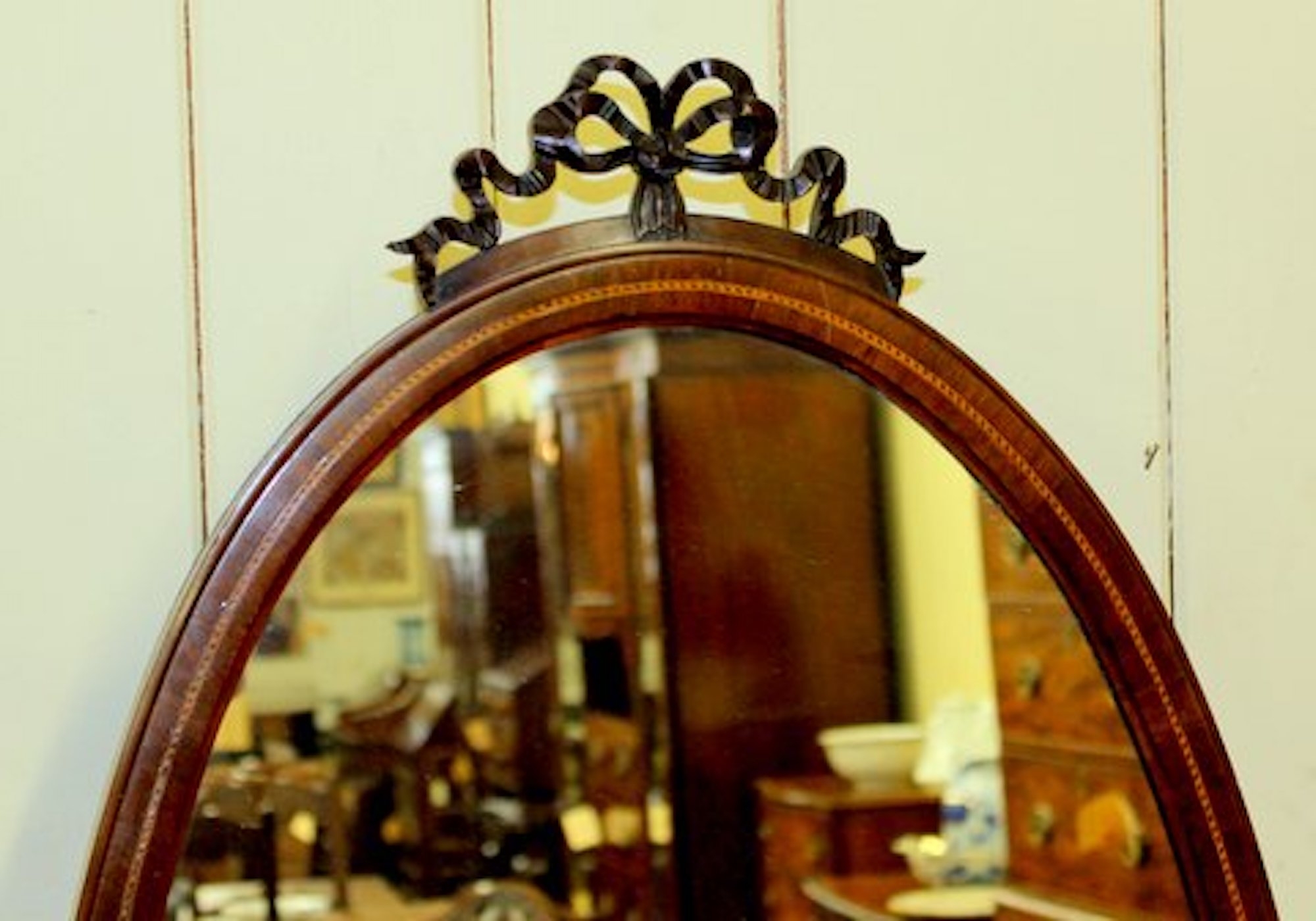 You are here: Home / Furniture / Mirror / Antique English “Adam” Style Inlaid Mahogany Cheval Mirror