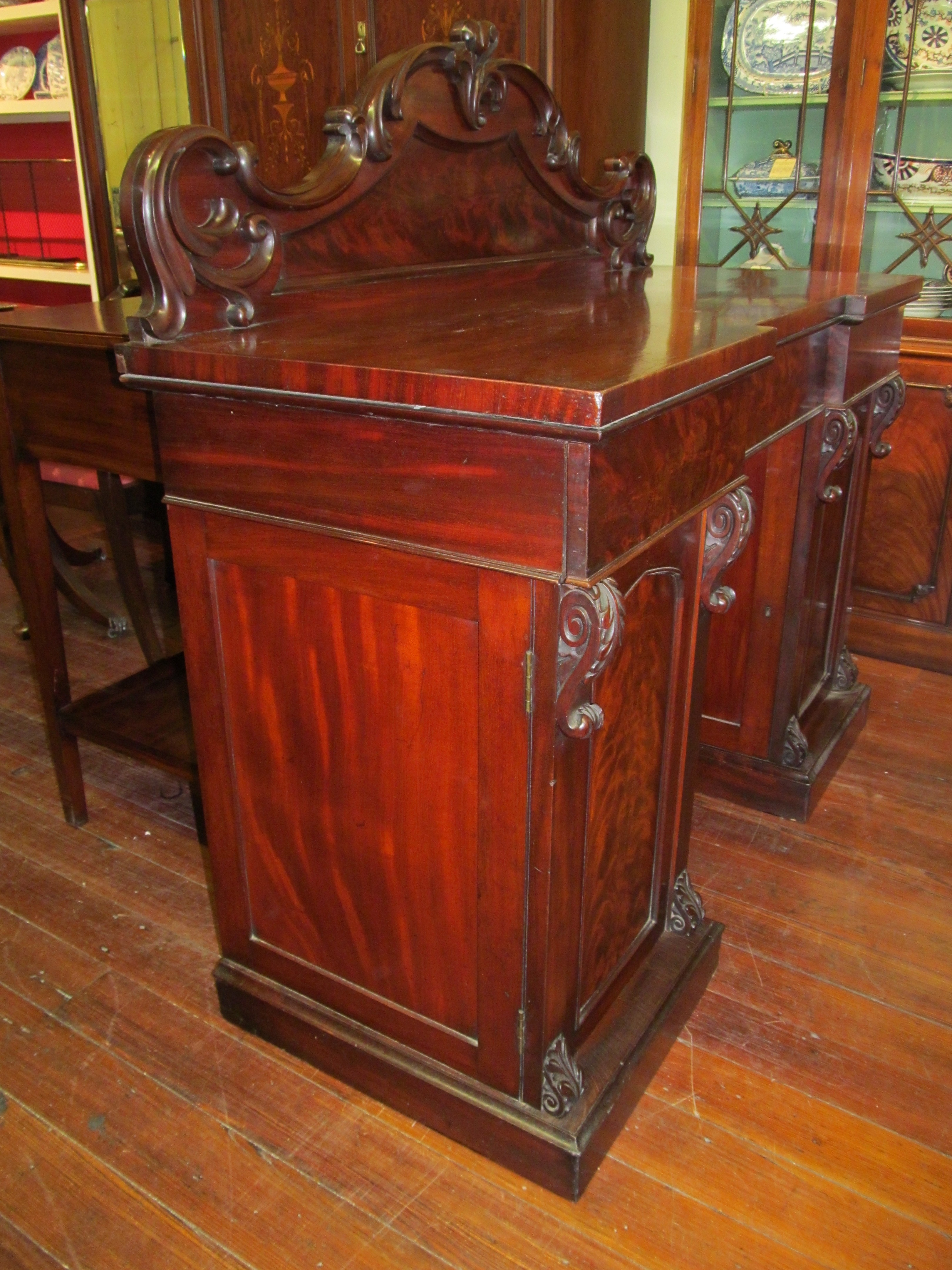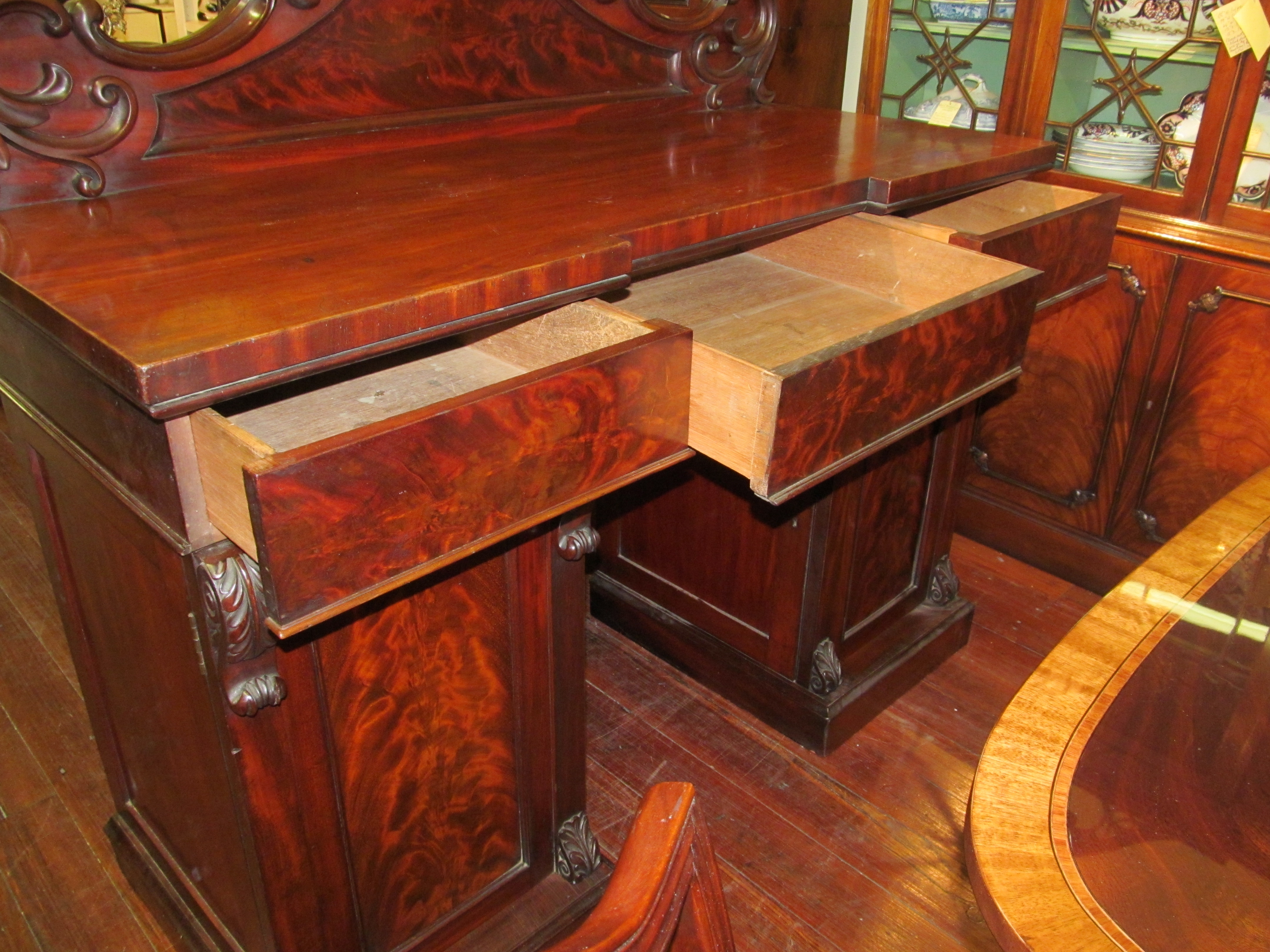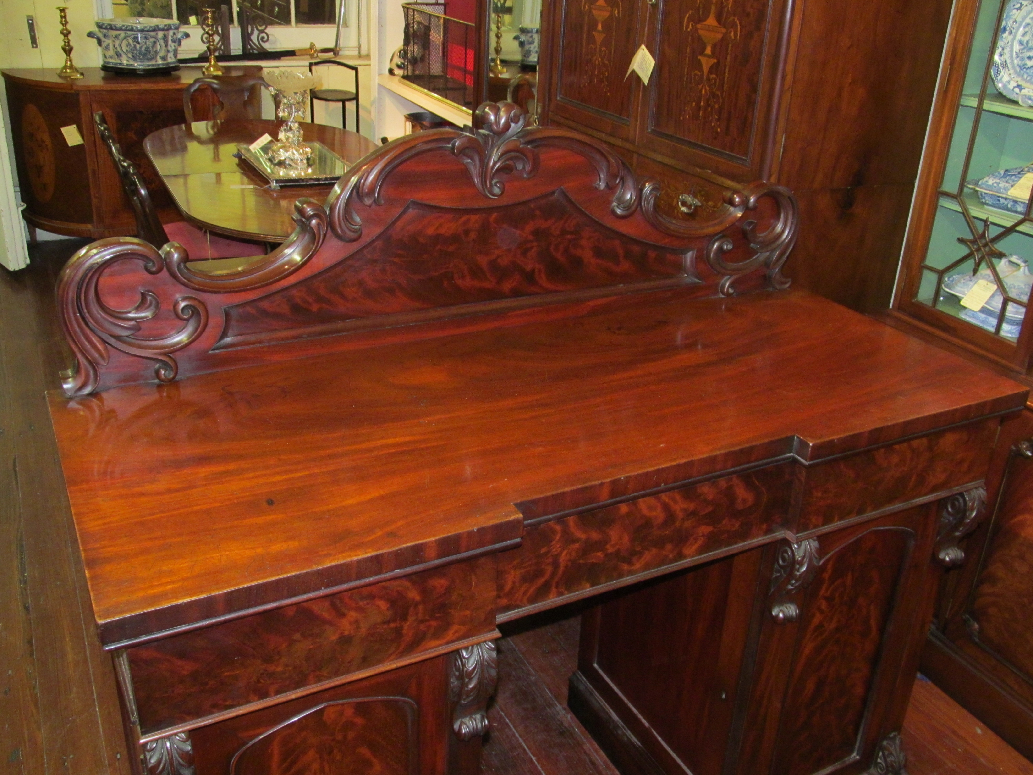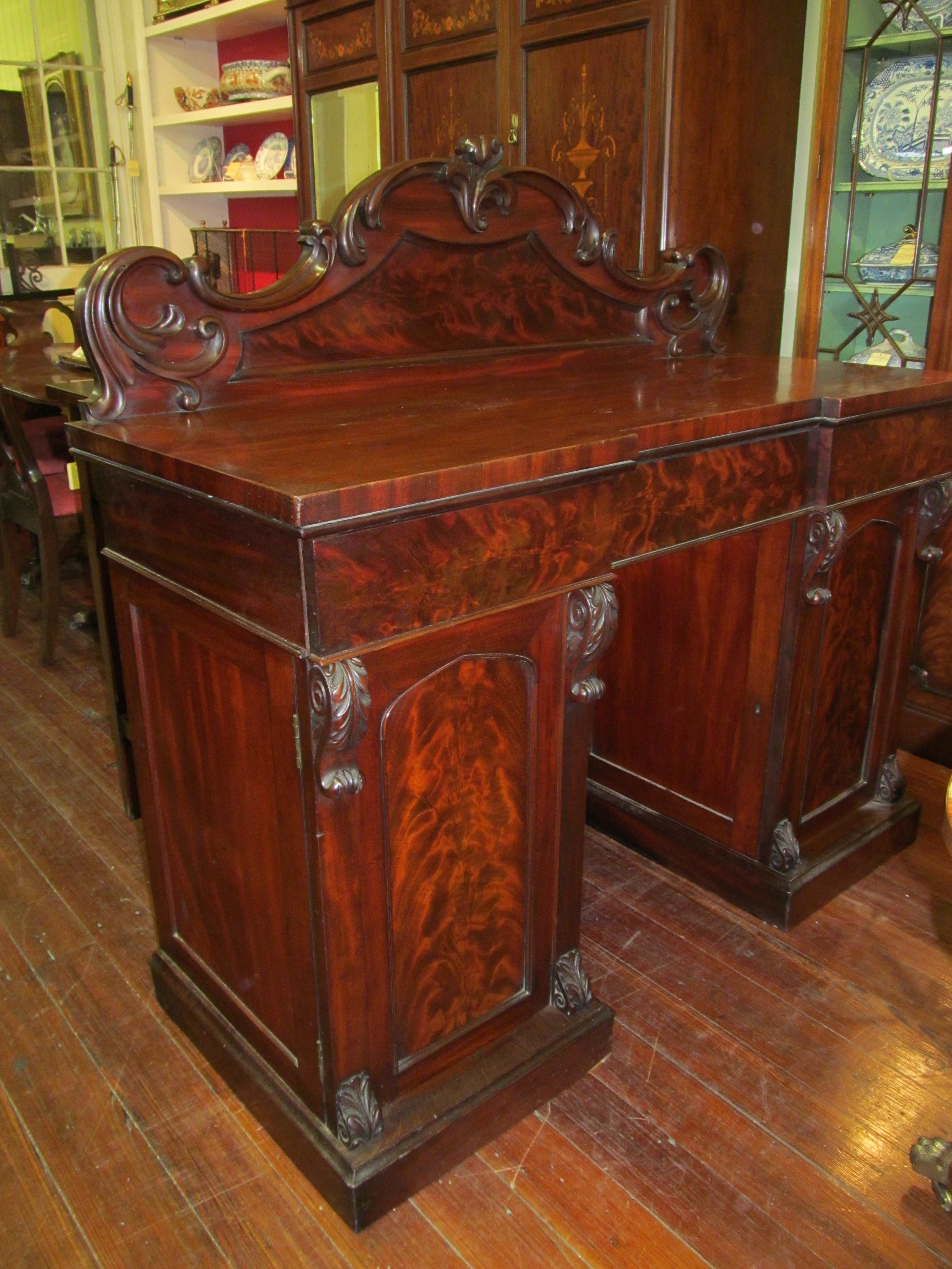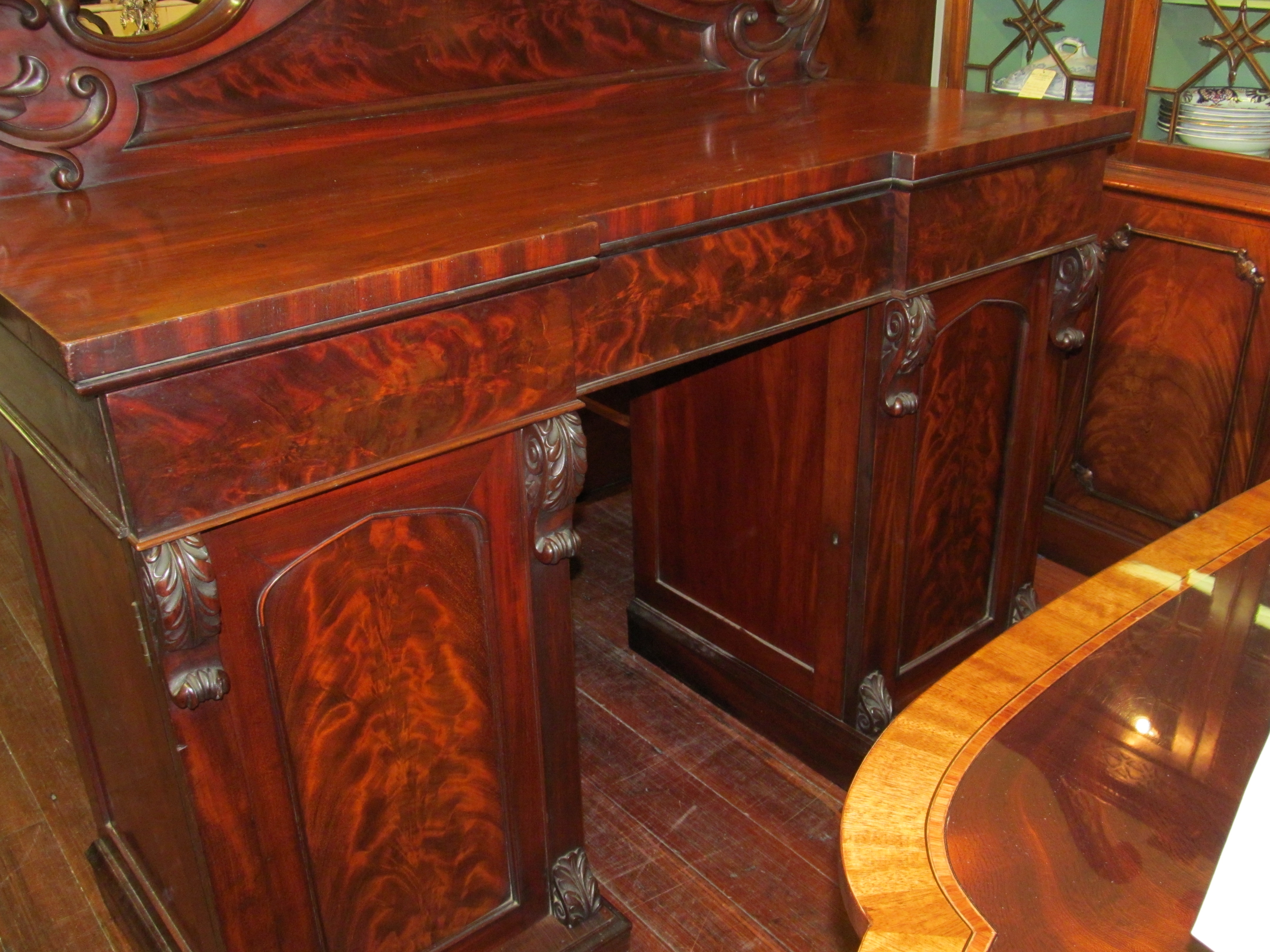 You are here: Home / All Inventory / Antique English Bookmatched Flame Mahogany Victorian Sideboard