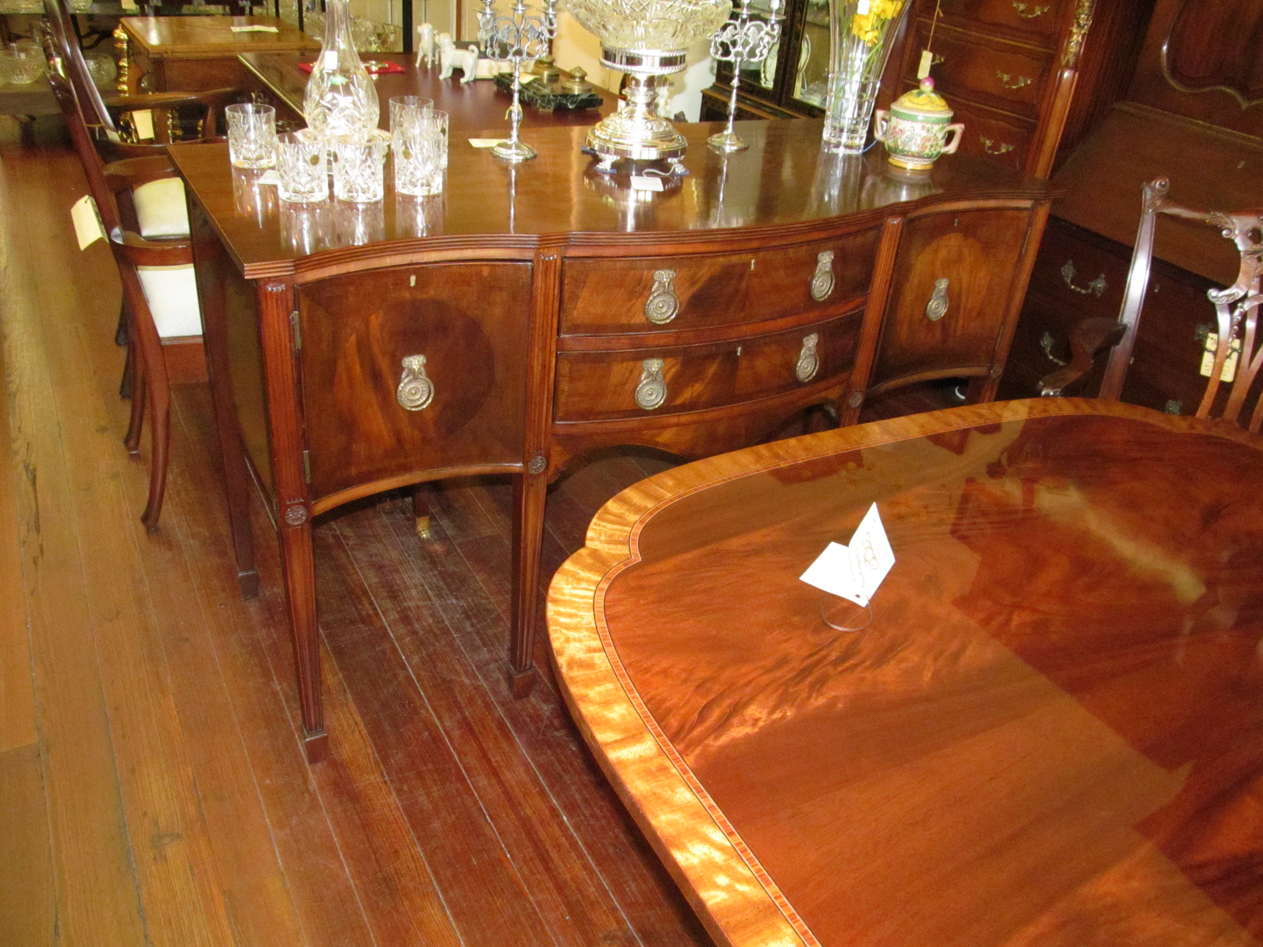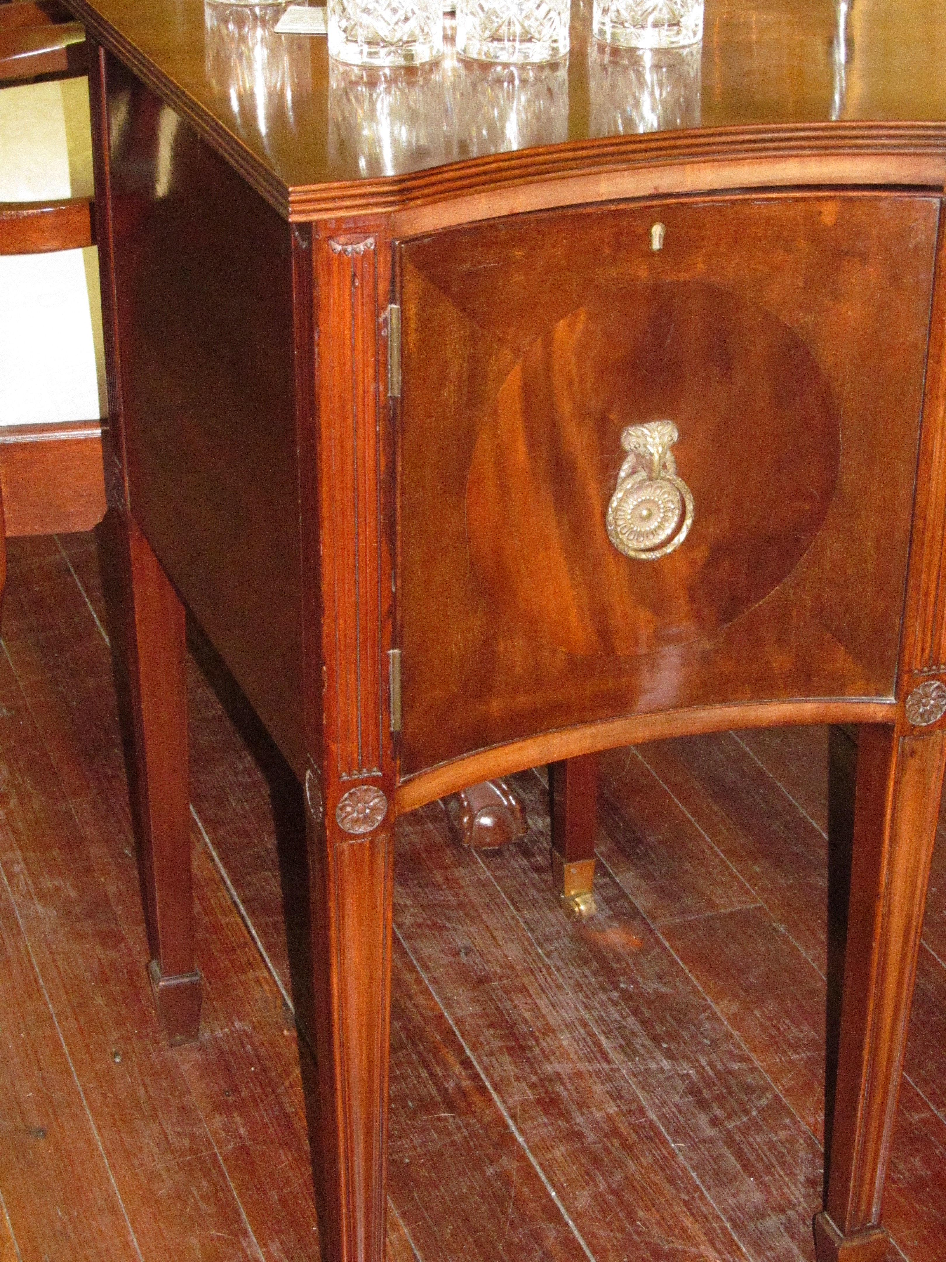 Very Fine Quality Antique English Crotch Mahogany Serpentine Front Hepplewhite Style Sideboard.