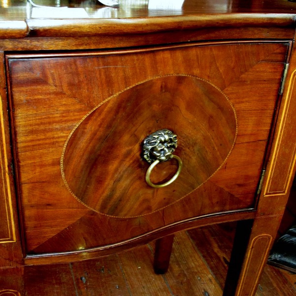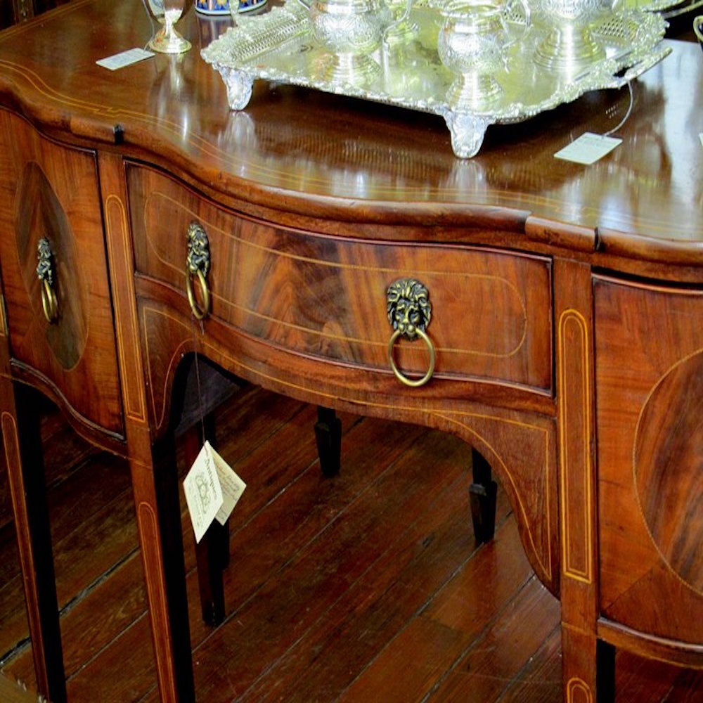 Fabulous Quality Antique English Sheraton or Hepplewhite Style Serpentine Shape Sideboard with Superb Figured Mahogany