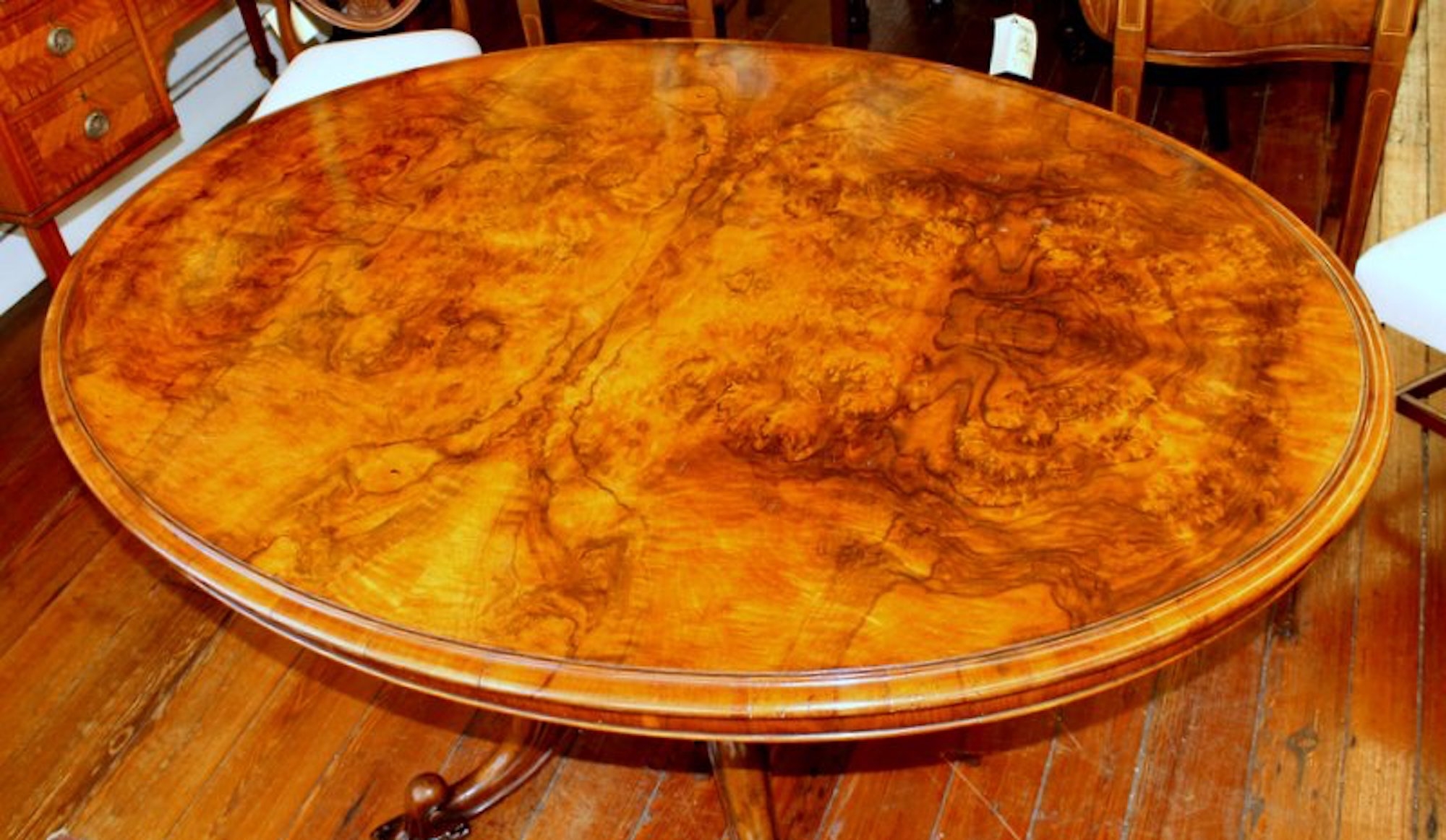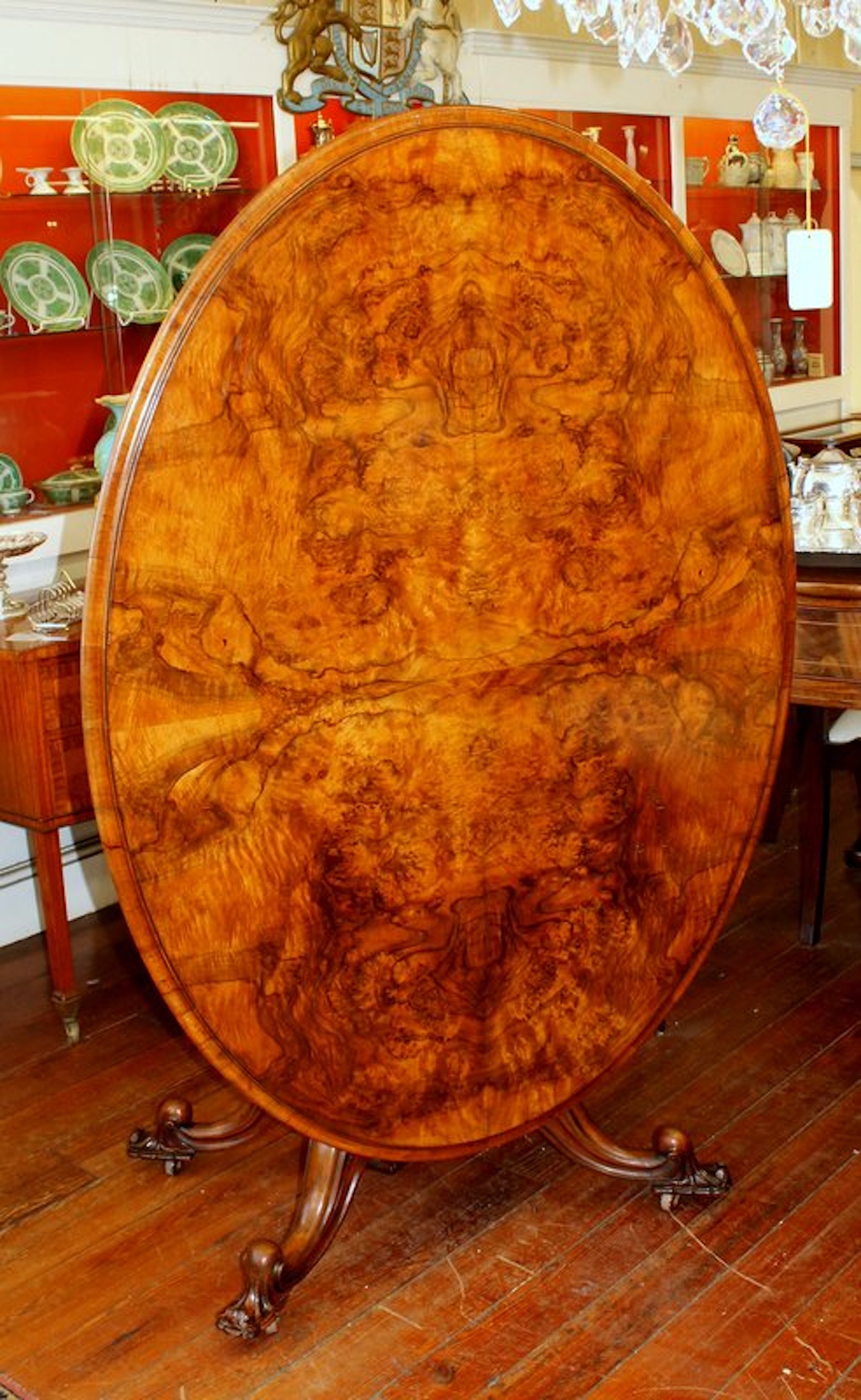 Rare and Important Antique English Book-matched Burr Walnut Tilt-top Loo Table, Breakfast or Centre Table