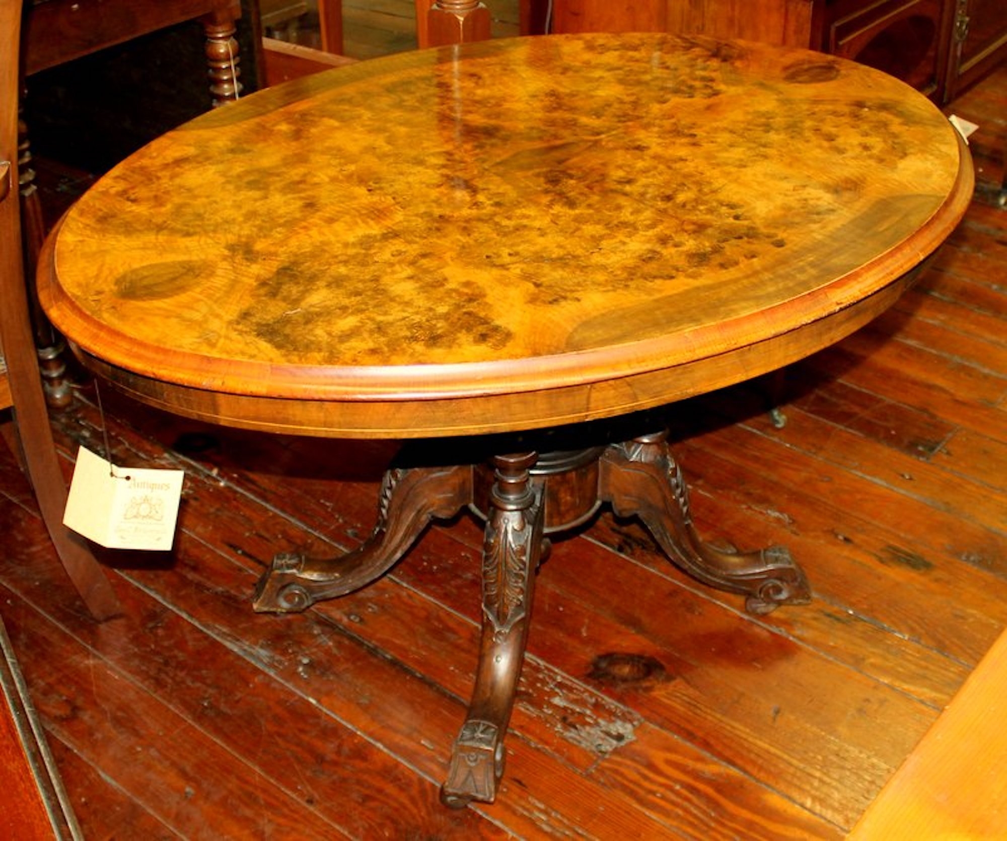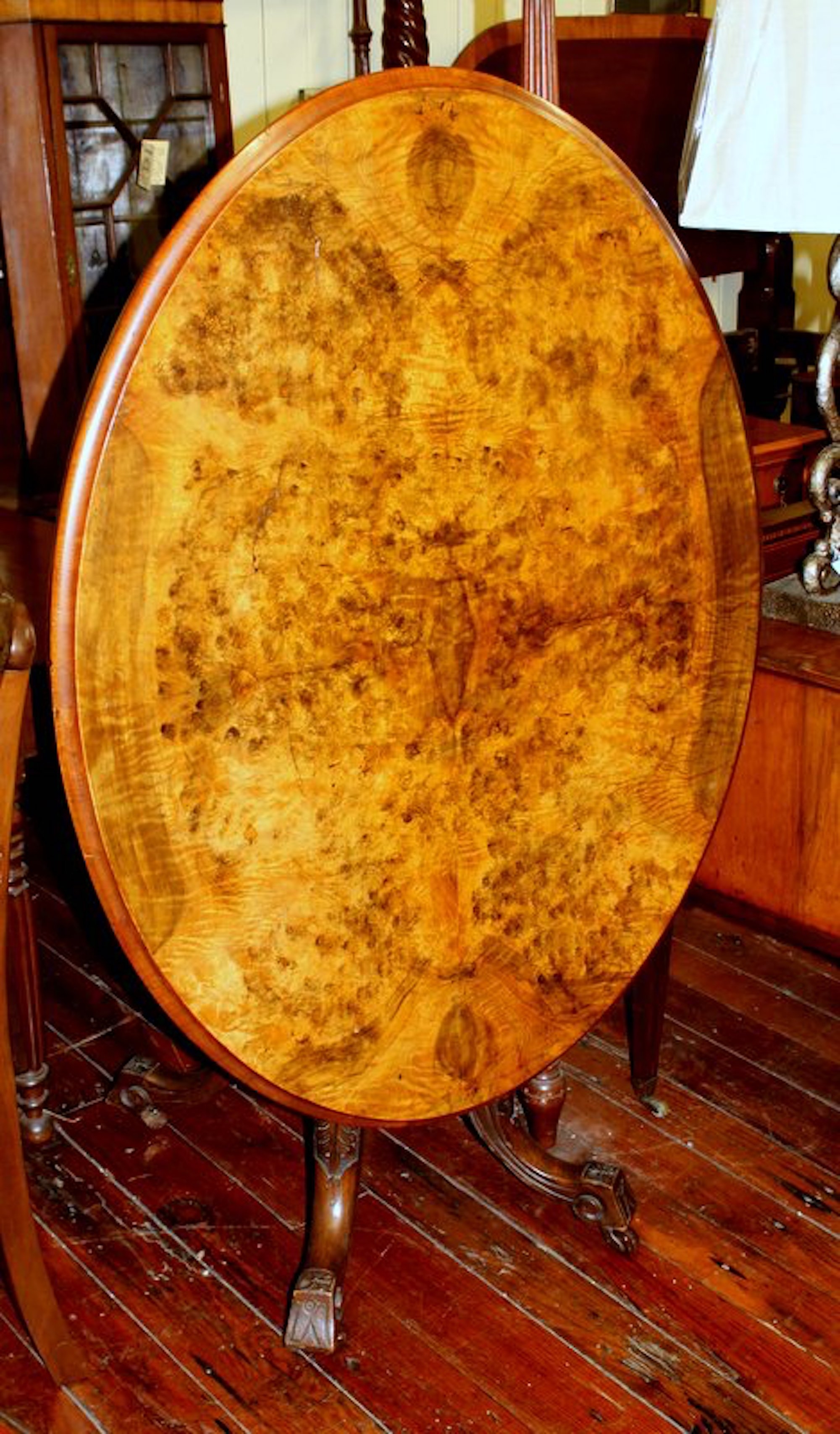 Fine Quality Antique English Book-matched Burr Walnut Tilt-top Loo Table, Breakfast or Hall Table