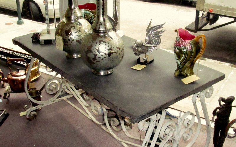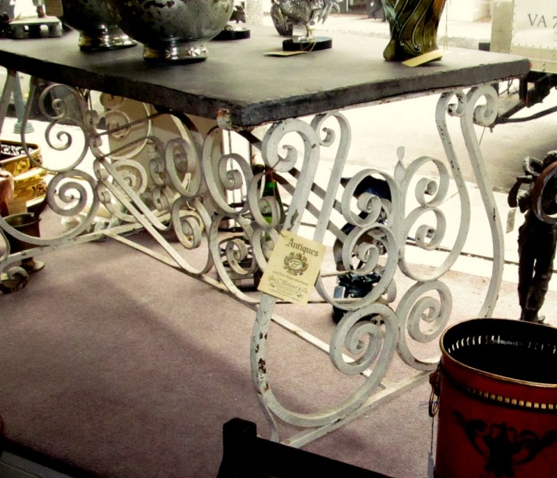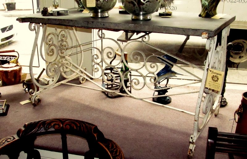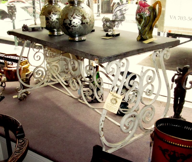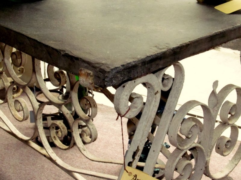 Fine Quality Antique English Hand Wrought Iron and Slate top Garden Table