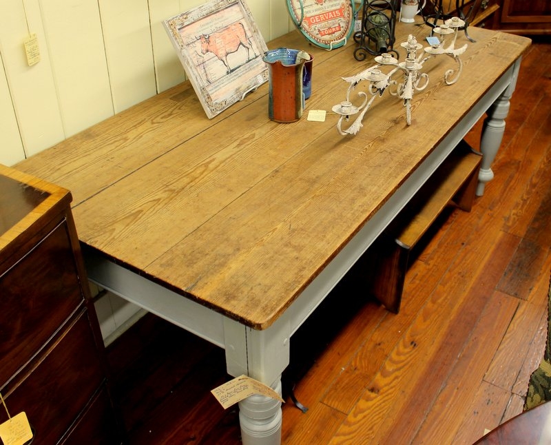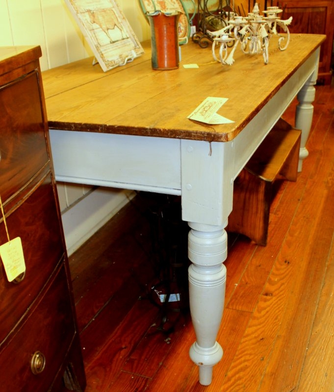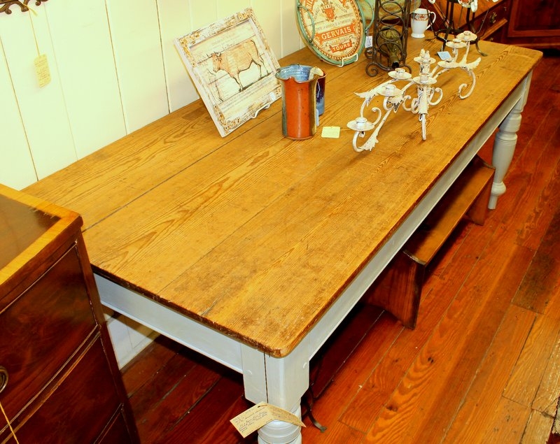 Fine Quality Antique English Original 19th Century Pine Farmhouse Table with Painted Apron and Legs