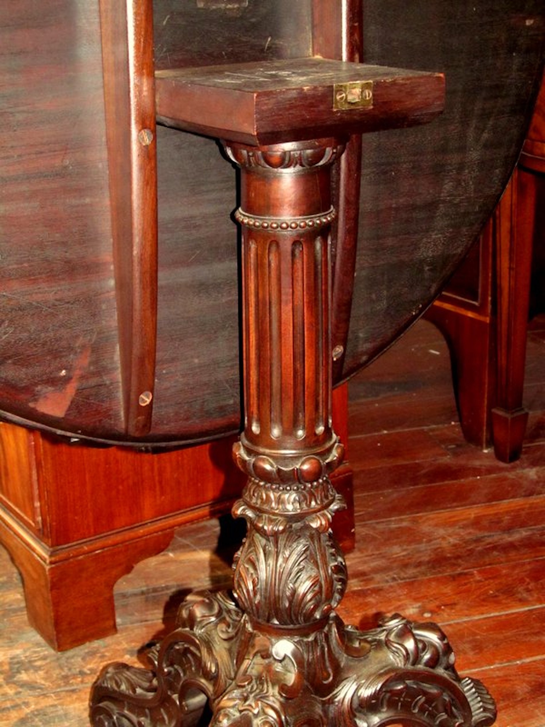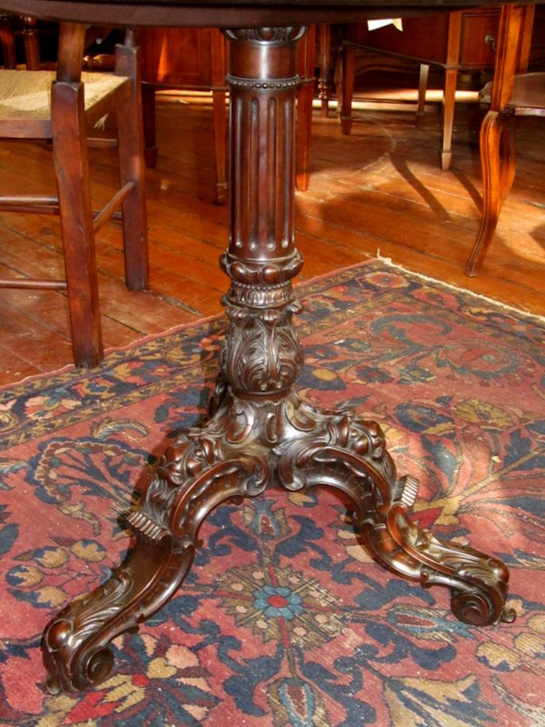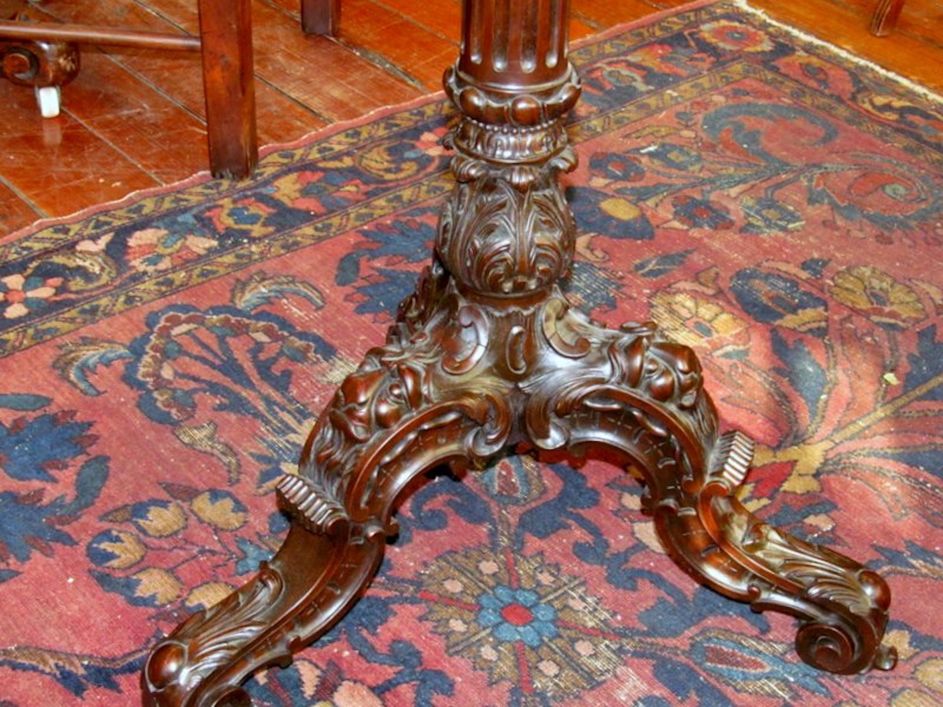 Please note extraordinary profusely carved pedestal and tripod in “bas relief” as well as pierced gallery.