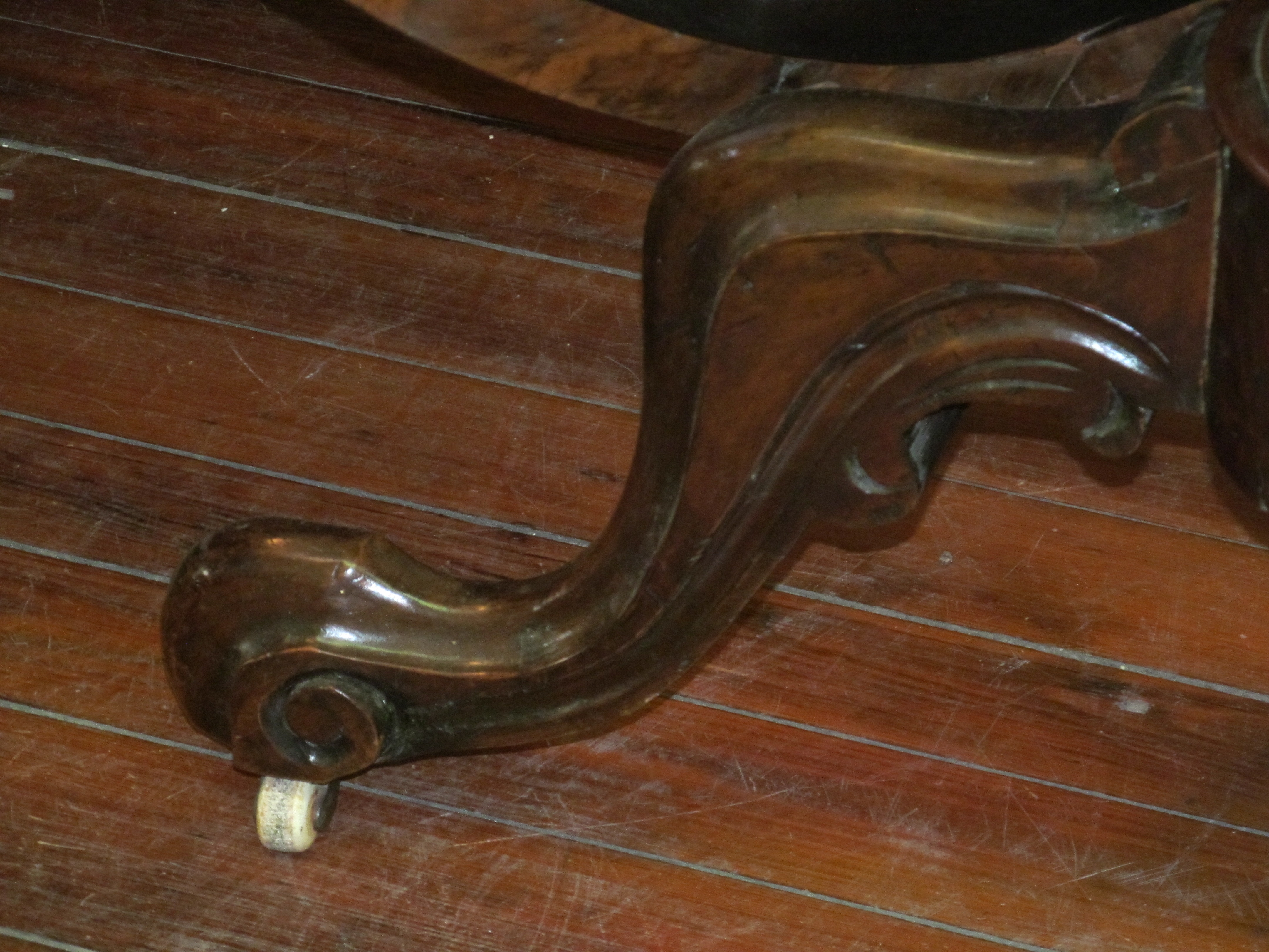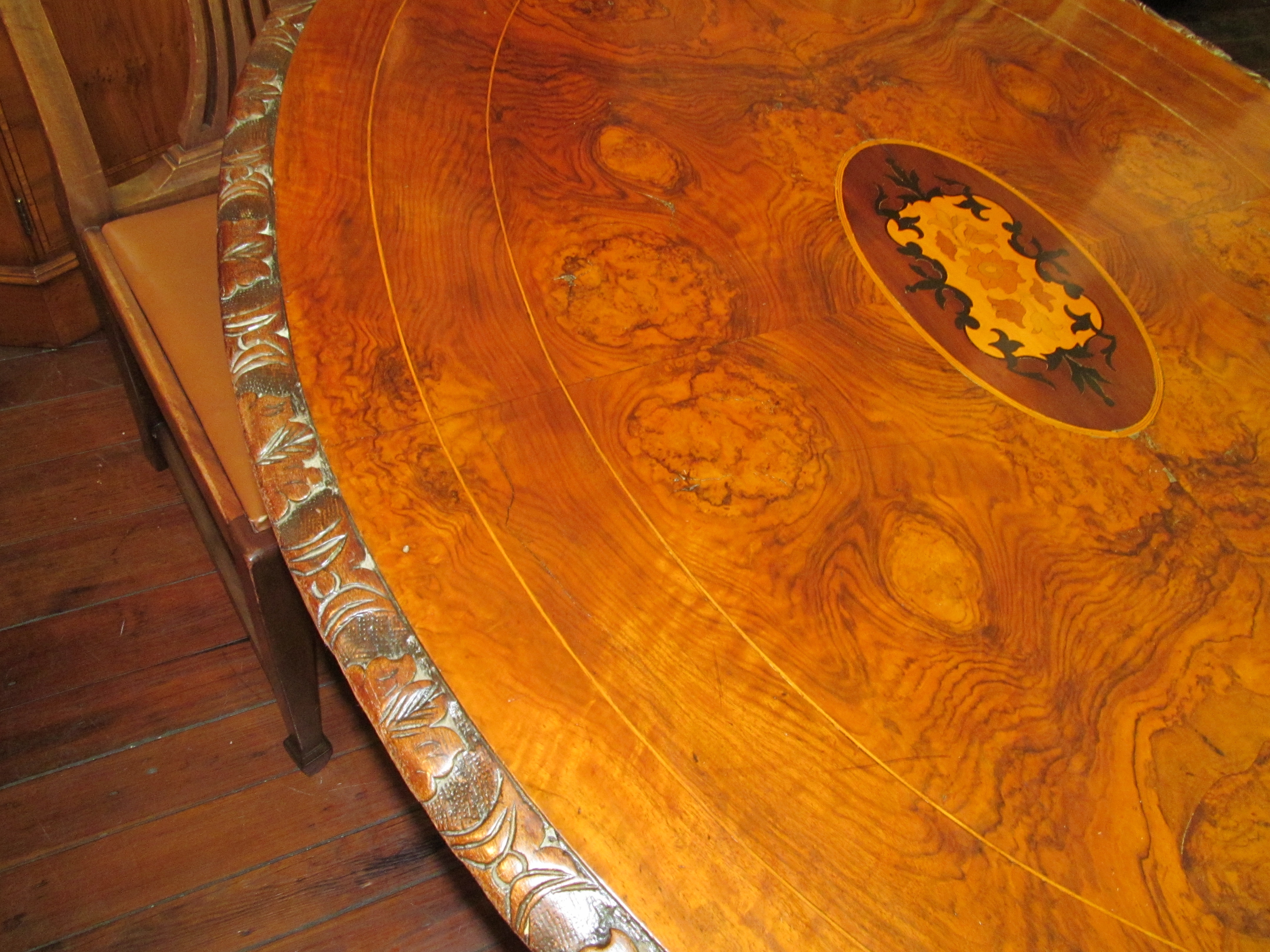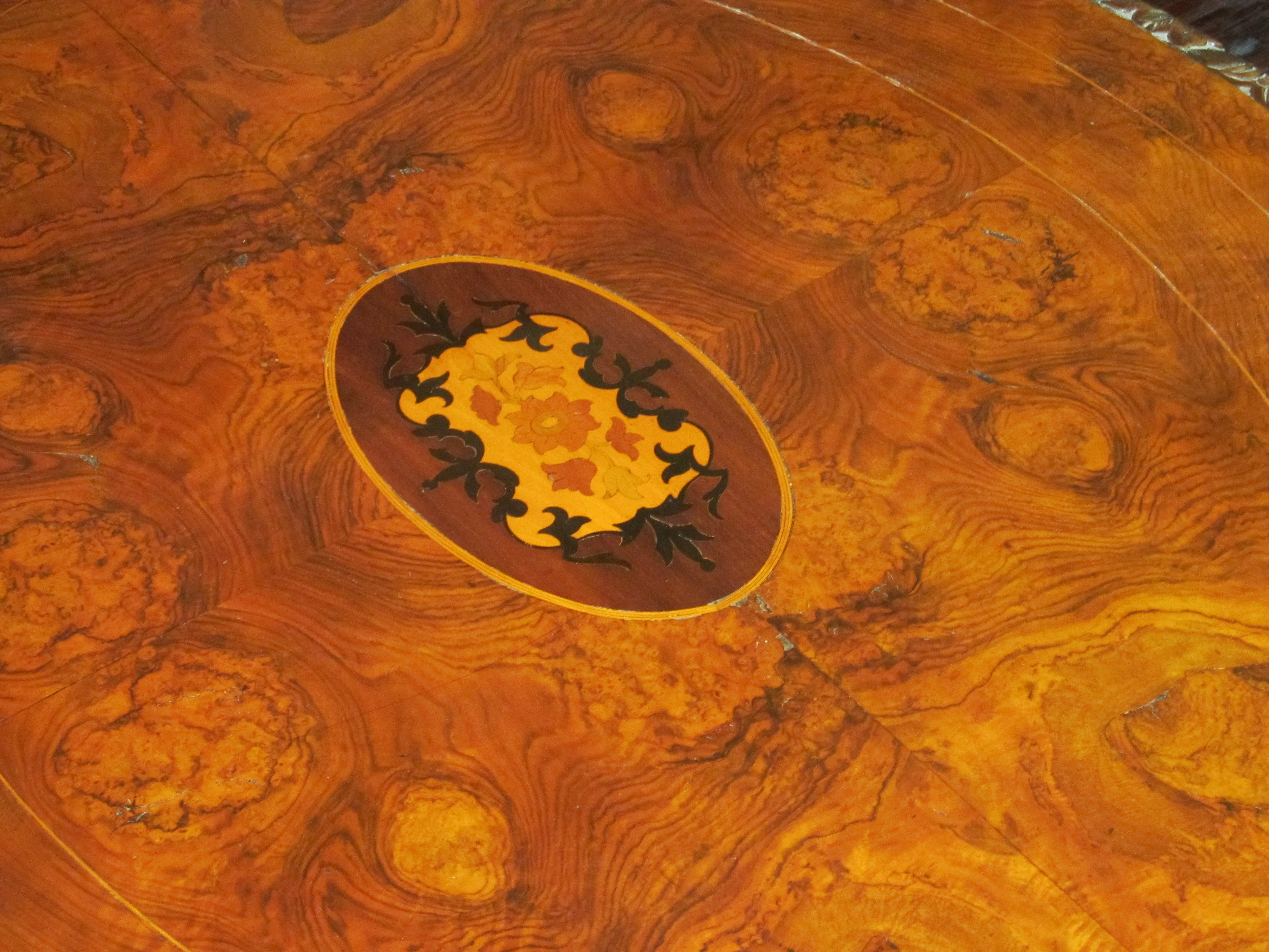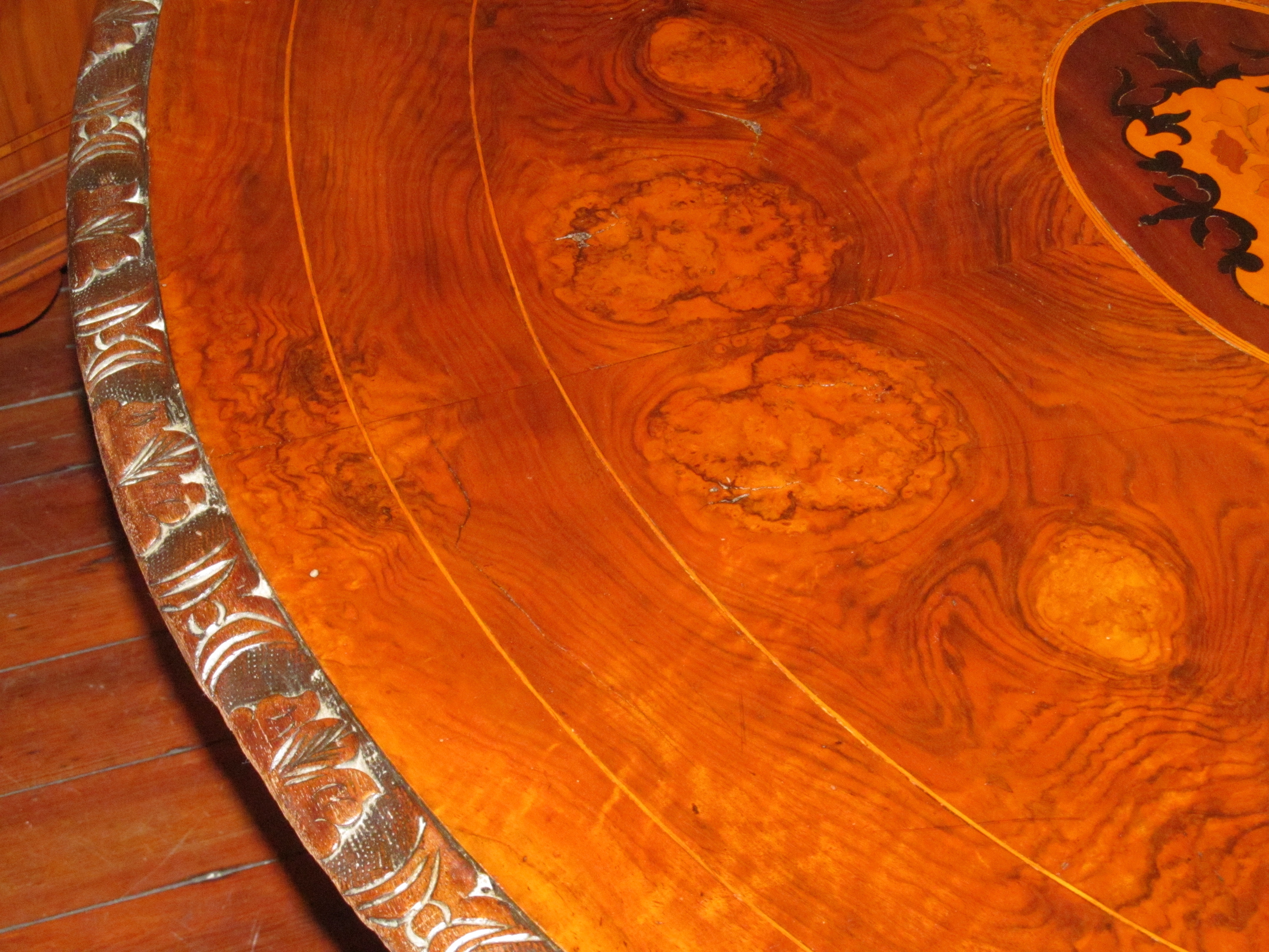 Antique Scottish Marquetry Inlaid Burl Walnut Hand Carved Tilt-Top Loo Table - Image 12