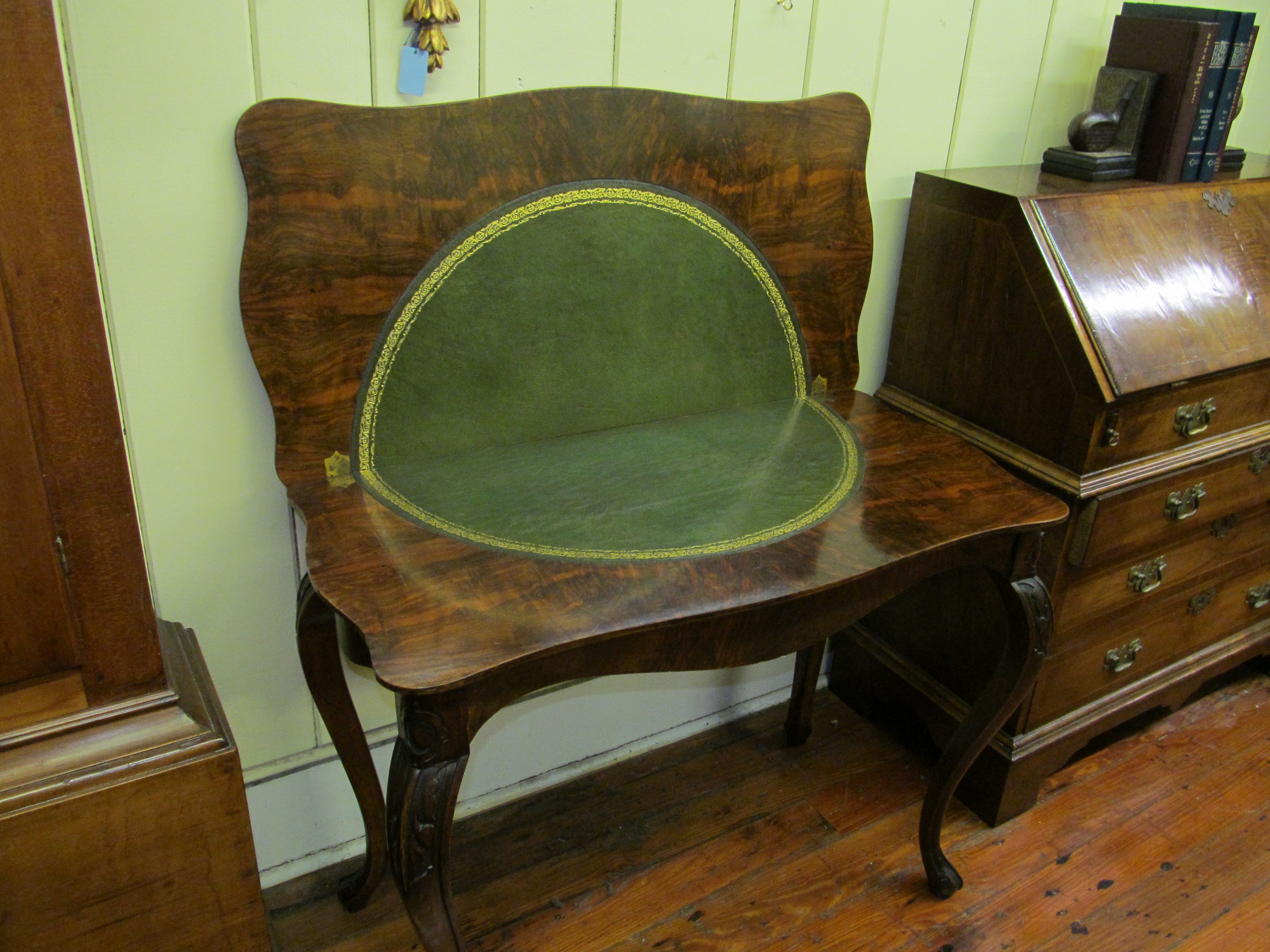 Superb Antique English Burr Walnut French Style Flip-Top Games Table.