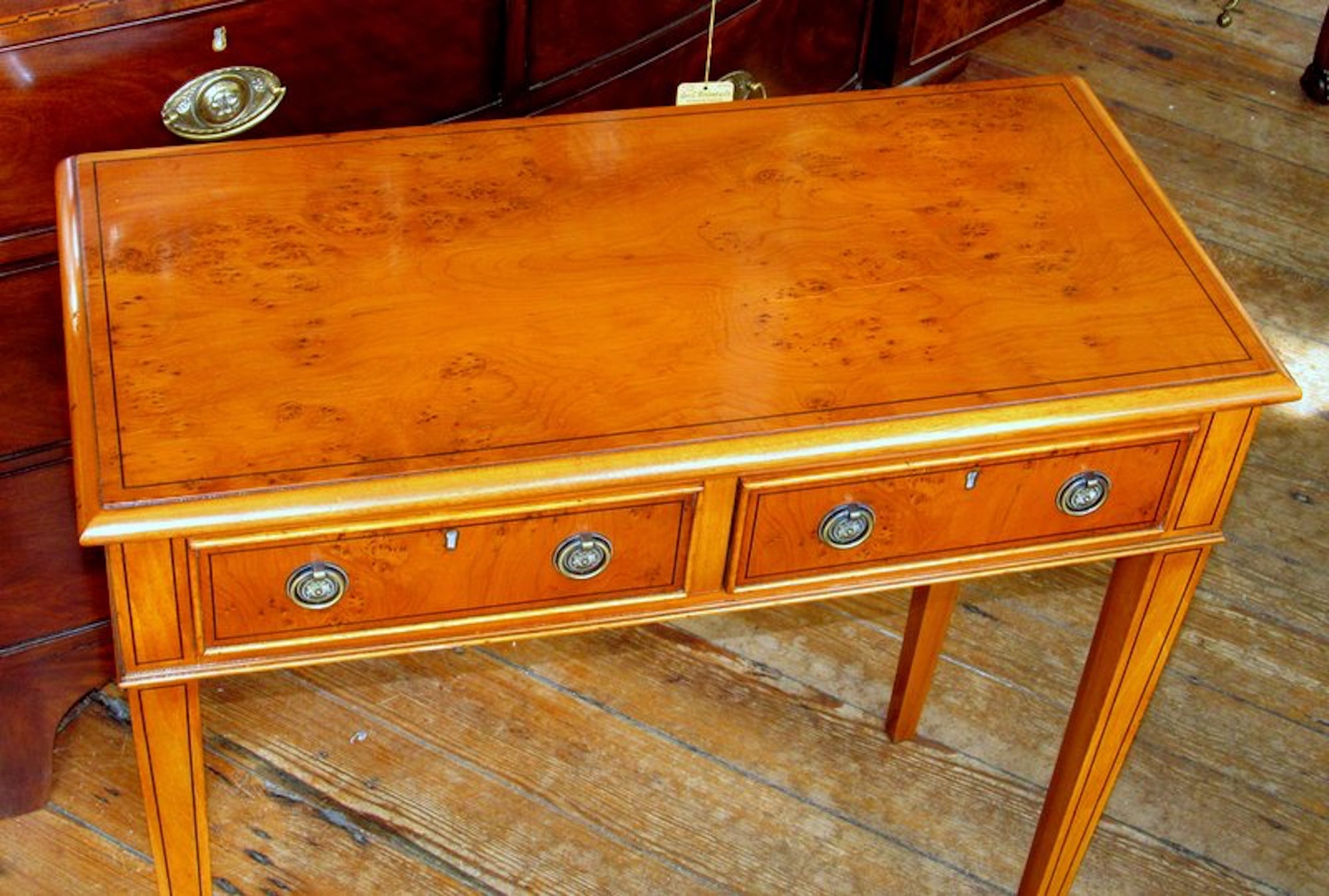 English Bench Made Inlaid Pippy Yew-wood Two-Drawer Side Table - Image 2