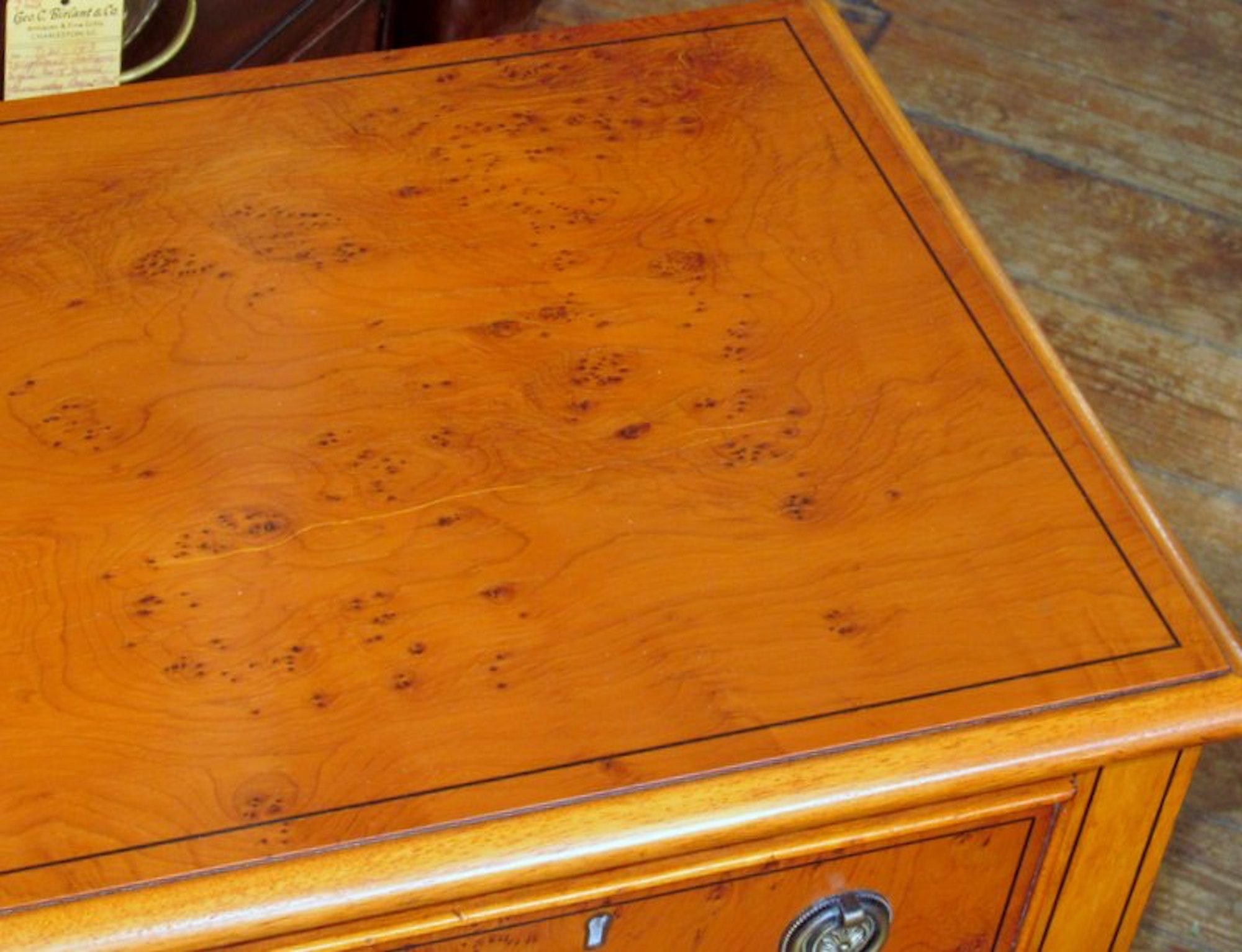 You are here: Home / All Inventory / English Bench Made Inlaid Pippy Yew-wood Two-Drawer Side Table
