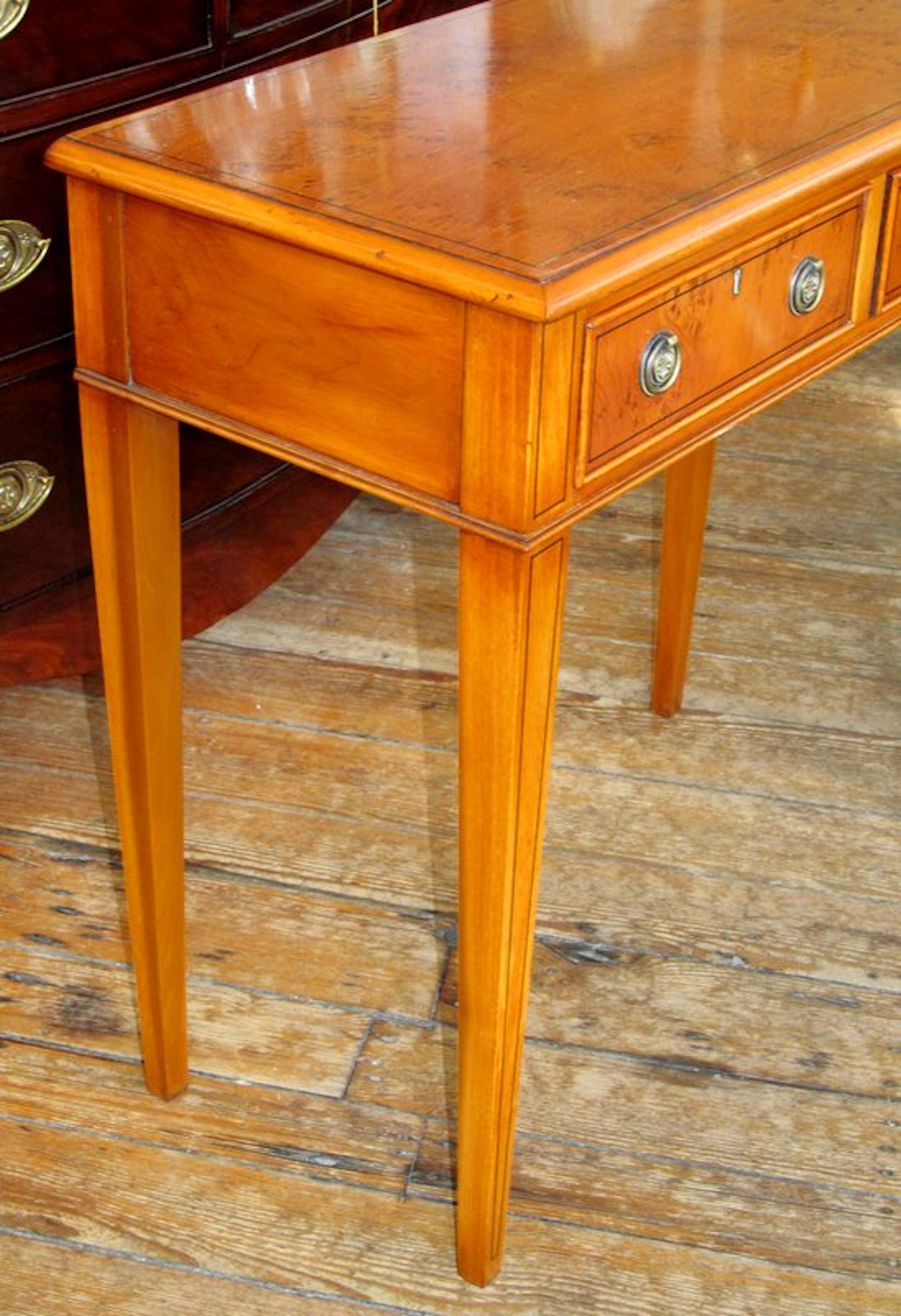 Fine English Bench Made Inlaid Pippy Yew-wood Two-Drawer Side Table