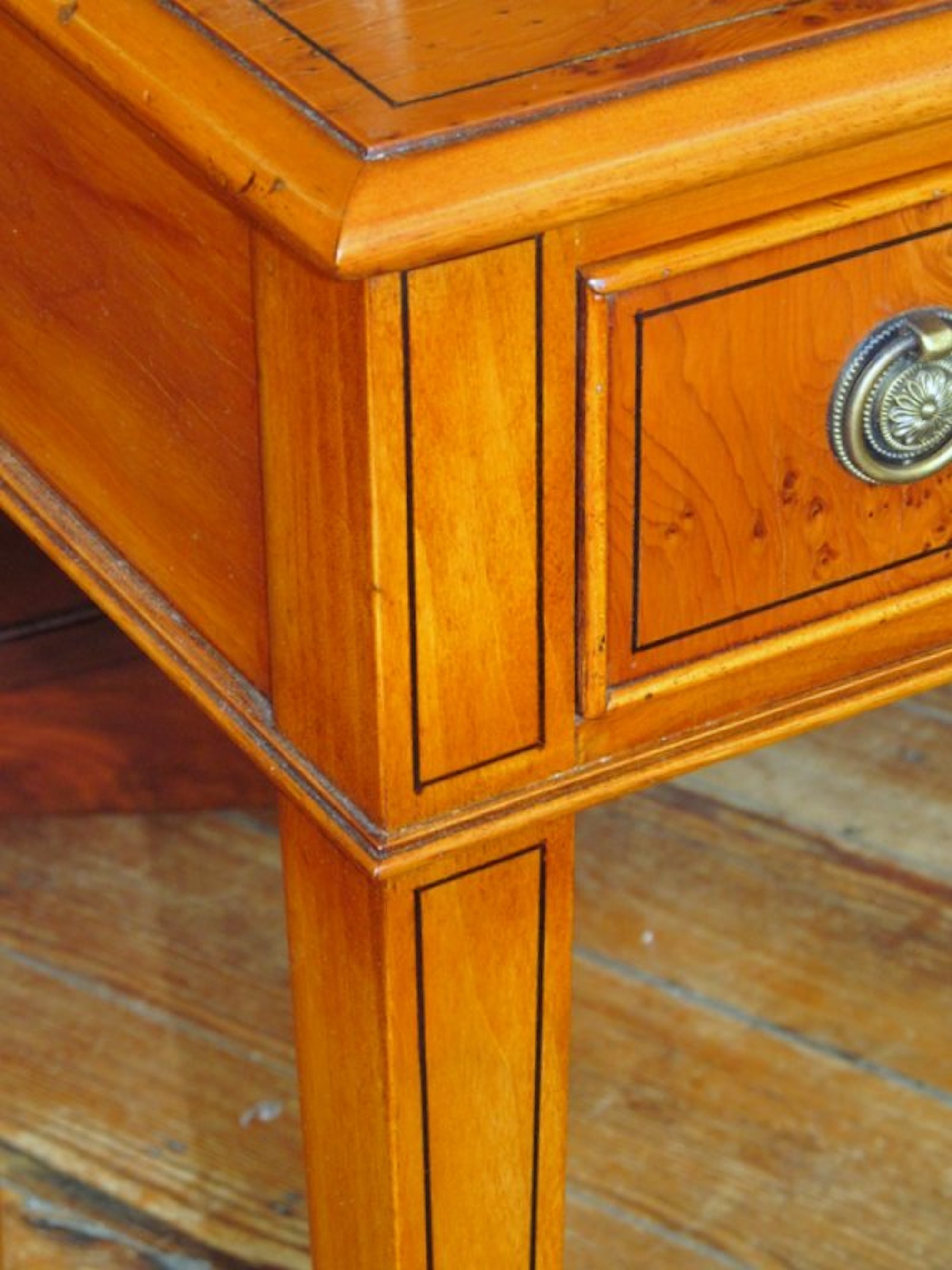 English Bench Made Inlaid Pippy Yew-wood Two-Drawer Side Table - Image 6