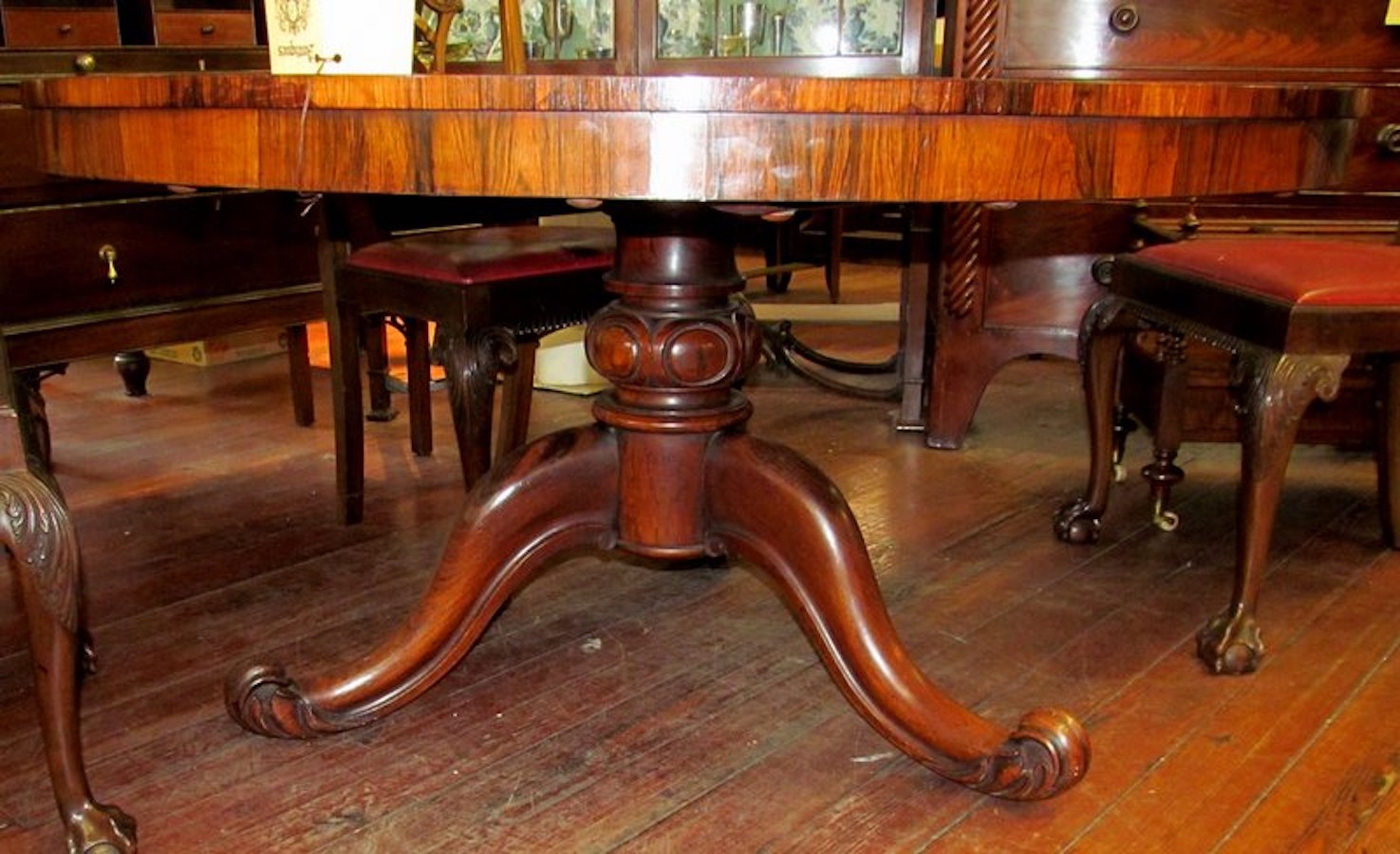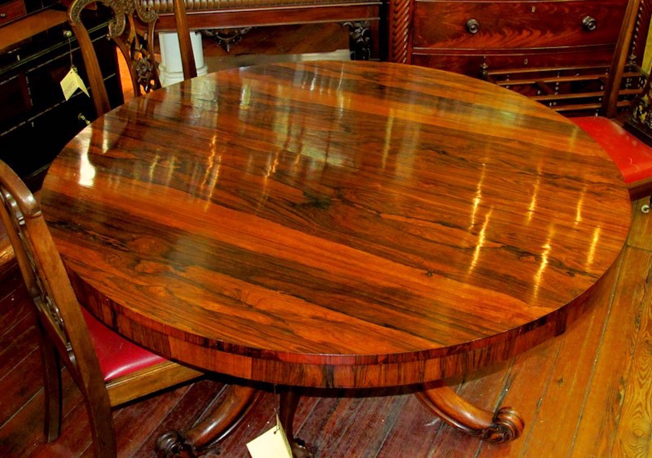 Extraordinary Quality Antique English William IV Rosewood and Mahogany Tilt-top circular Center Table