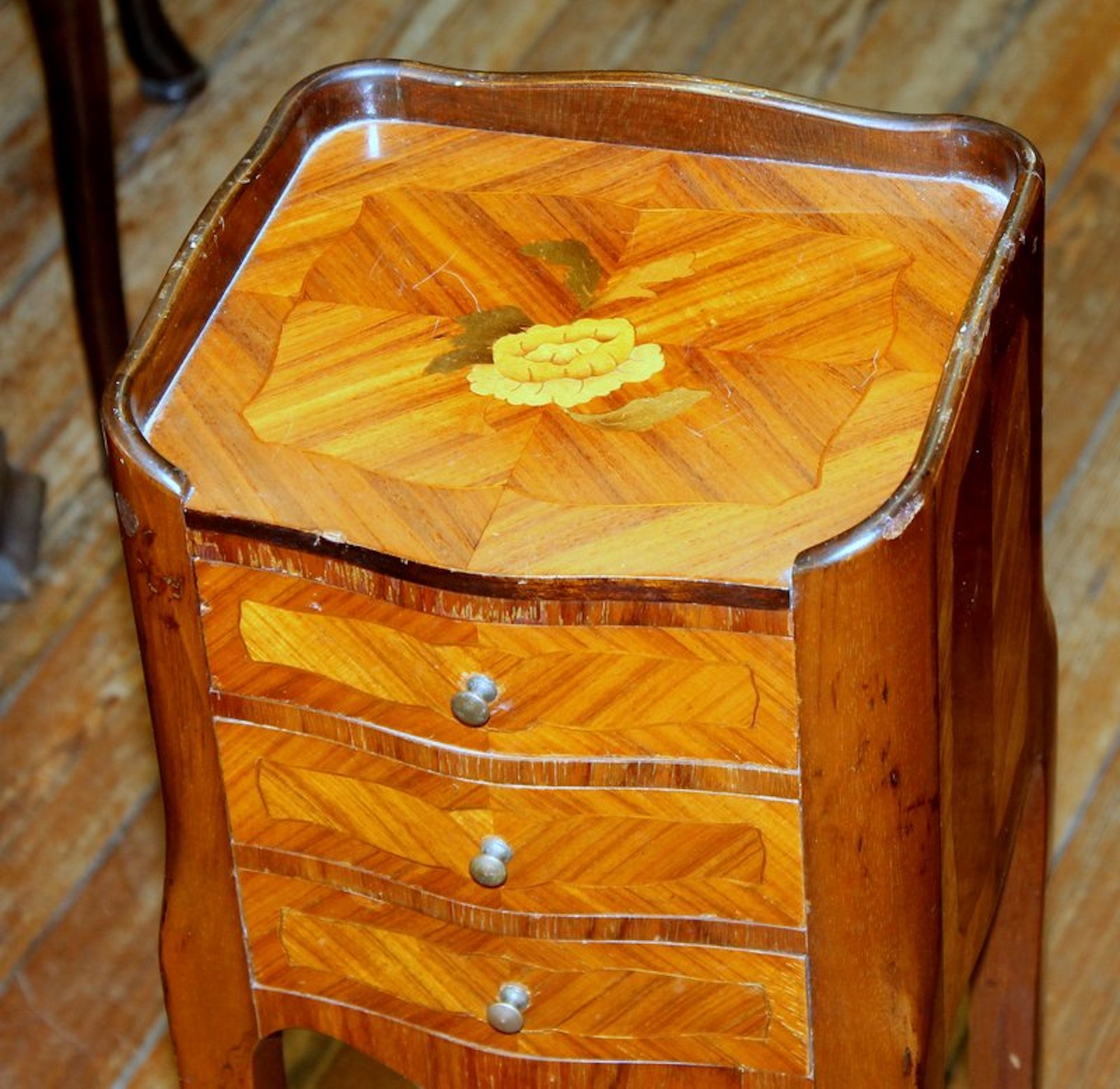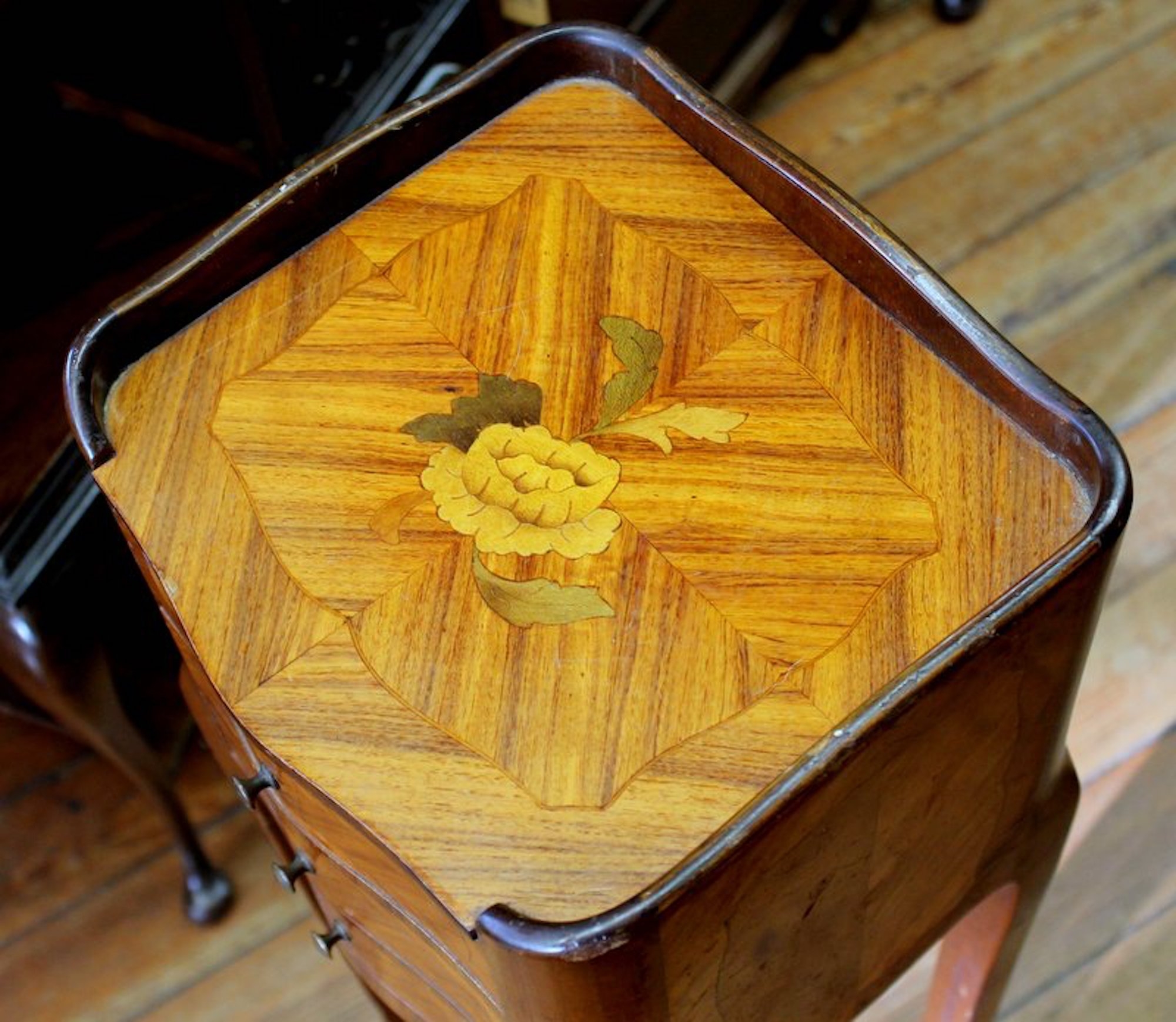 You are here: Home / All Inventory / French Small Inlaid Kingwood Bedside Table