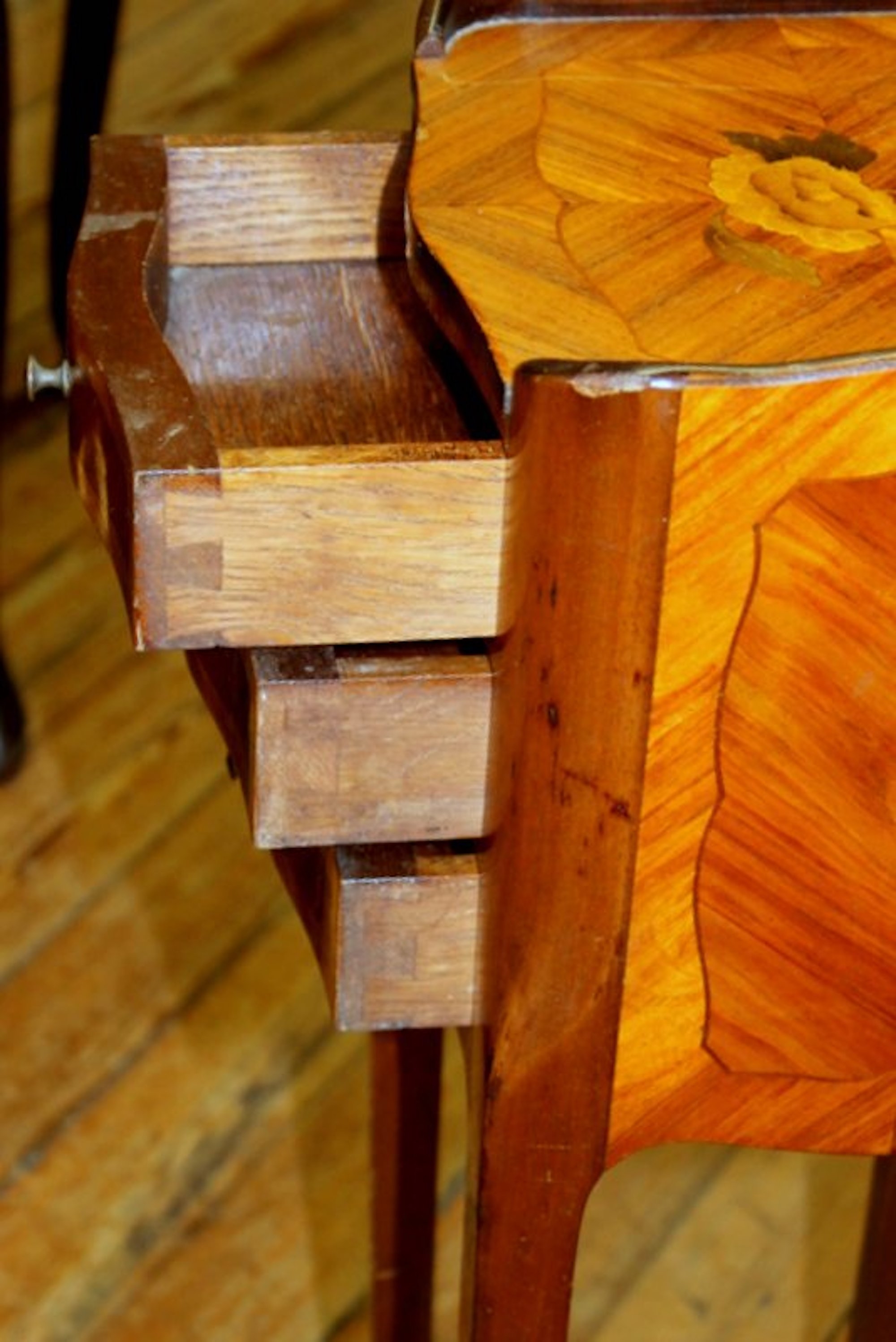 French Small Inlaid Kingwood Bedside Table - Image 8