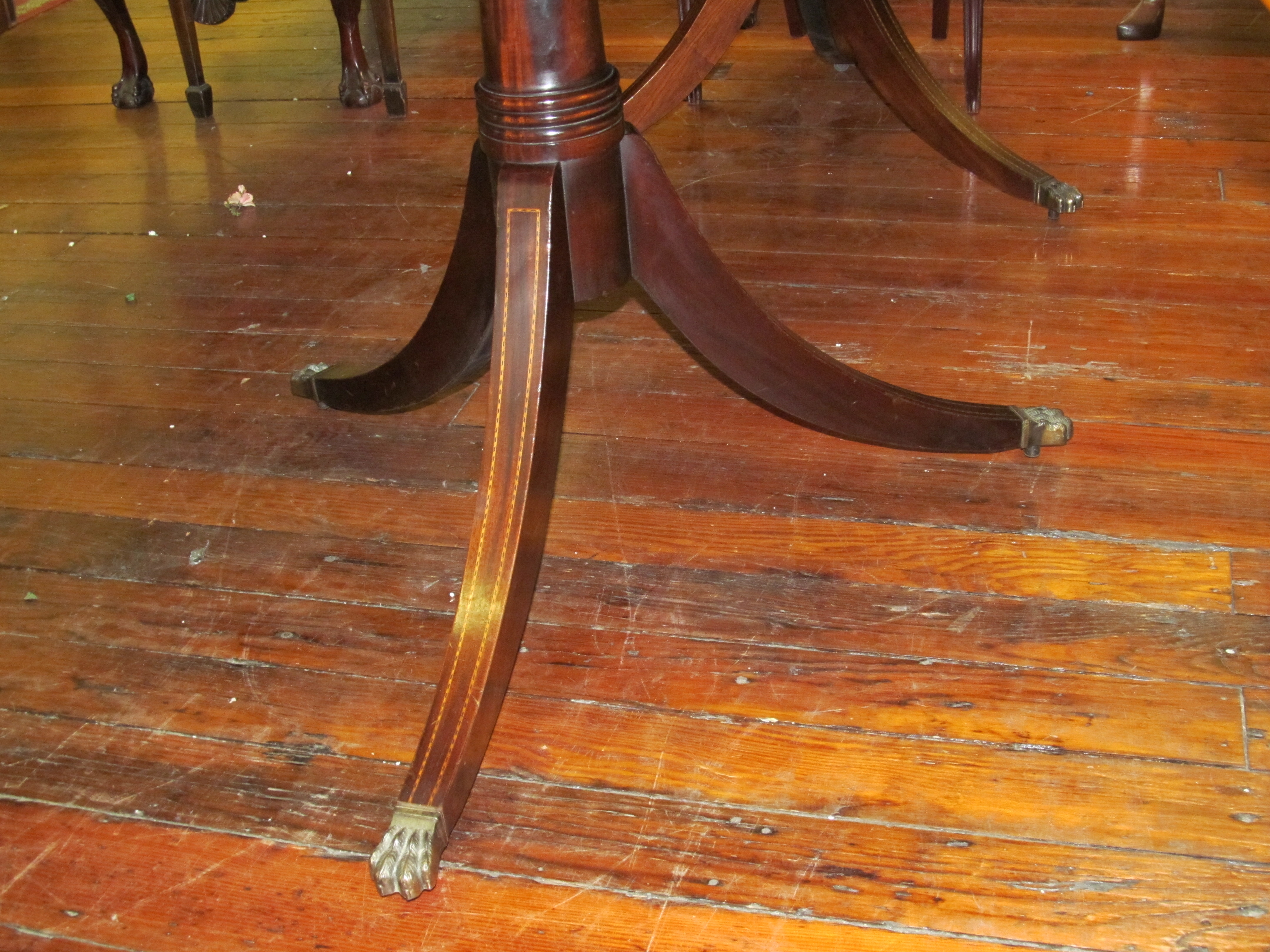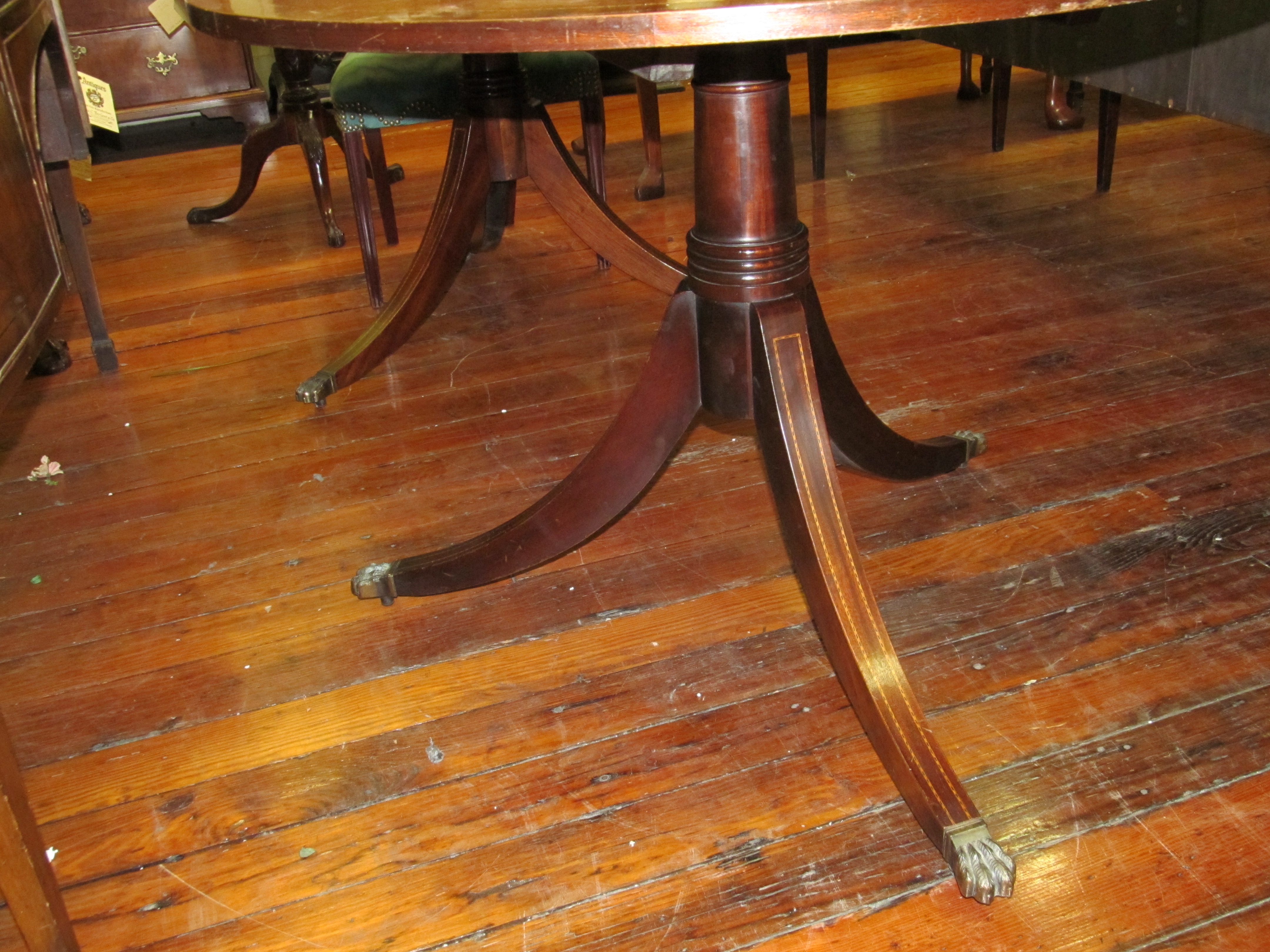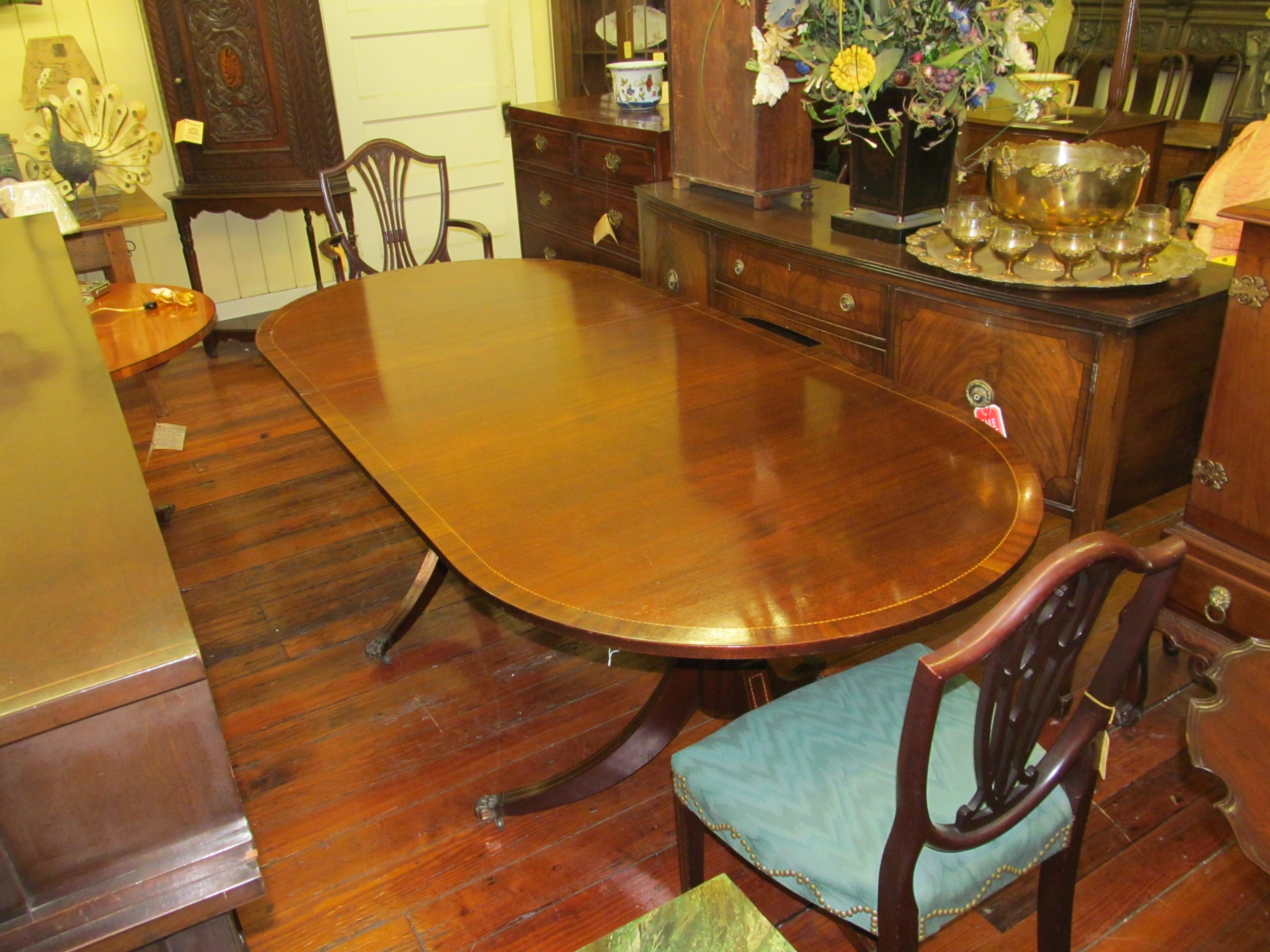 Fine Old English Inlaid Mahogany Cottage Size Dining Table.