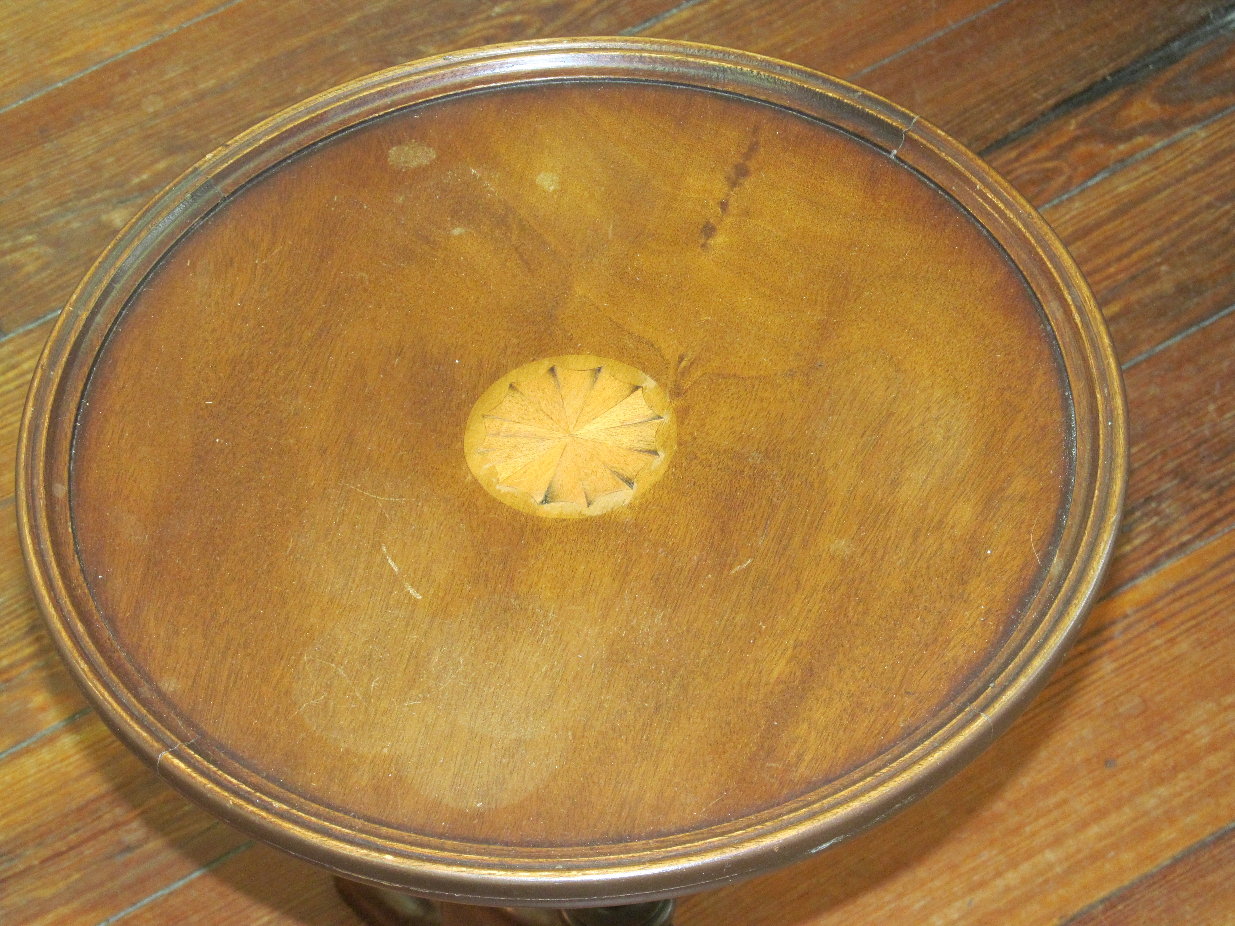 Fine Old English Inlaid Mahogany Q.A. Style Tripod Wine Table.