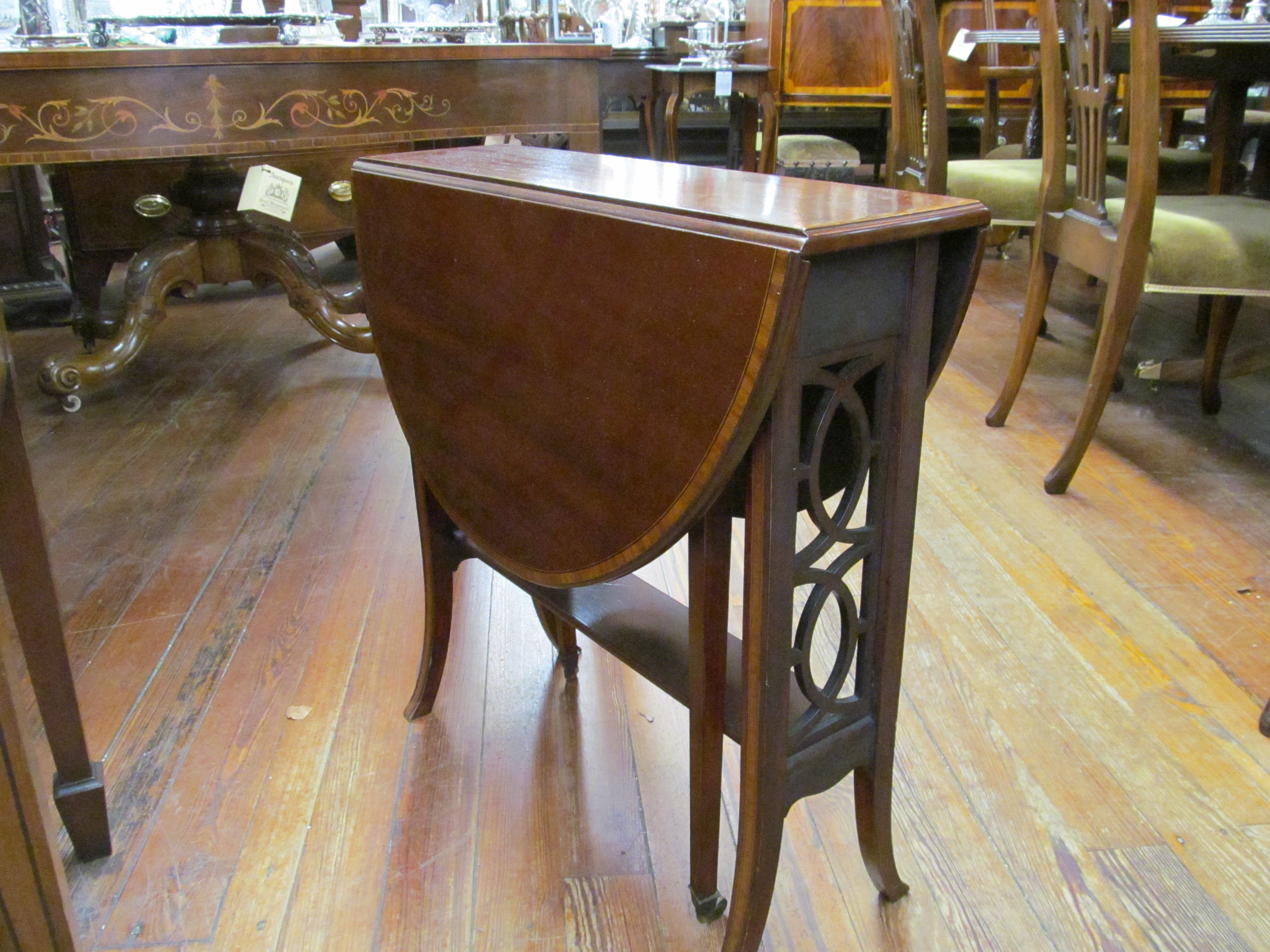 You are here: Home / All Inventory / Old English Inlaid Mahogany Sutherland Table